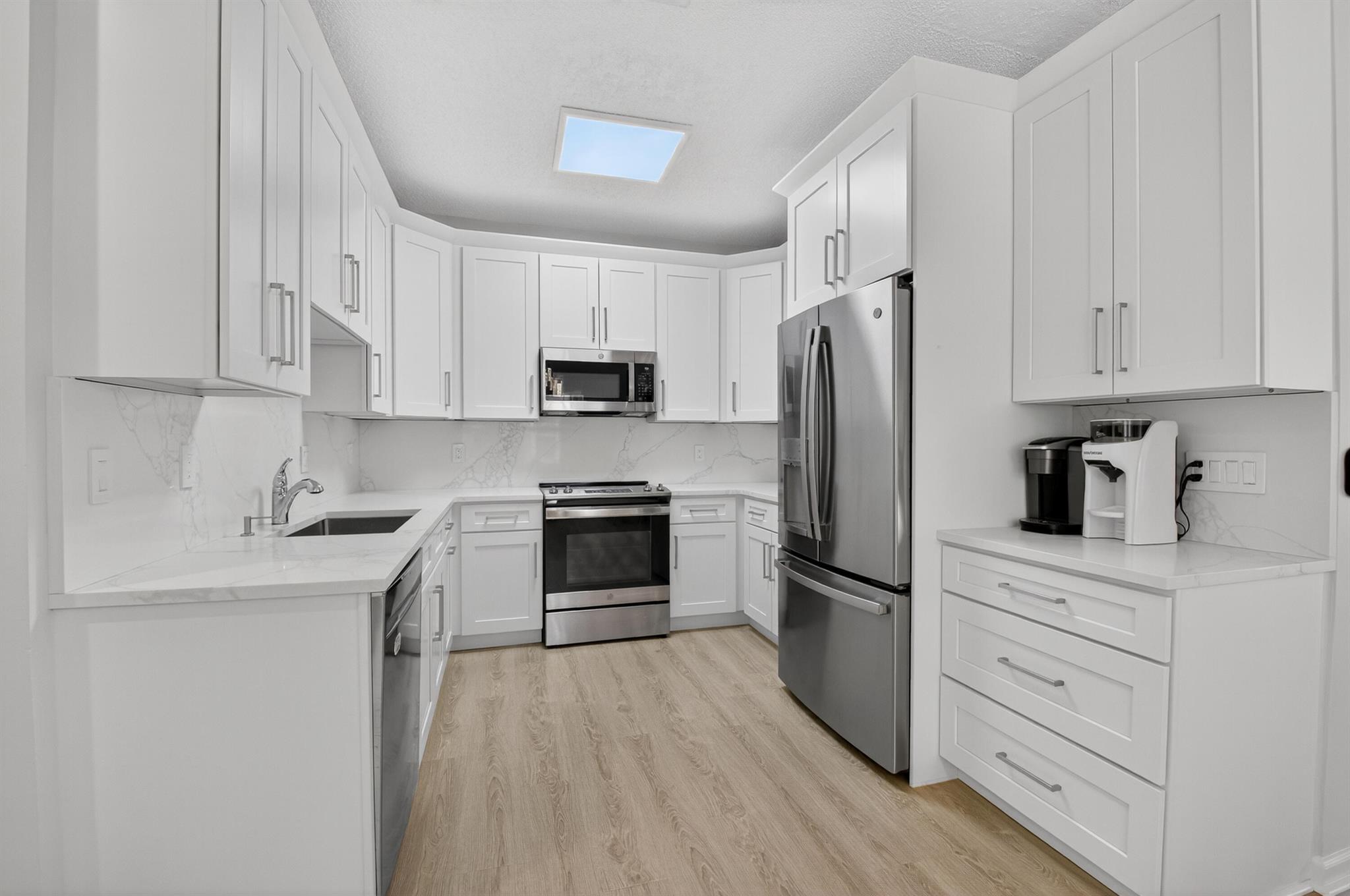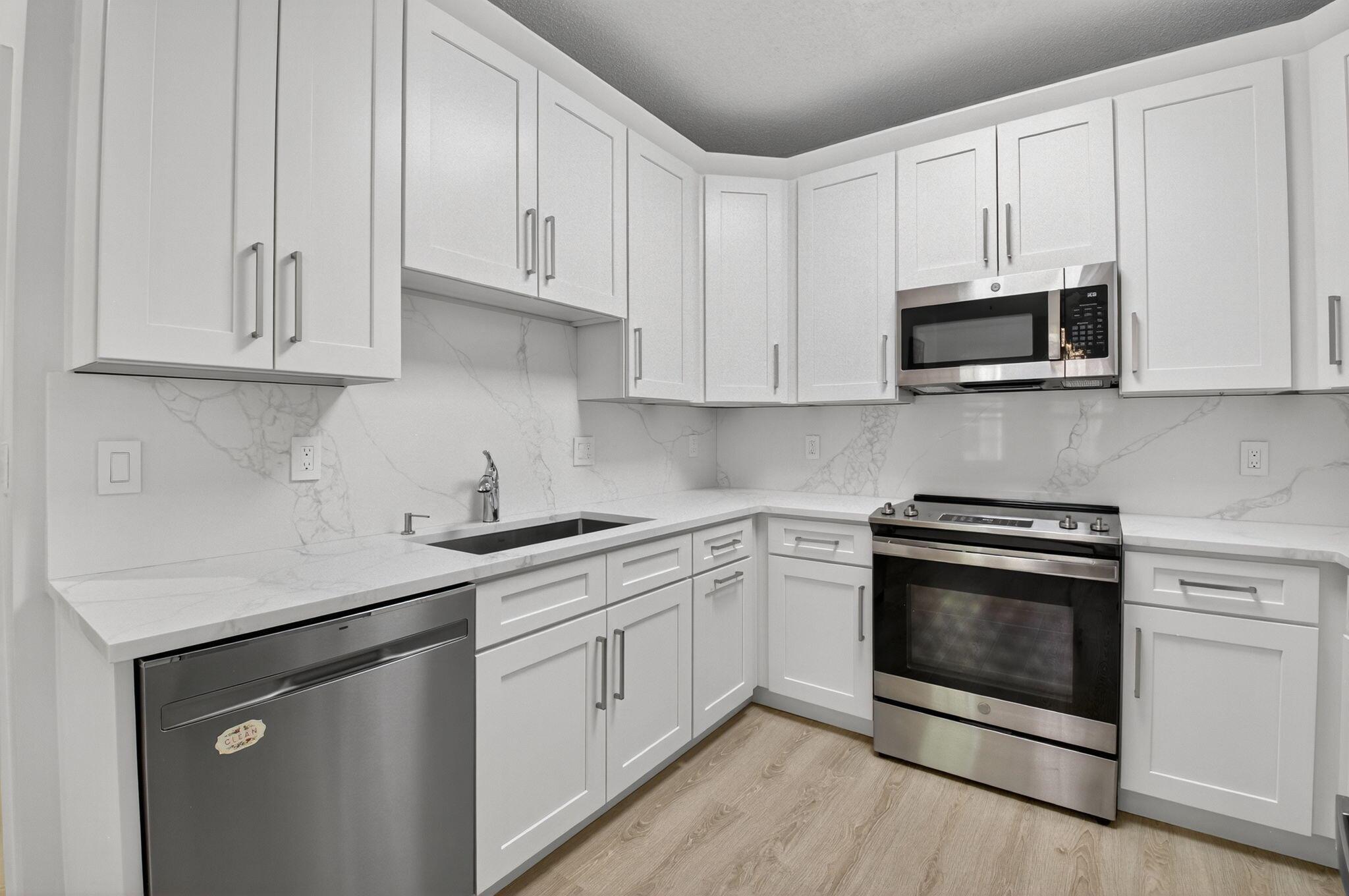 Nestled within the gated community of Mizner Pointe you will find this exceptional end unit townhome featuring 4 bedrms 2 1/2 baths, formal living & dining areas, gourmet kitchen, family room. Second floor: 3 guest bedrms, guest bathrm & spacious primary bedrm with lavish master bath, double sinks, water closet, separate shower & soaking tub , walk in outfitted closet. Appointments include: accordion shutters, granite counters & ss appliances no carpeting, deluxe vinyl flooring, roof replaced 2 yrs ago, no detail overlooked. Enjoy the evening breezes on your patio overlooking the garden greenery beyond,Mizner Pointe boasts pool, clubhouse, play area, fitness center, tennis, billiards, community room. Close to shopping, & major roadways. SHOWINGS BEGIN SAT. JULY 26 - 10 -NOON.