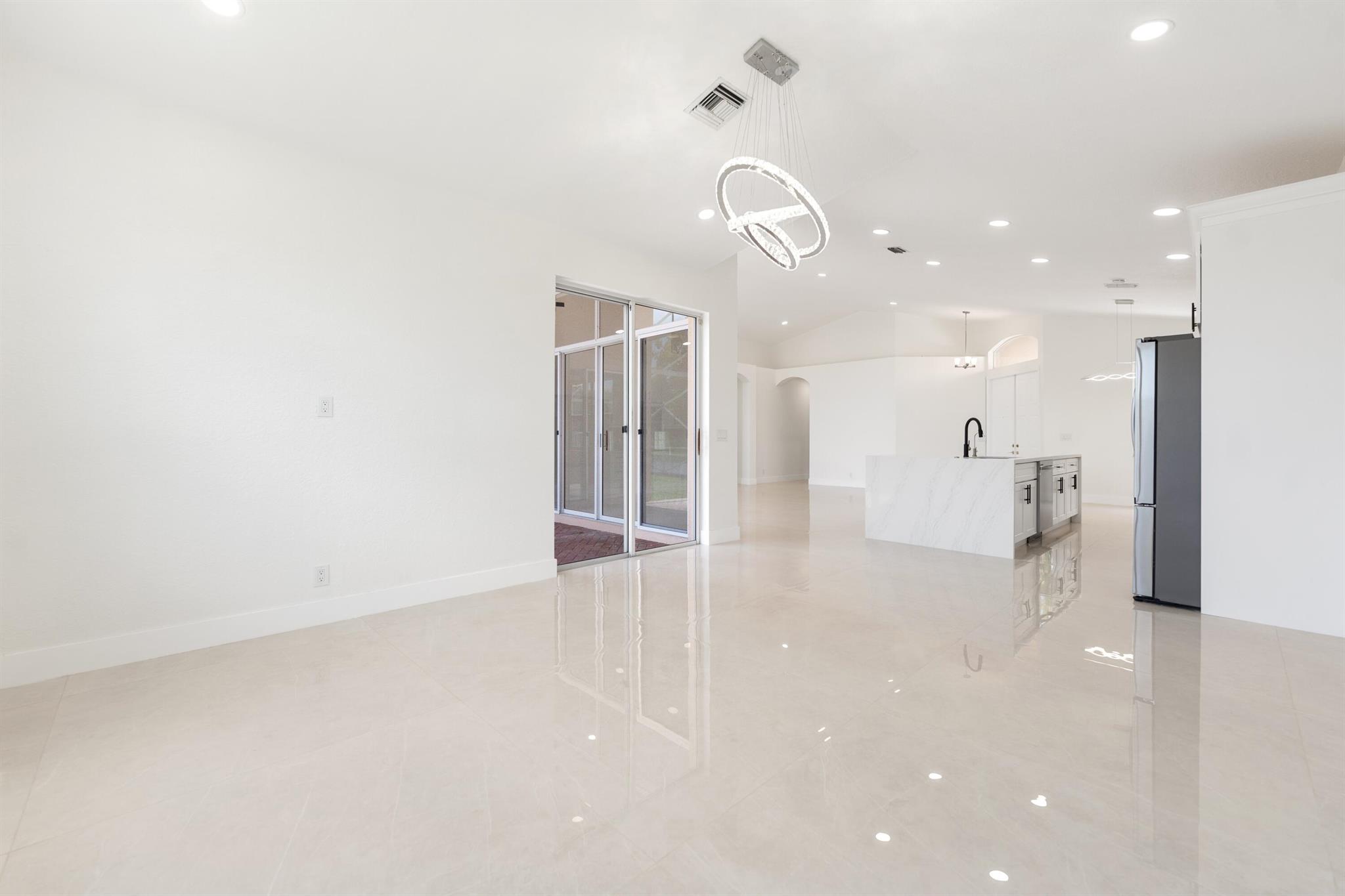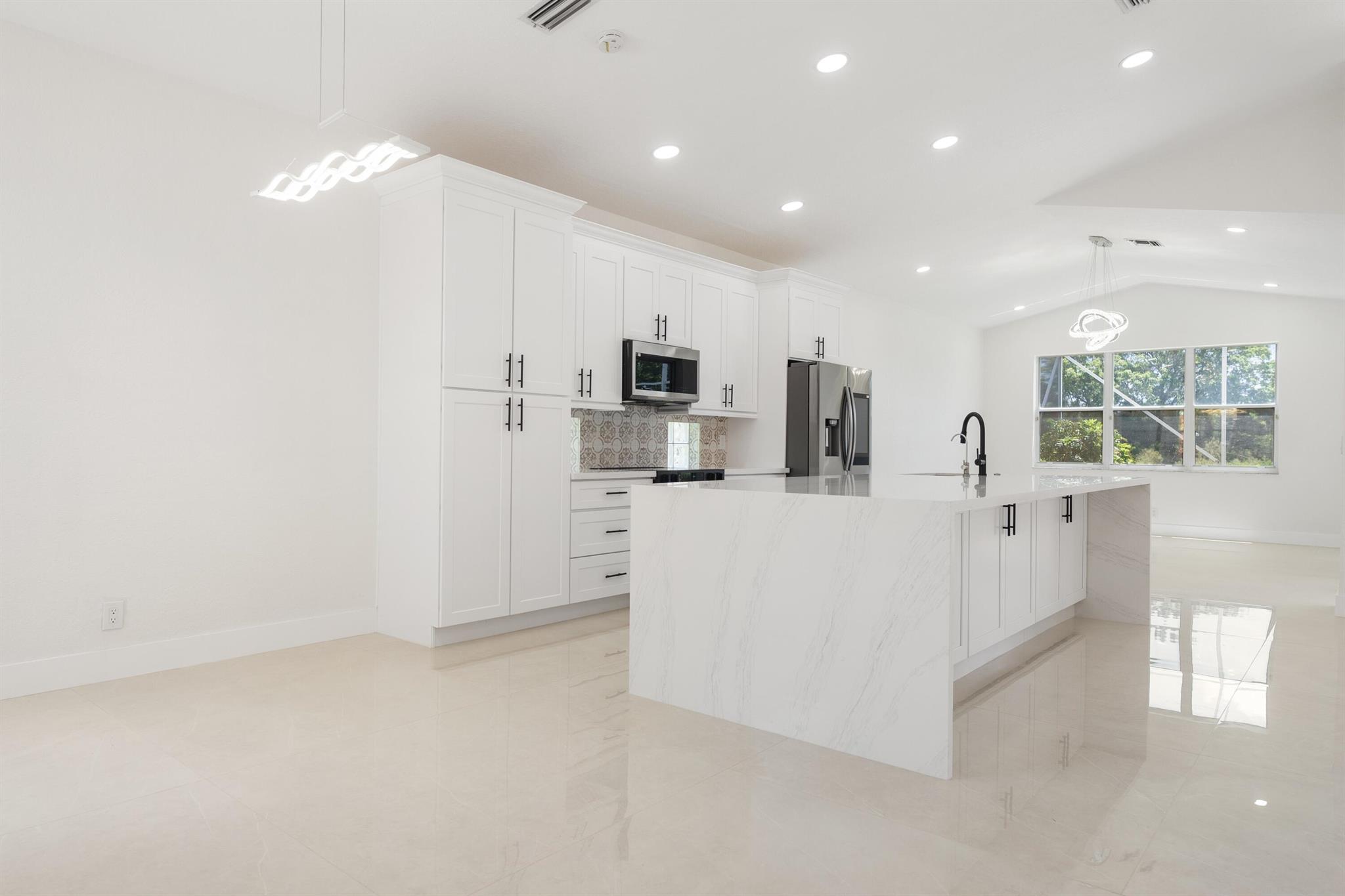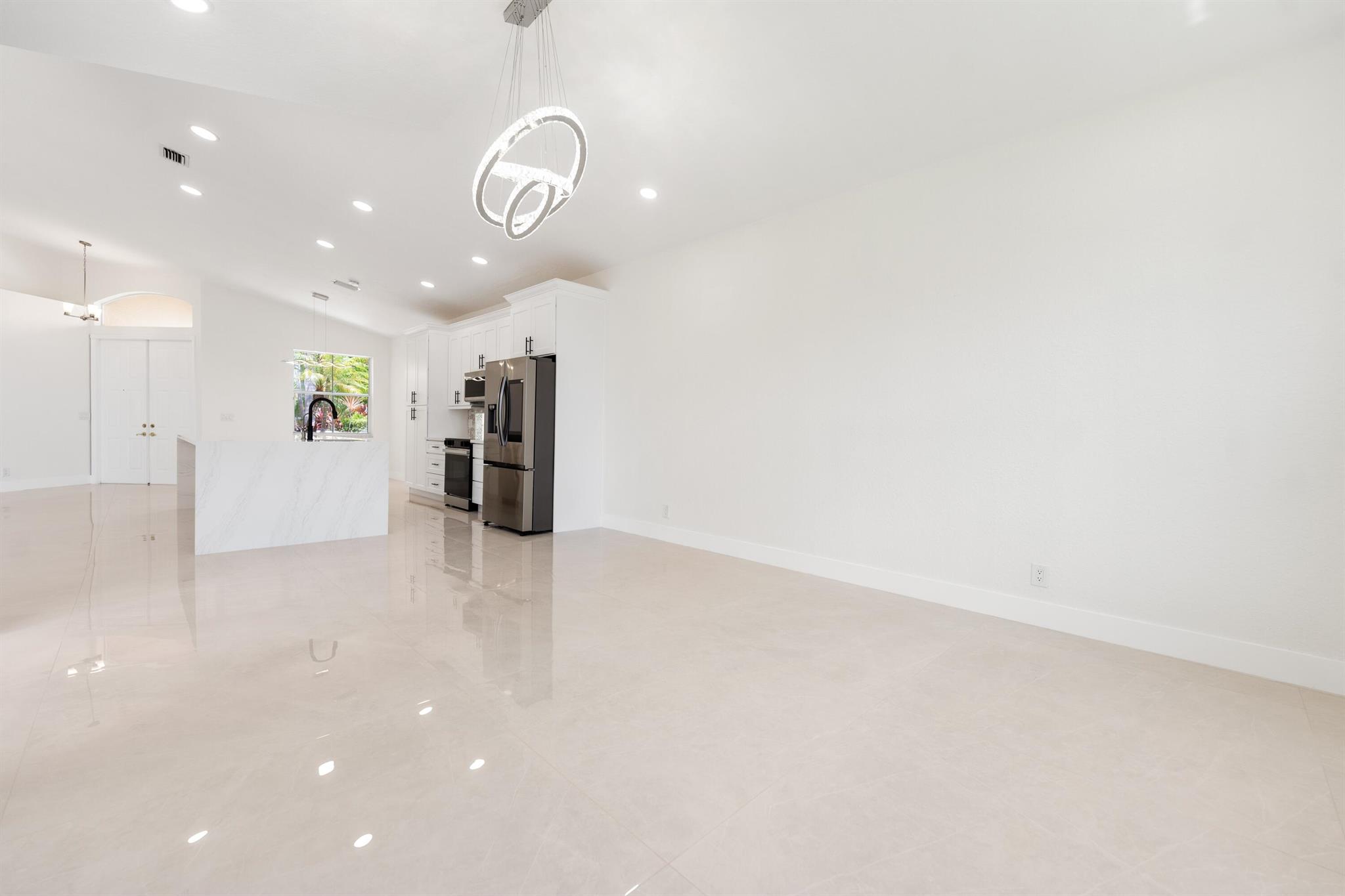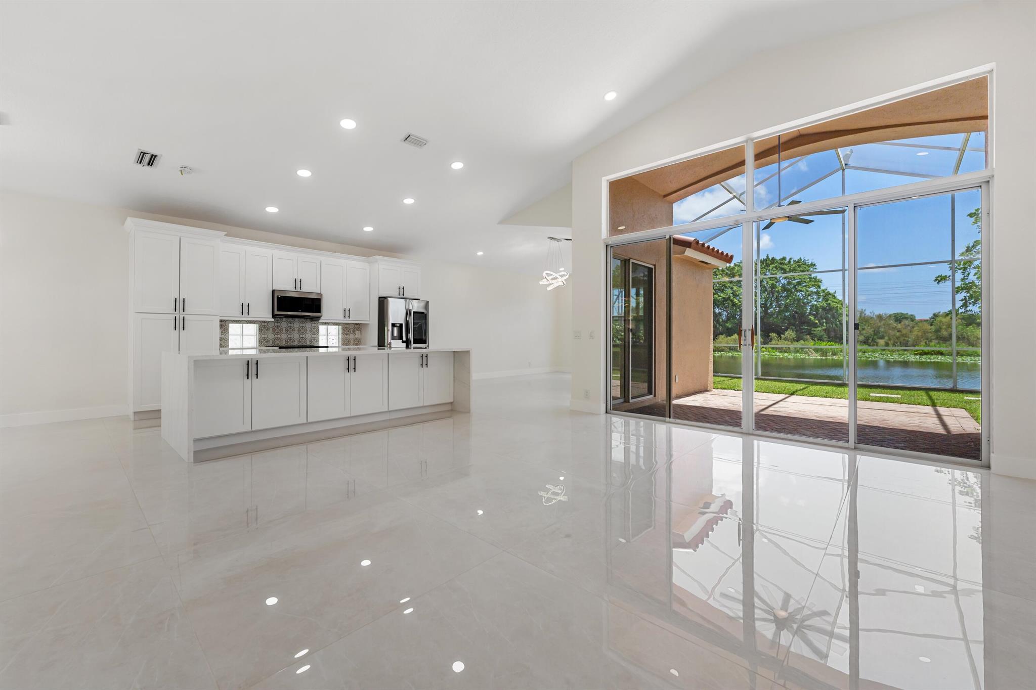 Welcome home to this 4/3 house in the highly sought-after neighborhood of The Shores at Boca. Amazing water view offers serenity. BRAND NEW ROOF. Brand new large 48x48 luxury rectified tiles inmain floor and vinyl floors in guest bedrooms. Brand new kitchen featuring high end cabinets and white quartz countertop and a largeisland. Brand new stainless appliances. All new bathrooms including large framelss showers, new vanities with quartz countertops. LED recessed lighting in main living area. 2022 AC. Large and bright living room, dining room and familyroom. Minutes away from great schools, restaurants, parks etc. Community has a clubhouse, fitness center, pool, basketball and tennis courts, 24/7 mannedgate, internet included
