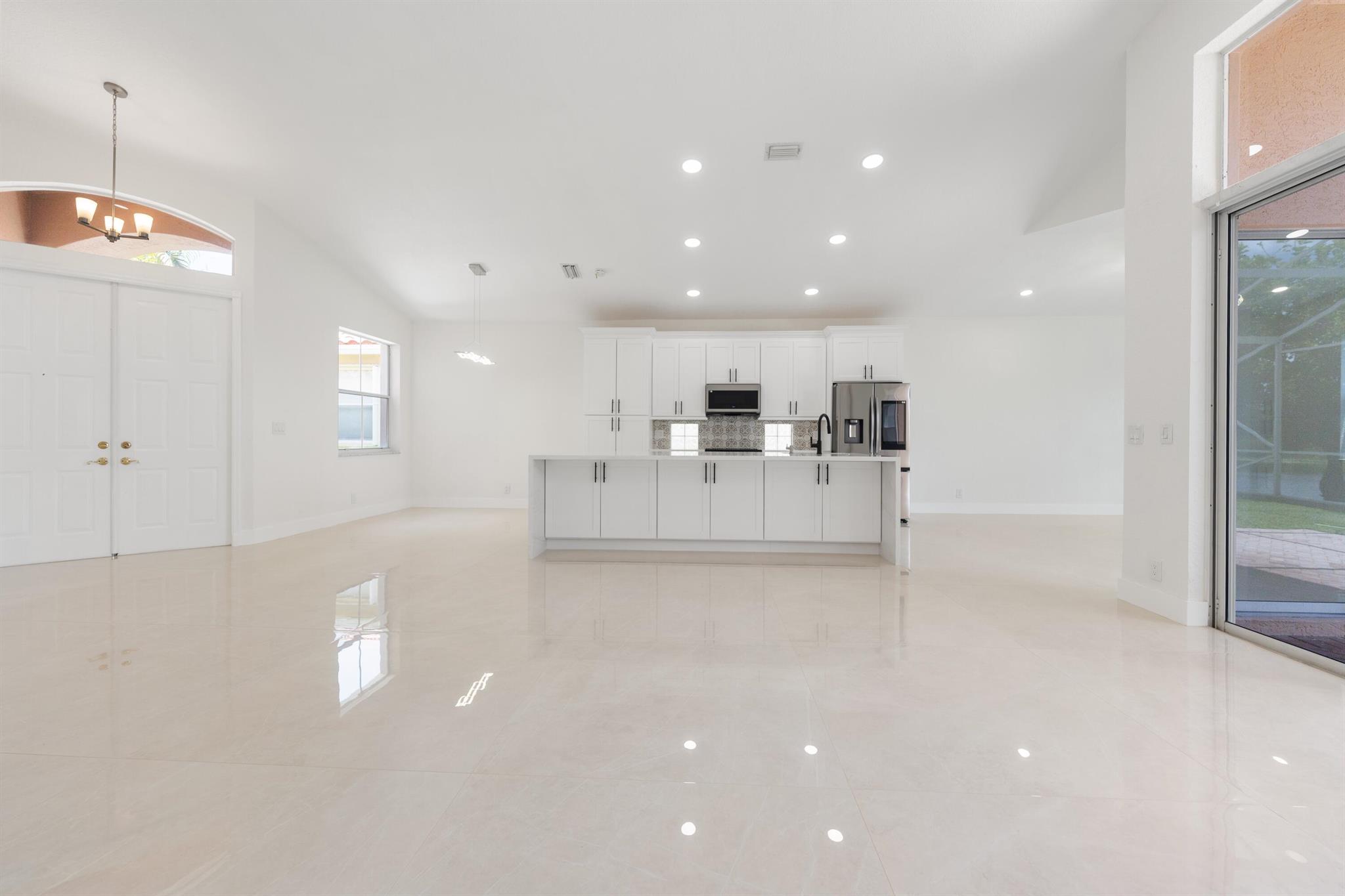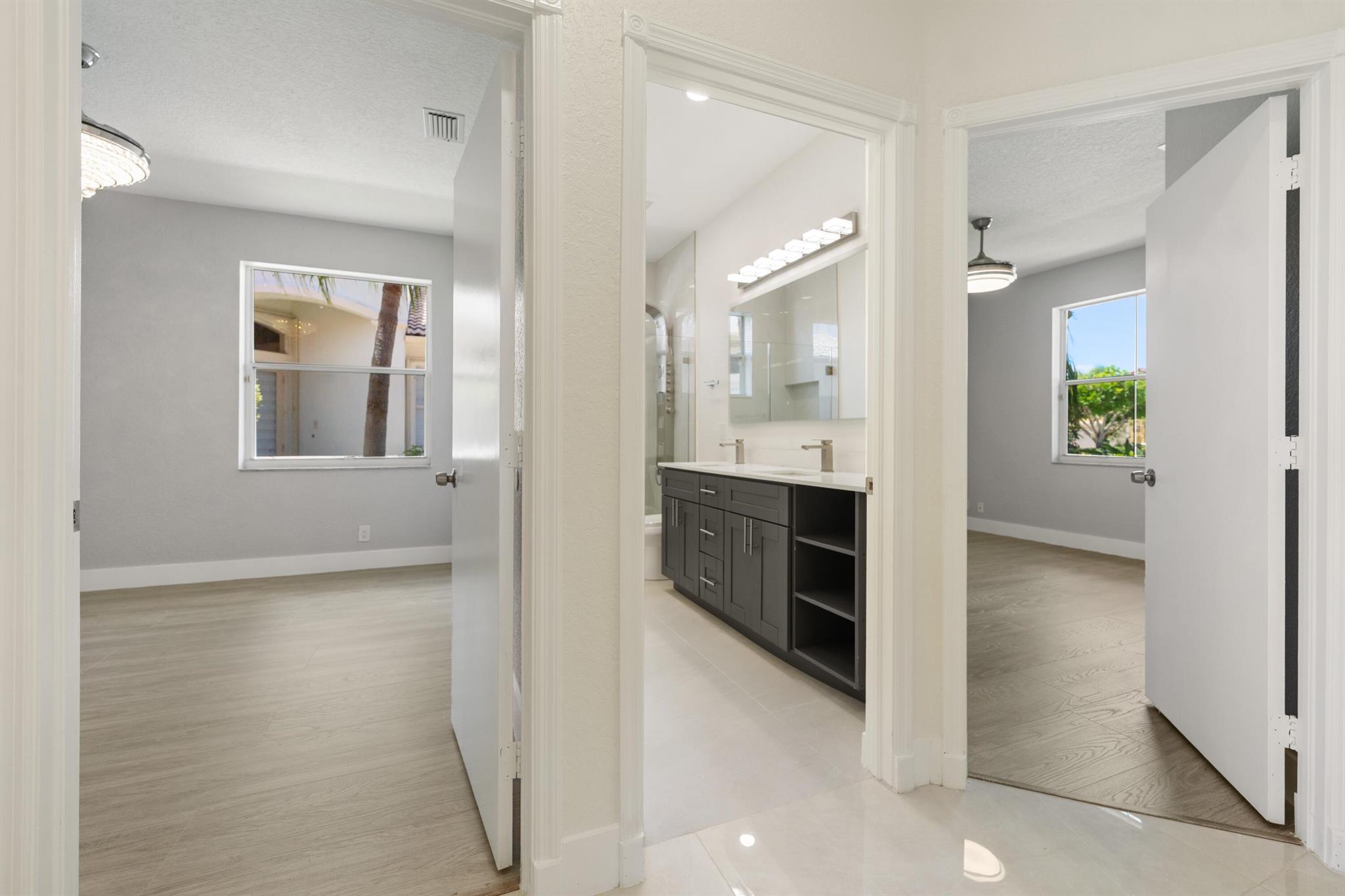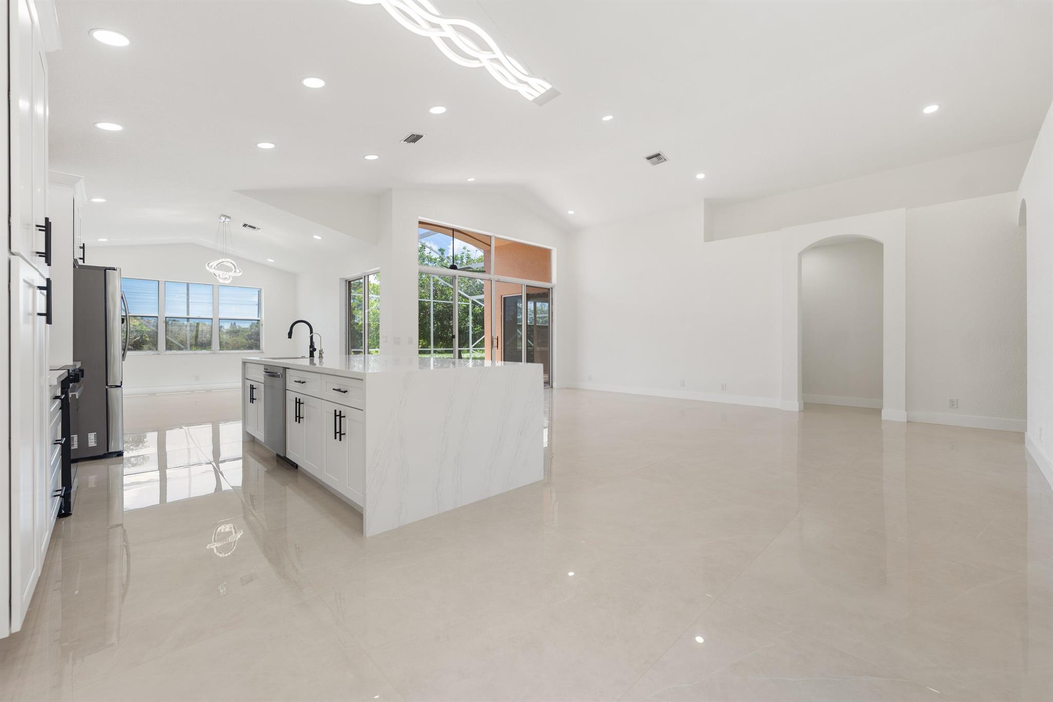 Welcome home to this 4/3 house in the highly sought-after neighborhood of The Shores at Boca. Amazing water view offers serenity. BRAND NEW ROOF. Brand new large 48x48 luxury rectified tiles inmain floor and vinyl floors in guest bedrooms. Brand new kitchen featuring high end cabinets and white quartz countertop and a largeisland. Brand new stainless appliances. All new bathrooms including large framelss showers, new vanities with quartz countertops. LED recessed lighting in main living area. 2022 AC. Large and bright living room, dining room and familyroom. Minutes away from great schools, restaurants, parks etc. Community has a clubhouse, fitness center, pool, basketball and tennis courts, 24/7 mannedgate, internet included