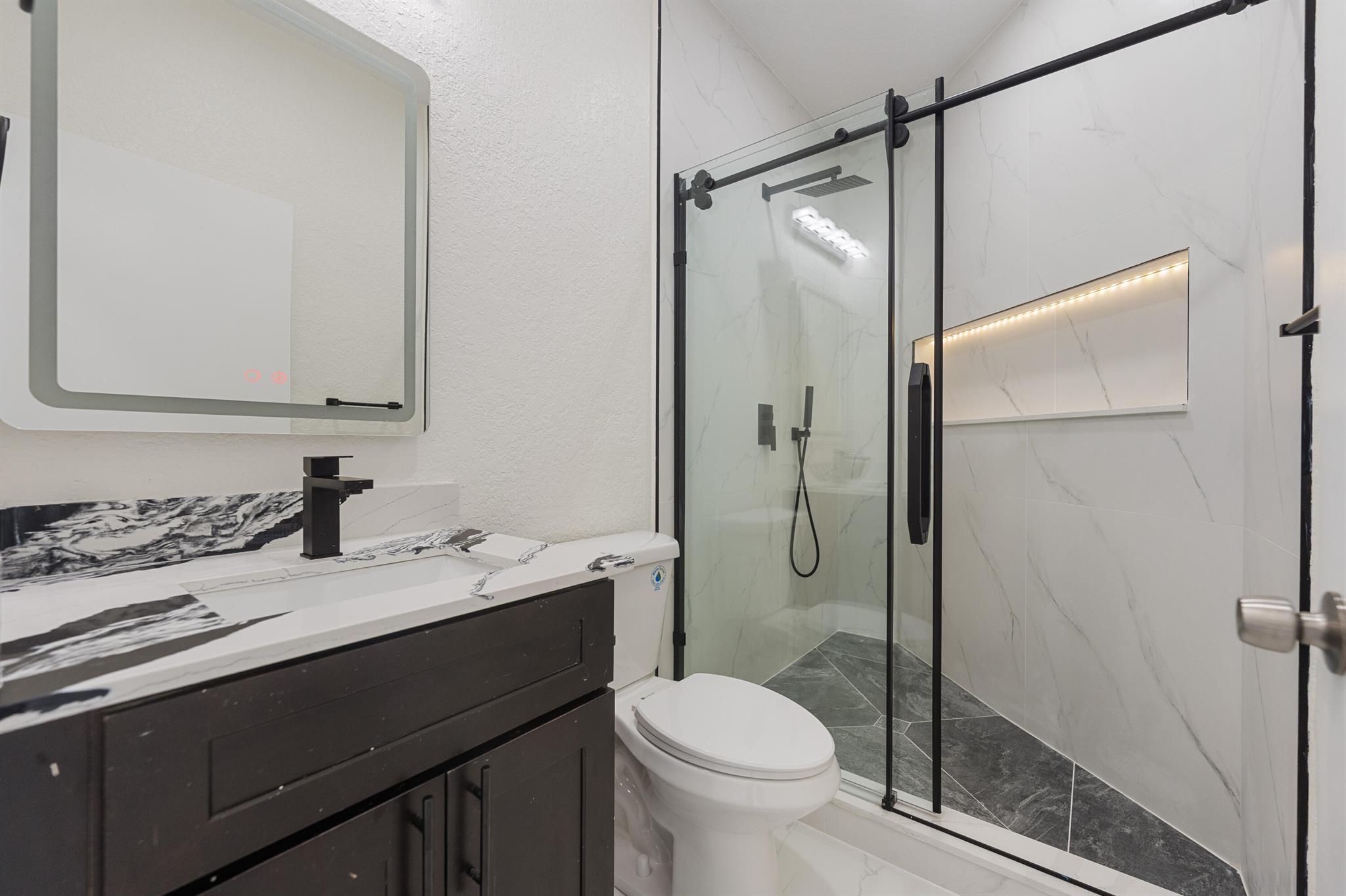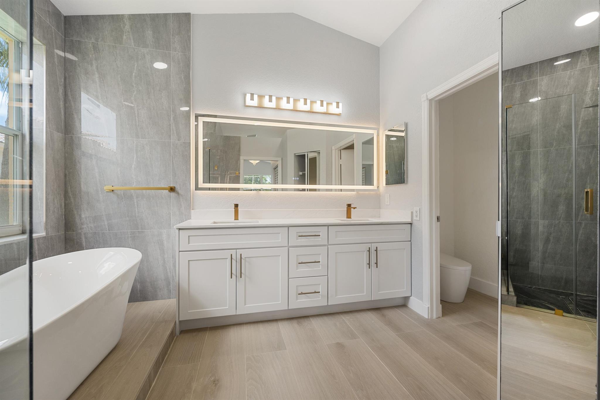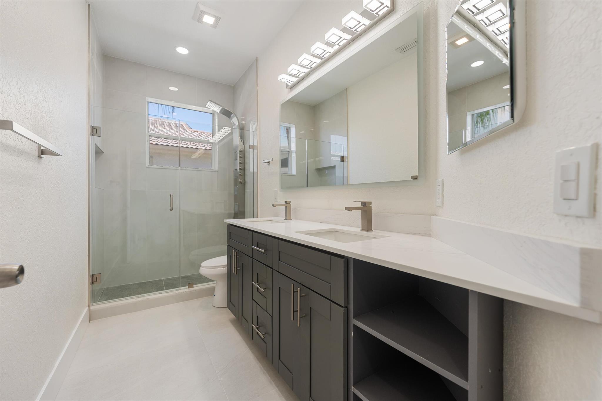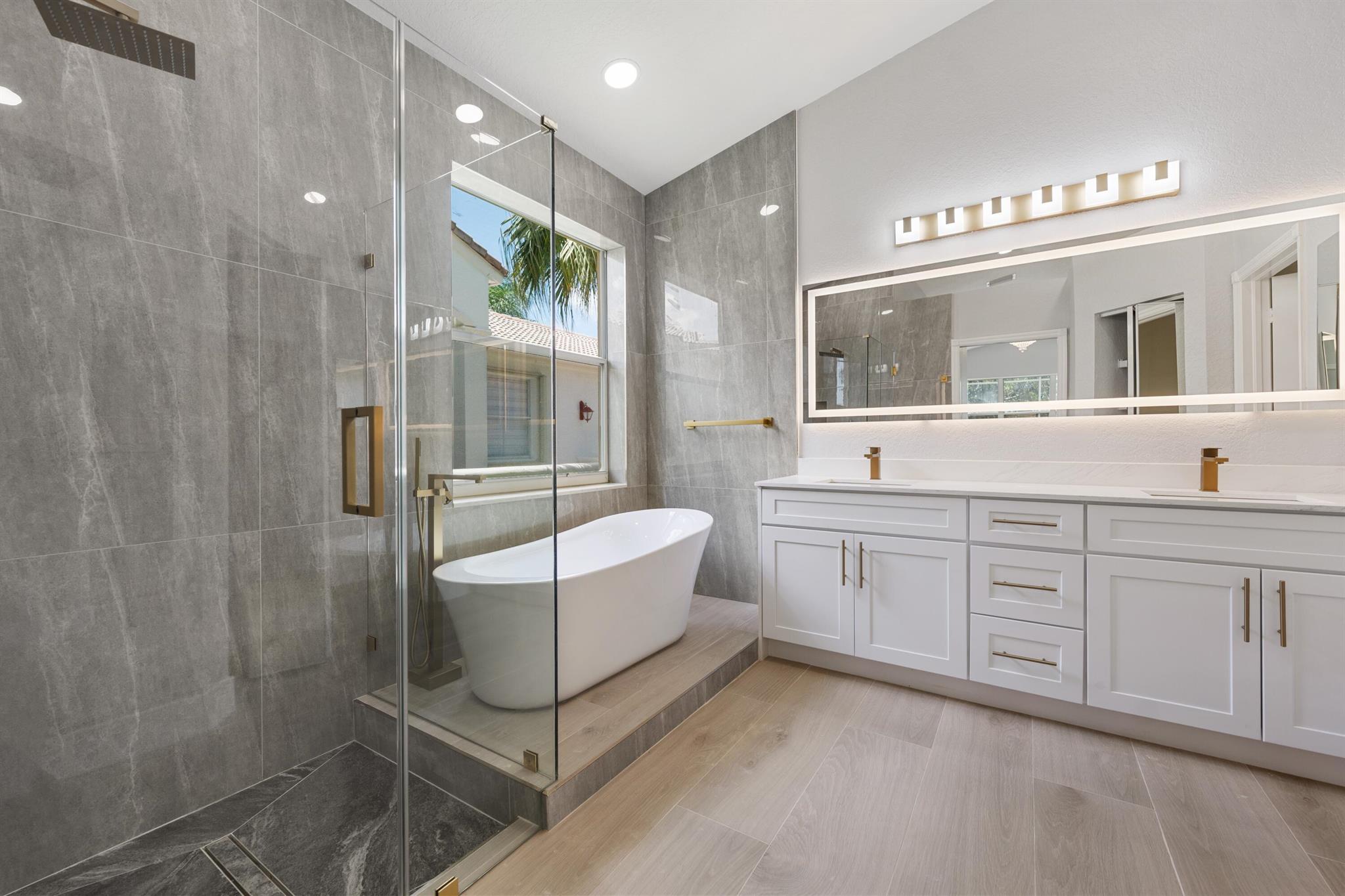 Welcome home to this 4/3 house in the highly sought-after neighborhood of The Shores at Boca. Amazing water view offers serenity. BRAND NEW ROOF. Brand new large 48x48 luxury rectified tiles inmain floor and vinyl floors in guest bedrooms. Brand new kitchen featuring high end cabinets and white quartz countertop and a largeisland. Brand new stainless appliances. All new bathrooms including large framelss showers, new vanities with quartz countertops. LED recessed lighting in main living area. 2022 AC. Large and bright living room, dining room and familyroom. Minutes away from great schools, restaurants, parks etc. Community has a clubhouse, fitness center, pool, basketball and tennis courts, 24/7 mannedgate, internet included