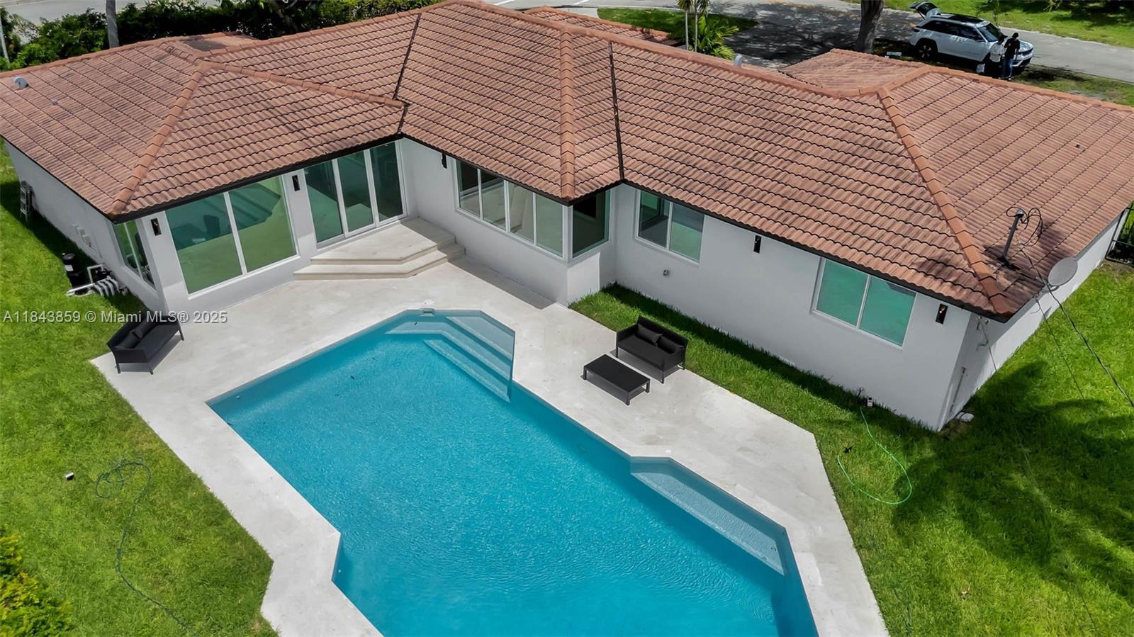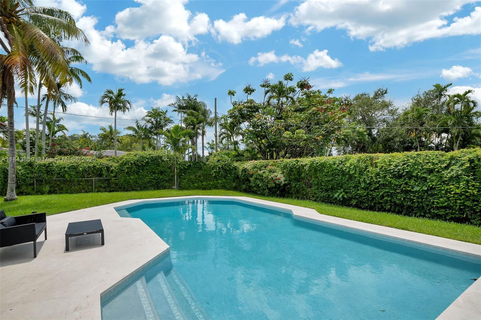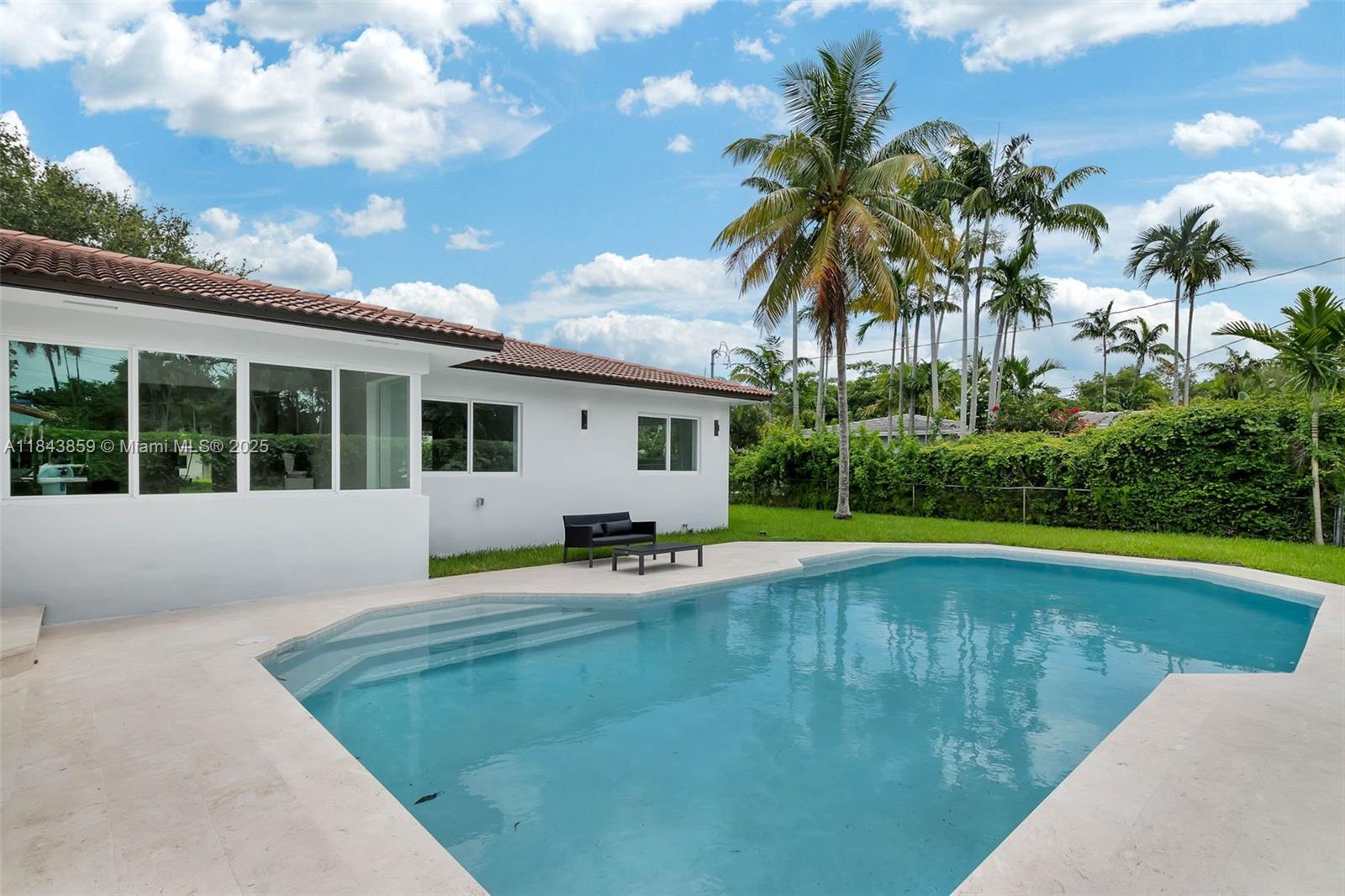 Step inside this exceptional Miami Shores residence, where style meets comfort in a true prime location. Offering 2467 sqft of living area, 4 bed / 3.5 bath, 2 car garage plus a gorgeous and meticulously designed pool area. Showcasing custom/high-quality carpentry work in all closets and kitchen. Amazing pool views all around the house. Soaring vaulted 9.5 ft ceilings and stunning real engineered hardwood floors throughout. The home features all-new plumbing, electrical systems, A/C ducts, brand new 2-zone AC system, high impact windows and doors. Every square foot of this home has been masterfully utilized, offering a well-balanced layout that delivers comfort and functionality. Designed for seamless indoor/outdoor living, the home is set on a 13614 sqft huge corner lot. Near A+ schools.