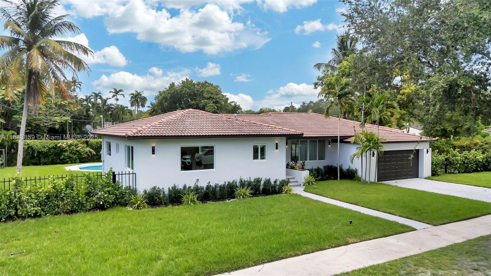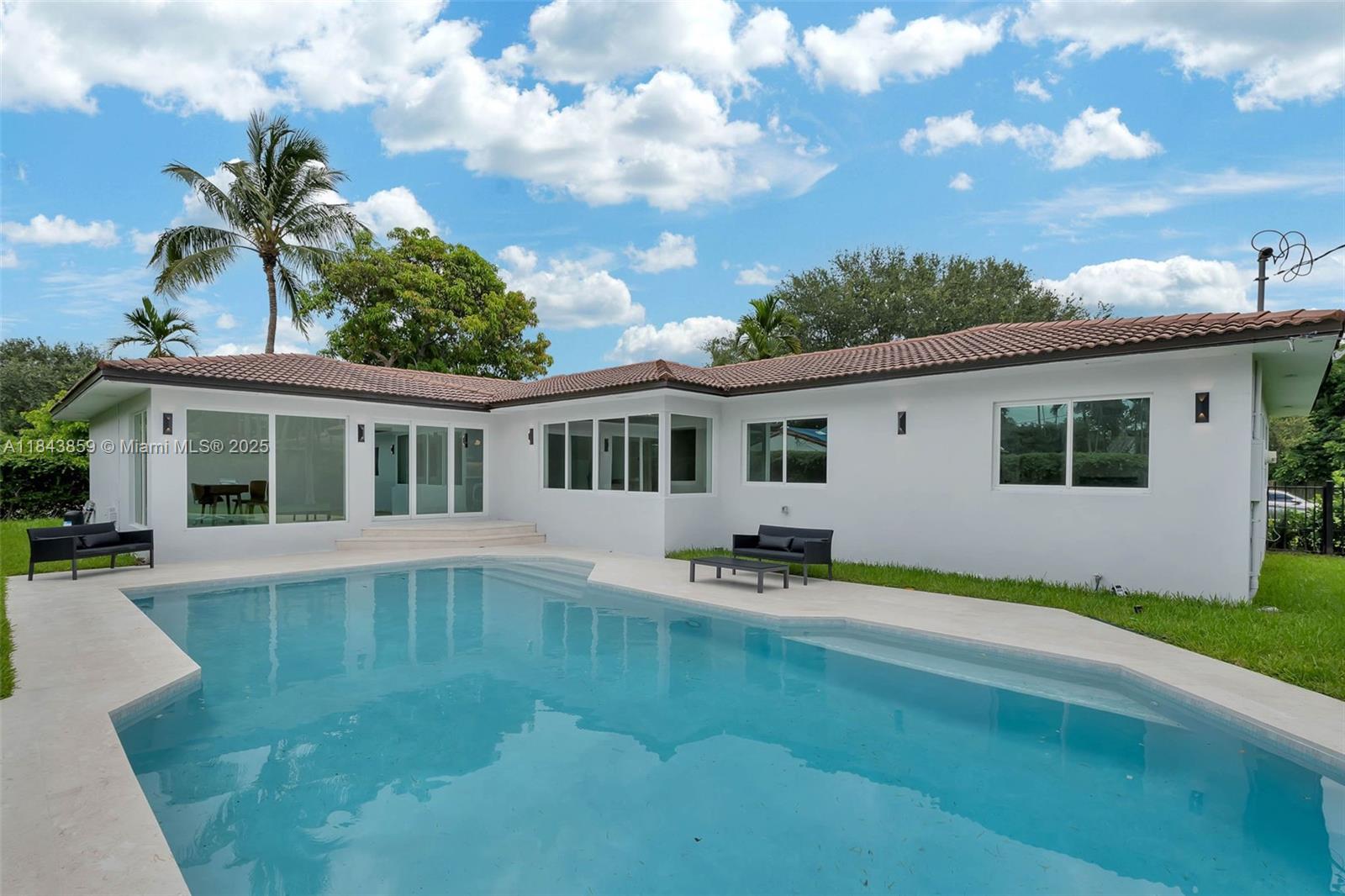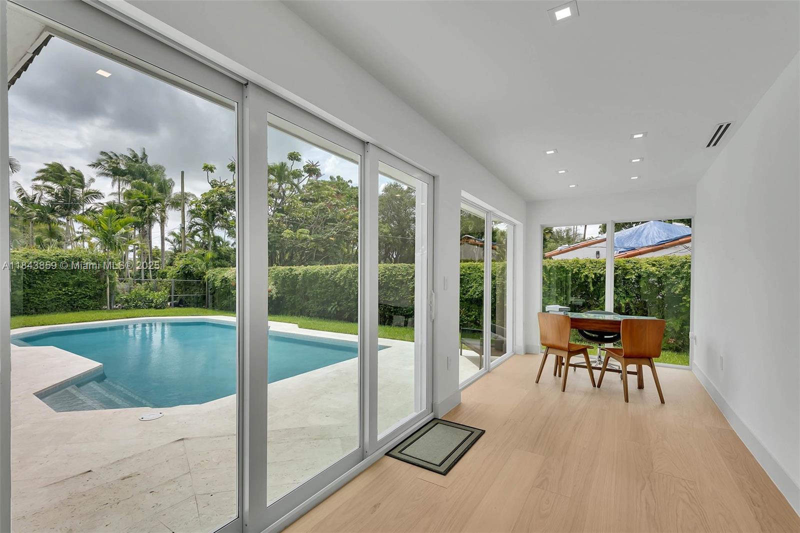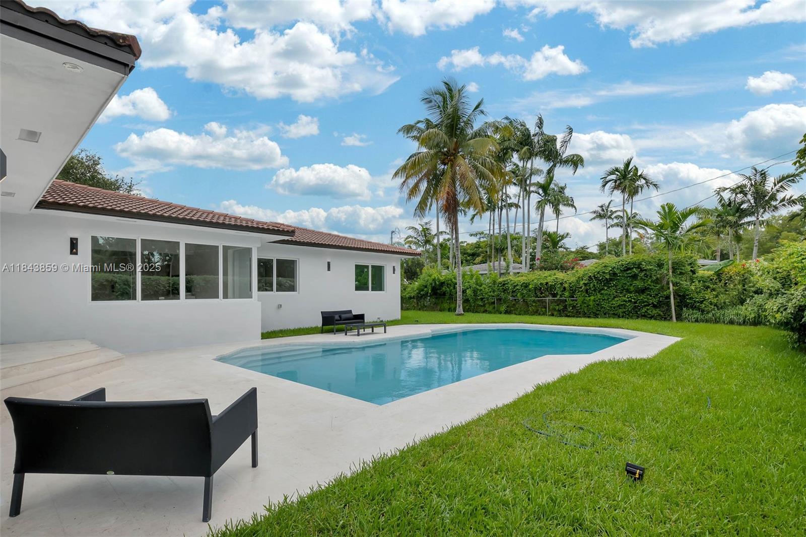 Step inside this exceptional Miami Shores residence, where style meets comfort in a true prime location. Offering 2467 sqft of living area, 4 bed / 3.5 bath, 2 car garage plus a gorgeous and meticulously designed pool area. Showcasing custom/high-quality carpentry work in all closets and kitchen. Amazing pool views all around the house. Soaring vaulted 9.5 ft ceilings and stunning real engineered hardwood floors throughout. The home features all-new plumbing, electrical systems, A/C ducts, brand new 2-zone AC system, high impact windows and doors. Every square foot of this home has been masterfully utilized, offering a well-balanced layout that delivers comfort and functionality. Designed for seamless indoor/outdoor living, the home is set on a 13614 sqft huge corner lot. Near A+ schools.