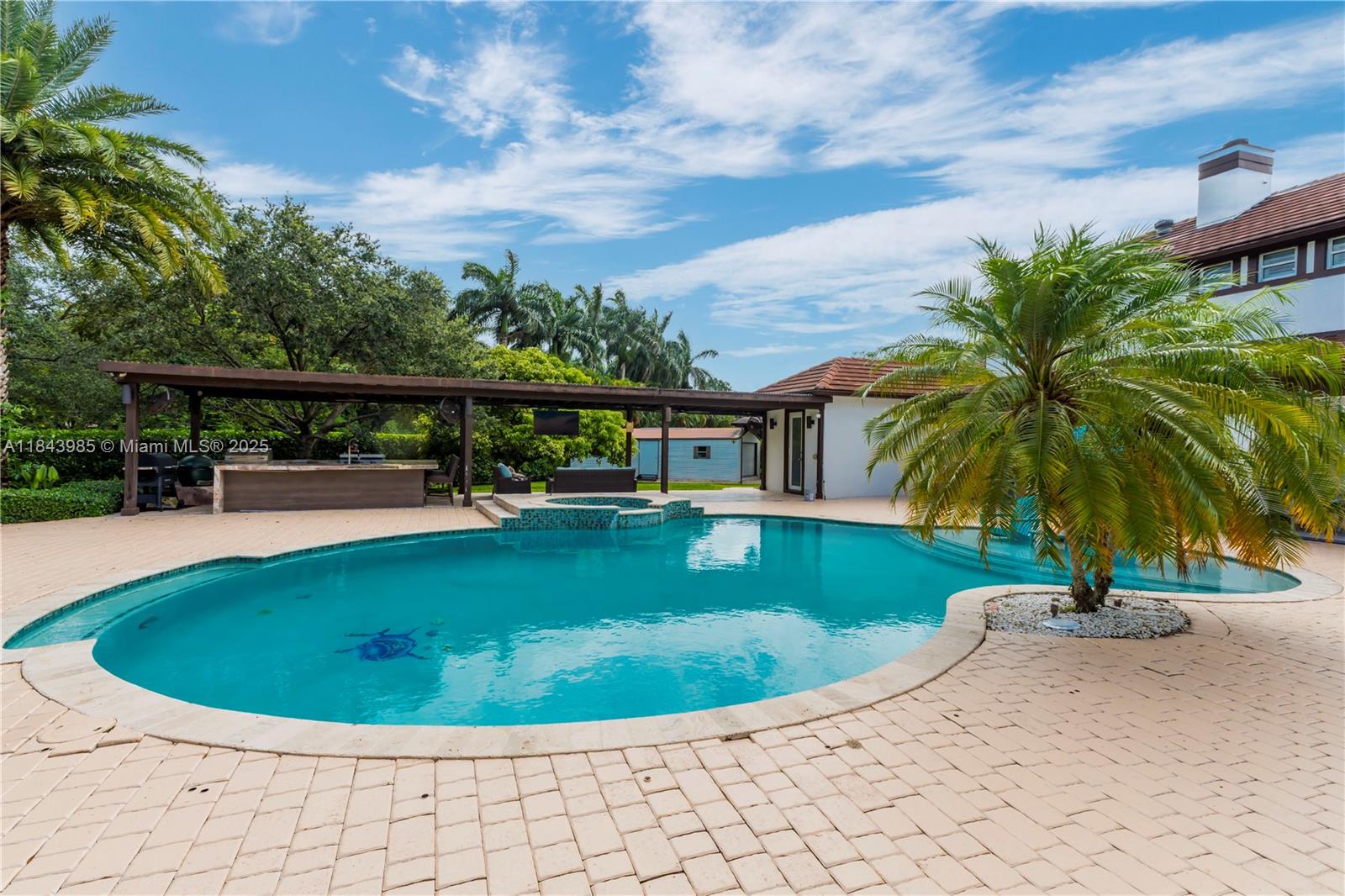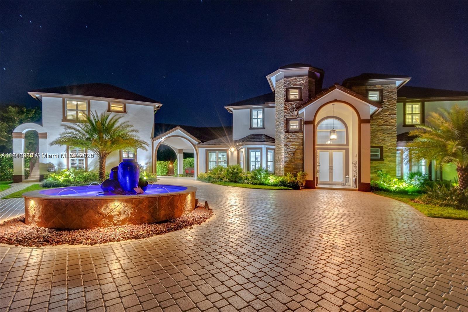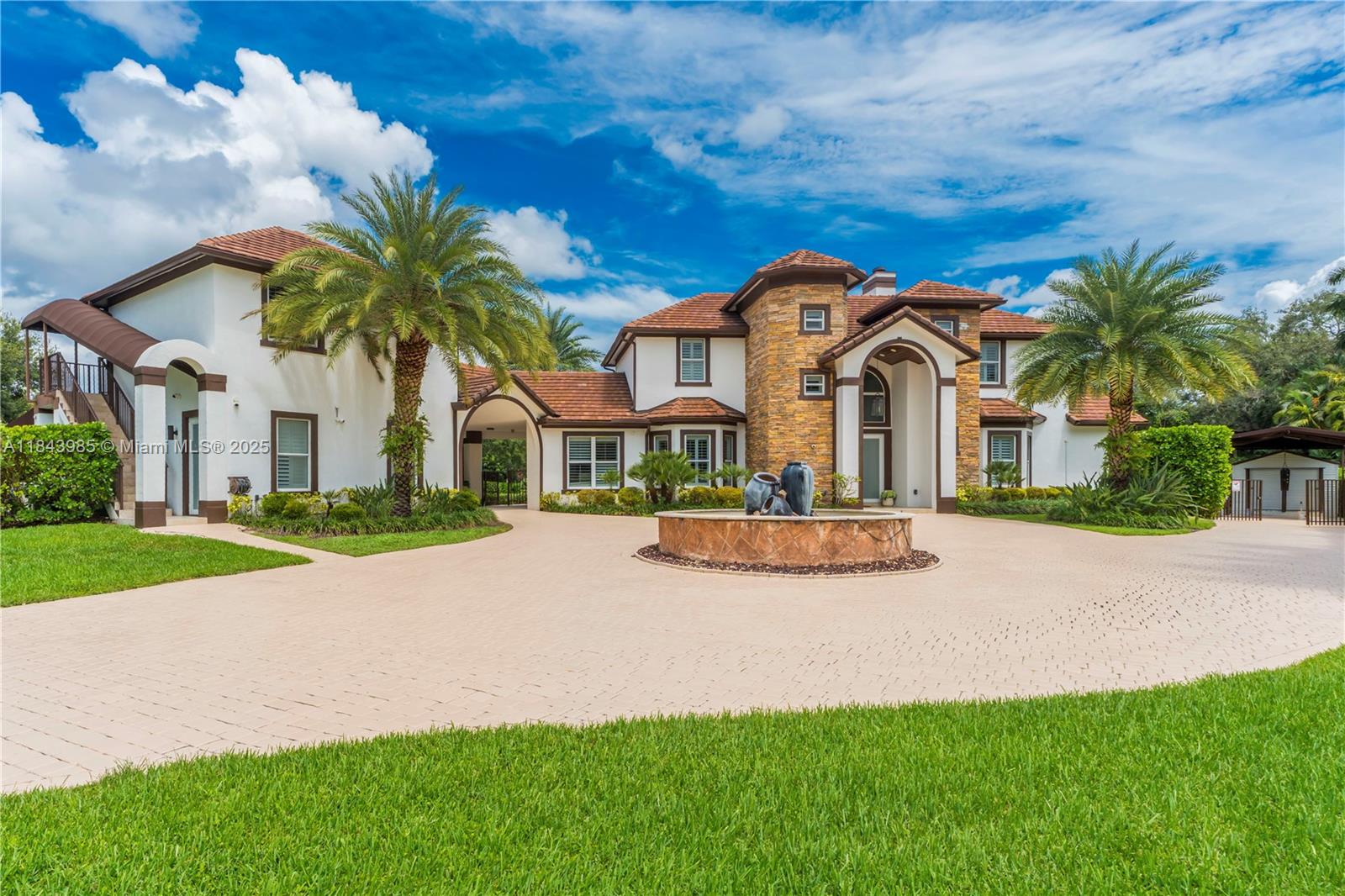 Experience luxury living in this stunning estate located in prestigious Southwest Ranches. Main home features 4 bedrooms + office & 3.5 baths, volume ceilings, open-concept chef’s kitchen with quartz countertops, stainless steel appliances, and gas stove. Marble flooring throughout living areas. Independent guest house with modern finishes, kitchen, living/dining combined and full bath. Expansive media/game room with half bath. Resort-style backyard includes 2024 pool heater, jacuzzi, luxury summer kitchen, fire pit, covered cabanas, surround sound, premium lighting, and mature landscaping. Additional highlights: ALL HURRICANE IMPACT WINDOWS/DOORS, new 2024 well & full house generator. Zoned for top-rated schools. An entertainer’s dream in a prime location!