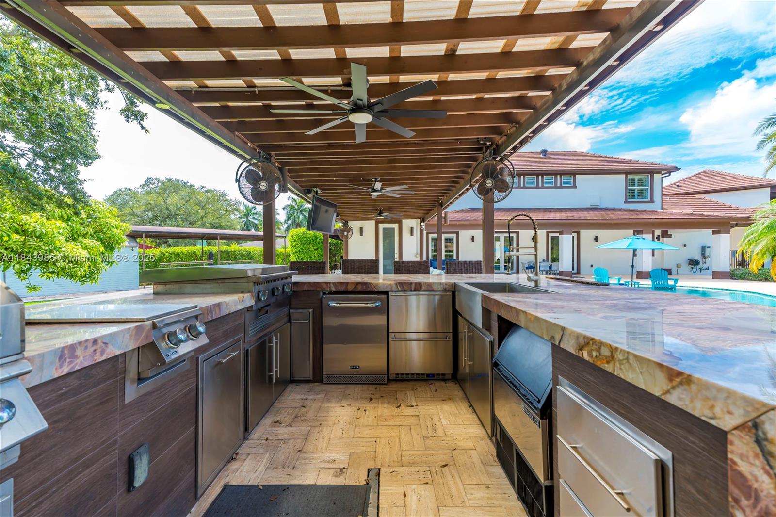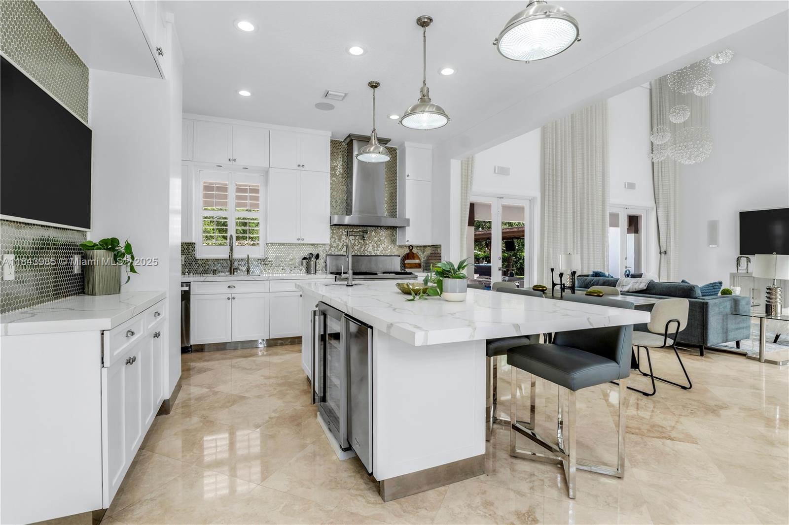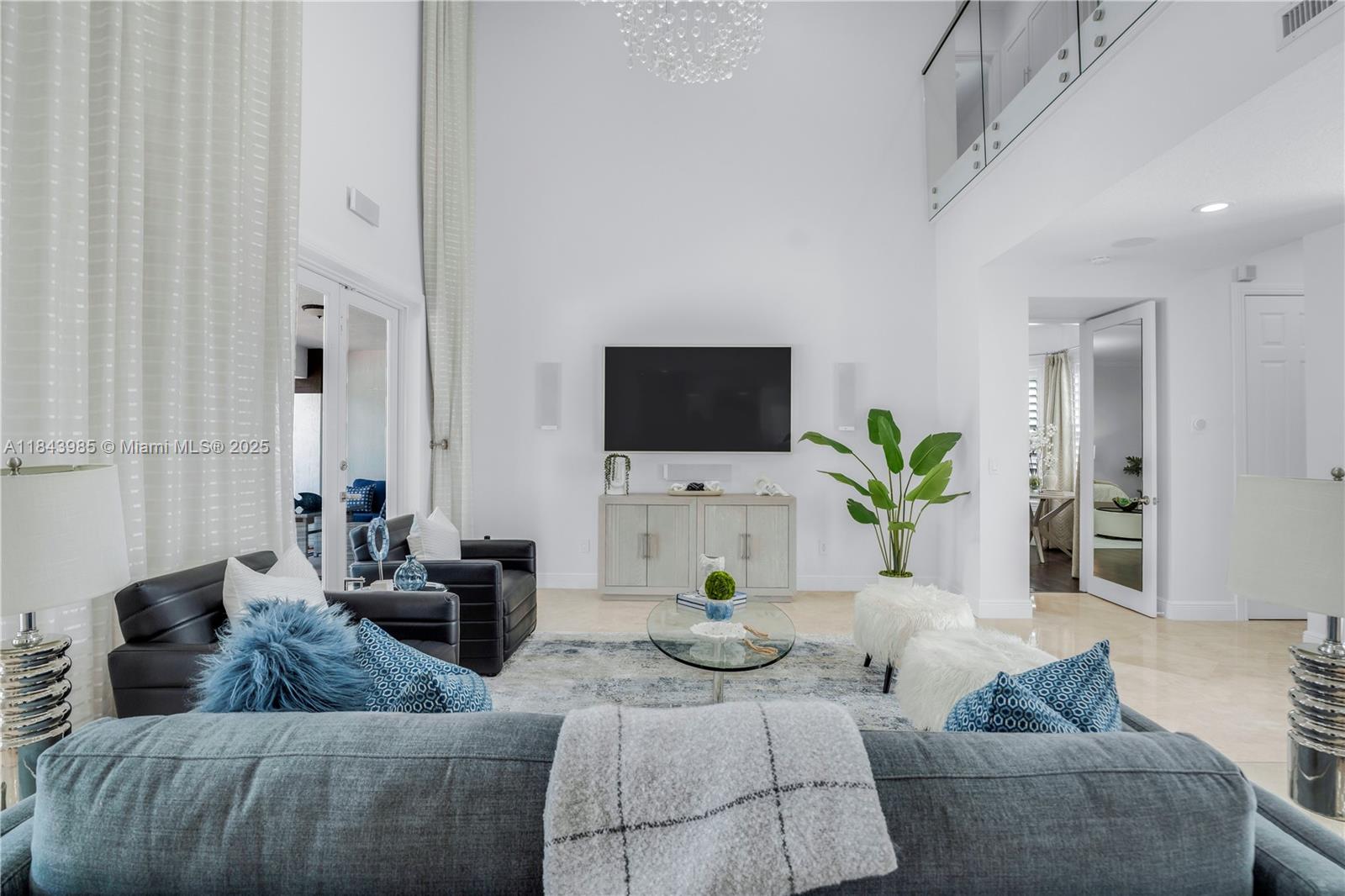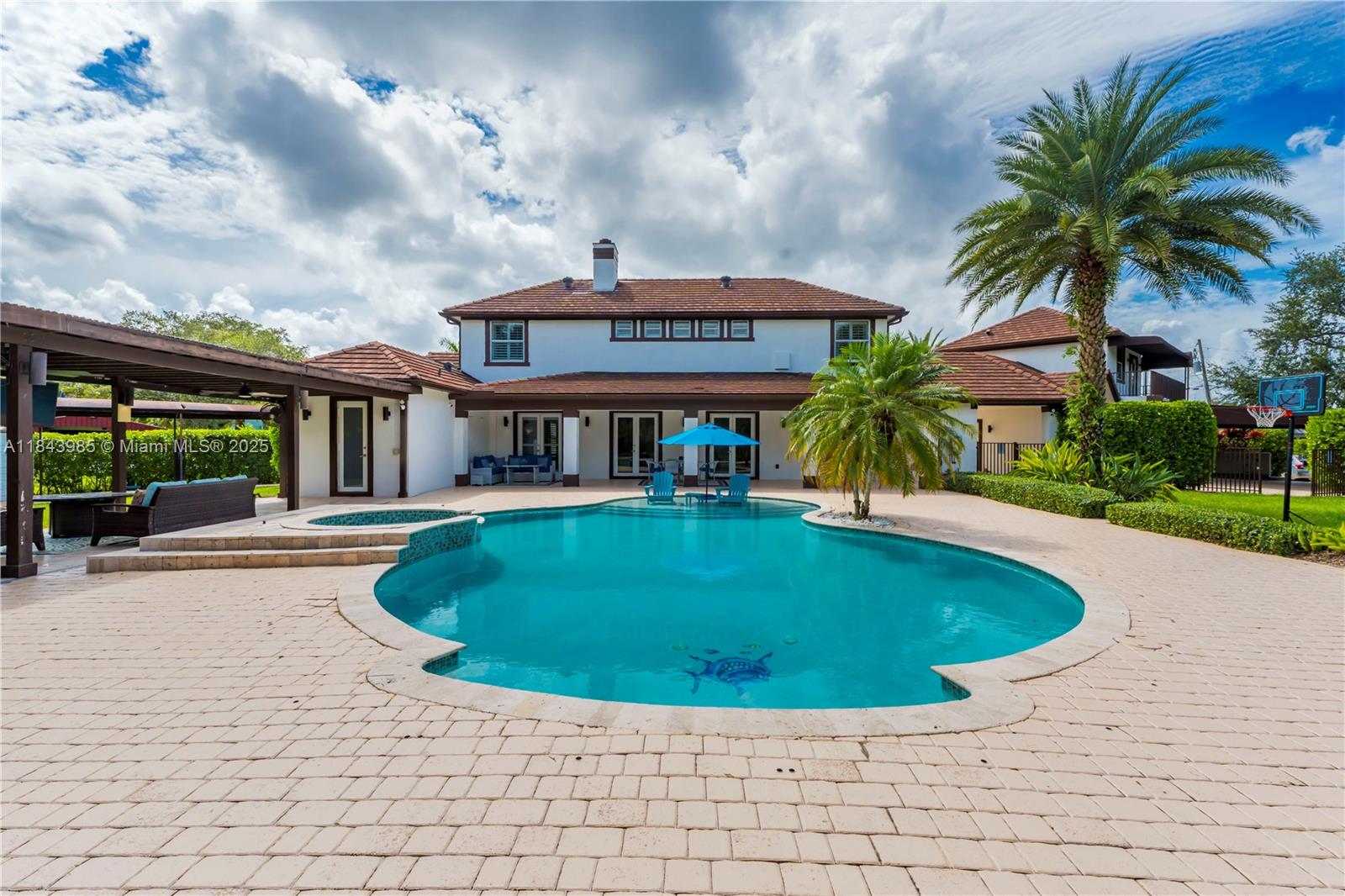 Experience luxury living in this stunning estate located in prestigious Southwest Ranches. Main home features 4 bedrooms + office & 3.5 baths, volume ceilings, open-concept chef’s kitchen with quartz countertops, stainless steel appliances, and gas stove. Marble flooring throughout living areas. Independent guest house with modern finishes, kitchen, living/dining combined and full bath. Expansive media/game room with half bath. Resort-style backyard includes 2024 pool heater, jacuzzi, luxury summer kitchen, fire pit, covered cabanas, surround sound, premium lighting, and mature landscaping. Additional highlights: ALL HURRICANE IMPACT WINDOWS/DOORS, new 2024 well & full house generator. Zoned for top-rated schools. An entertainer’s dream in a prime location!