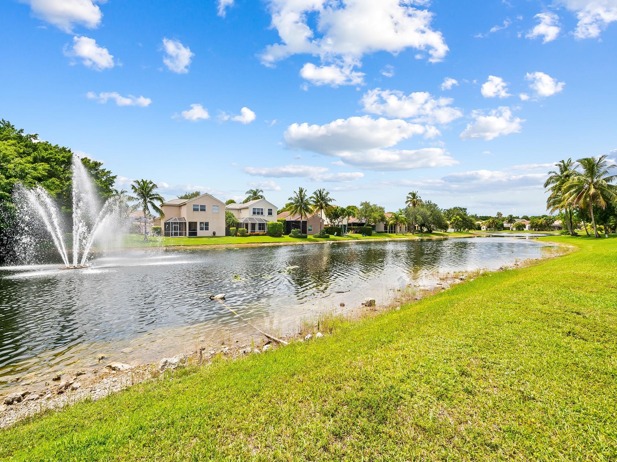 Nestled in the family favorite Lakes of Weston, this 5/4, large 3117 square foot waterfront home with new roof (4yrs old), impact doors, windows and accordion shutters has been lovingly and meticulously cared for and updated. Beginning with double high foyer, welcoming living and dining areas which flow into a kitchen that overlooks the family room, with water views of the lakefront, this is all completed with an illuminated fountain for your sight and sounds. Versatile floor plan features an expansive Master-suite with a lake view, incl a smartly remodeled master bathroom and an additional en-suite bedroom that could easily function as a second master. All this with three more generously sized bedrooms, this residence offers a wealth of living options to suit any family's needs.