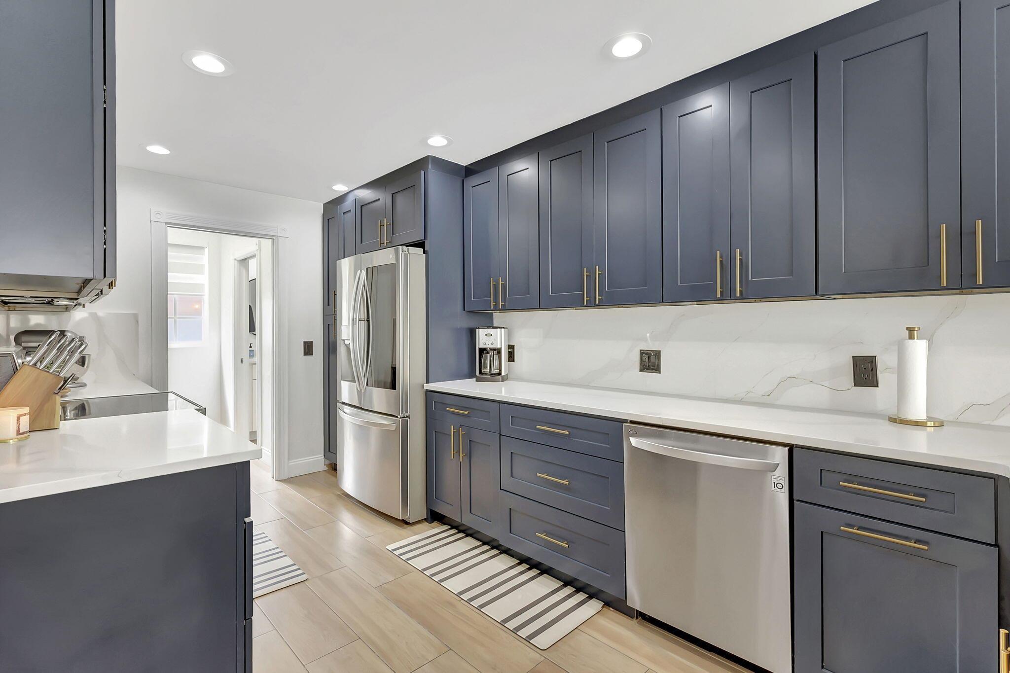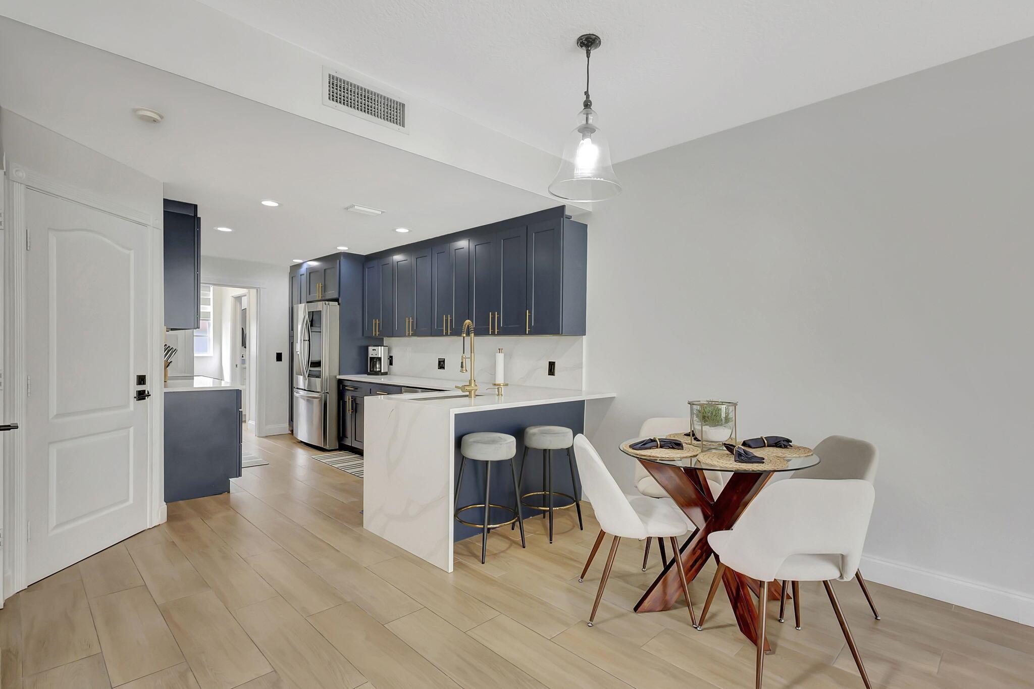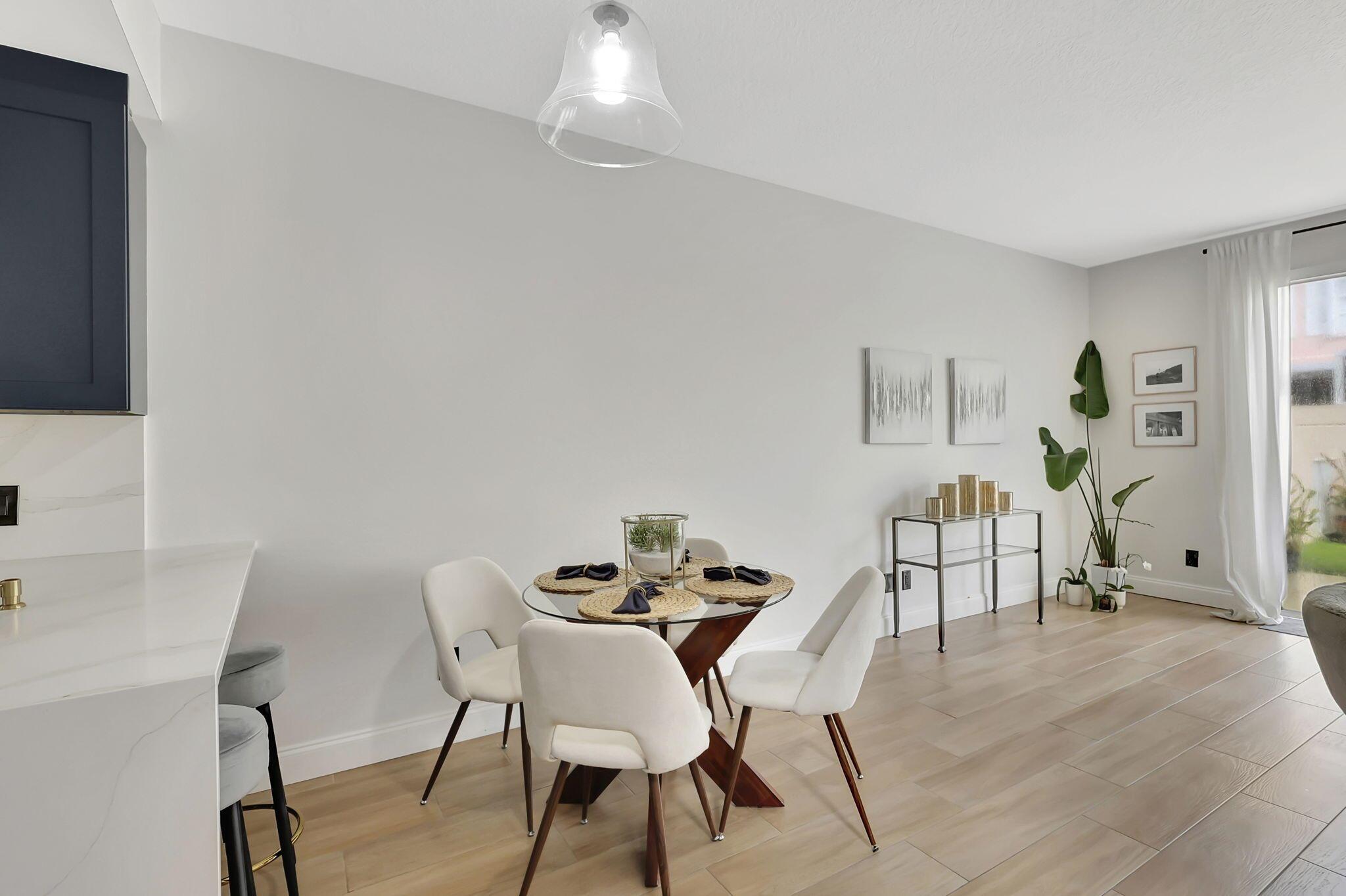 Beautifully updated 3 bedroom 2 bath townhouse with 1 car garage in Riverwalk in West Palm Beach! Wood-look tile floors throughout, gourmet kitchen with white marble countertops, fenced yard with open patio, custom lighting, all white paint, end unit that is full of light and bright. Community offers 3 pools, tennis, pickleball, gym, clubhouse space, walking paths and more. HOA fee includes internet and WiFi! Quick access to I95, Turnpike, Palm Beach Airport the areas best beaches. A short drive to lively downtown West Palm Beach, Palm Beach Island, great restaurants. See it today! AC is 2018.