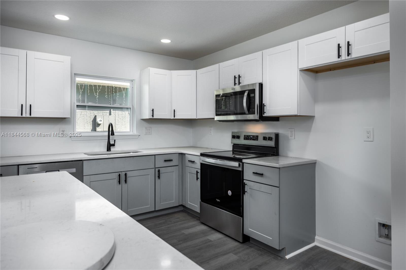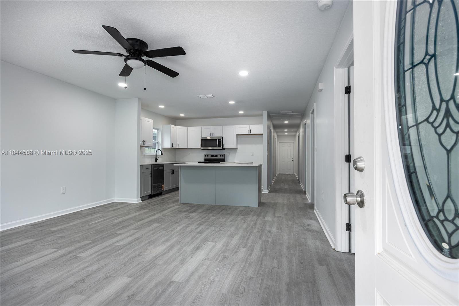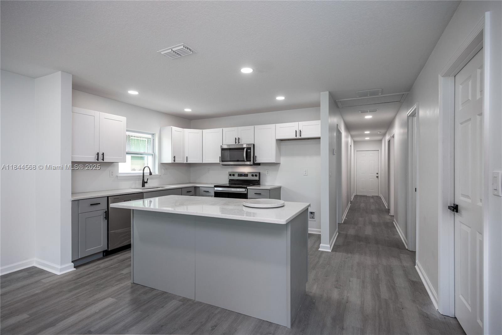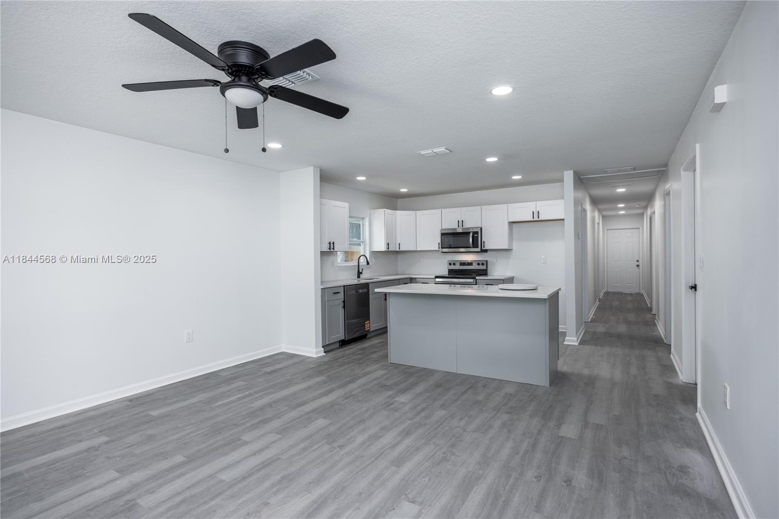 NEW CONSTRUCTION, COMPLETED! Experience the Ultimate Modern Marvel! Step into your dream home—where style, comfort, and excitement collide. This bold, contemporary residence features a striking grey stone and wood exterior with serious curb appeal. Inside, 8-ft ceilings and an open-plan layout flow through the hallway, living area, and kitchen—lit by sleek recessed lighting. Grey waterproof vinyl floors and porcelain tile add durability and elegance. The chef's kitchen boasts stainless steel appliances, quartz counters, and a giant island. Bathrooms are spa-inspired with bold black fixtures. Comfort is key with heat pump climate control, a tankless water heater, and ceiling fans. Bold elegance meets smart design—schedule a tour today!