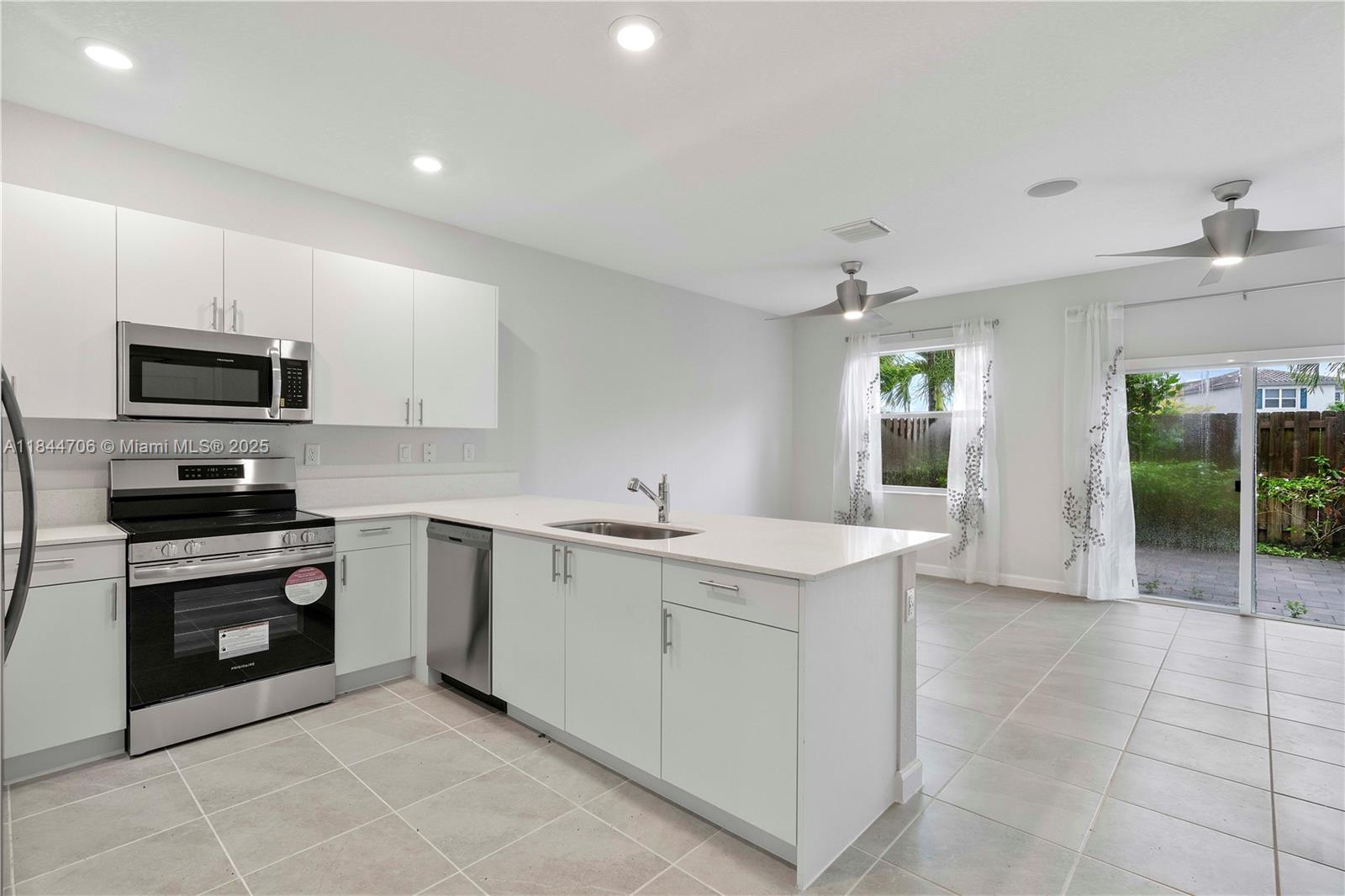 Seize this exceptional chance to own a never-occupied former model home situated in the desirable Riviera at Keys Gate! This beautifully appointed 3-bedroom, 2.5-bath townhome boasts a bright, airy layout designed for today's lifestyle. The kitchen features sleek white cabinetry, quartz countertops, stainless steel appliances, and a casual breakfast bar ideal for both entertaining and everyday use. Enjoy the private, fully fenced backyard with low-maintenance landscaping, perfect for outdoor enjoyment. Residents also enjoy access to a resort-style clubhouse, sparkling pool, and fitness center. Conveniently located near restaurants, shopping, and just a short drive to the Florida Keys. Square footage is approximate.