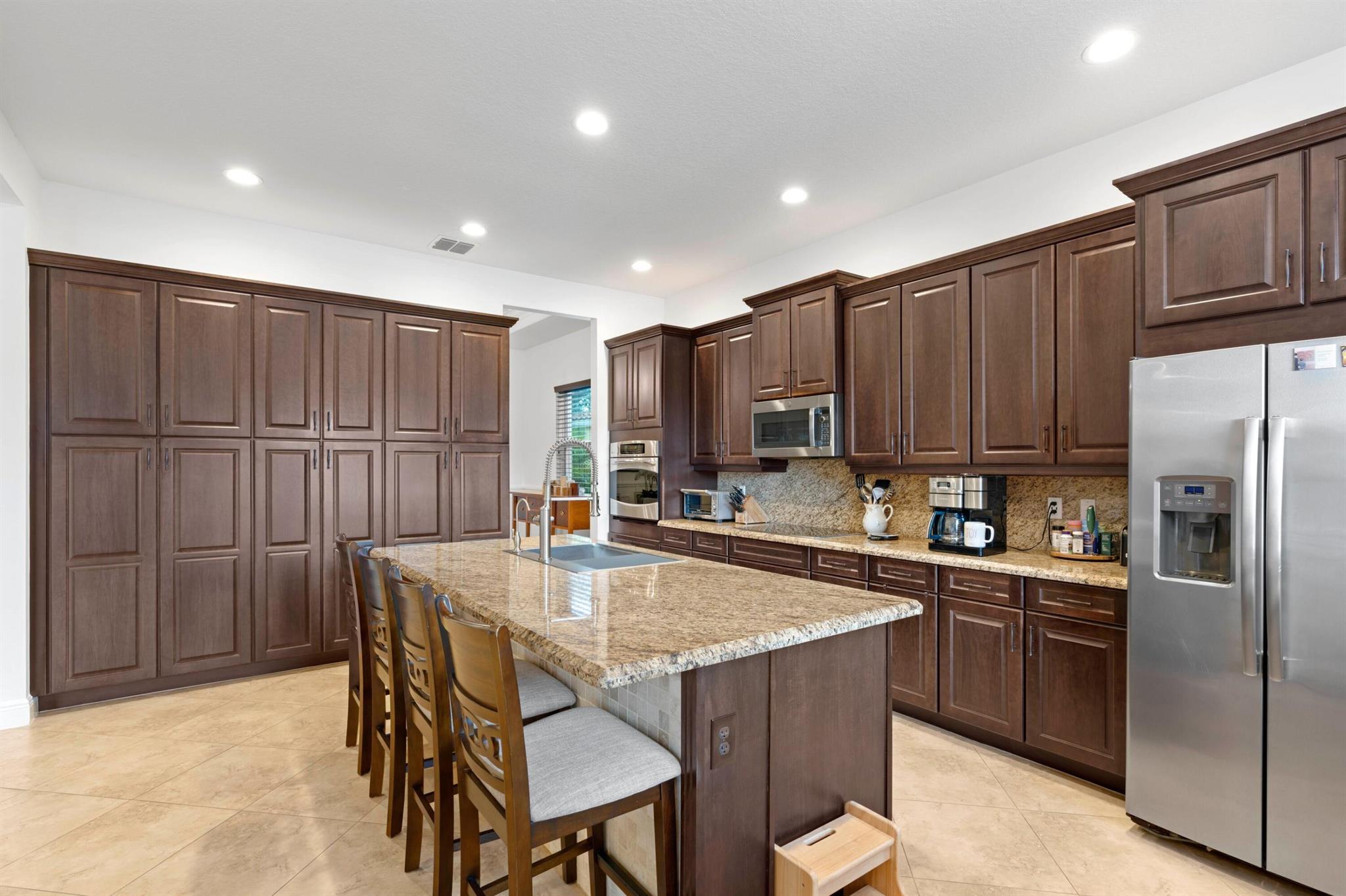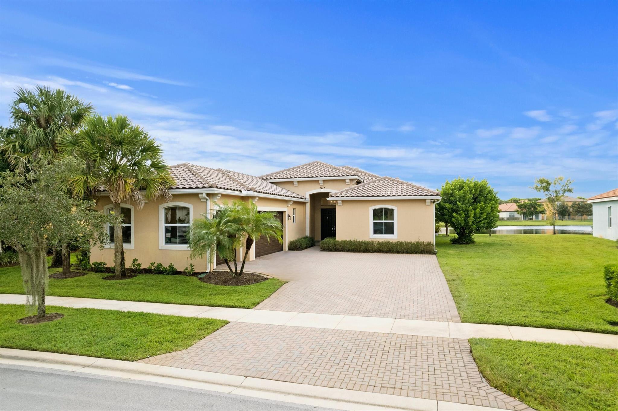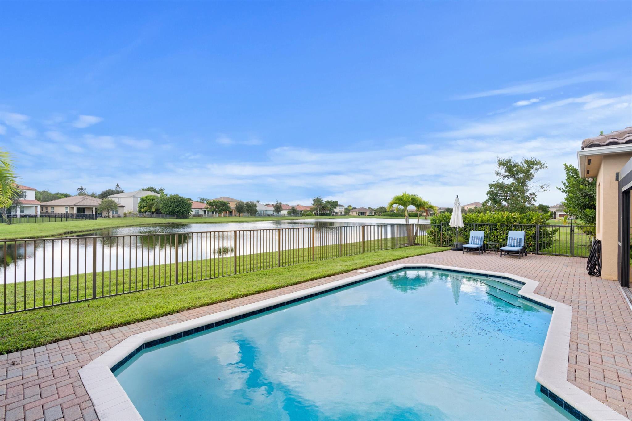 Stunning lake view home in the highly sought-after PortoSol gated community. This turnkey residence offers unparalleled luxury and comfort. Key features include impact windows and doors, custom wood cabinetry, beautiful crafted coffered ceilings, custom trim accents and an air-conditioned 3-car garage. The open floor plan extends to a stunning outdoor area featuring a beautiful pool surrounded by lush landscaping, along with a built-in grill ideal for outdoor gatherings. PortoSol offers an array of amenities o enhance your lifestyle including beach volleyball, basketball, pickleball, playground and 24-hour access to the great gym.