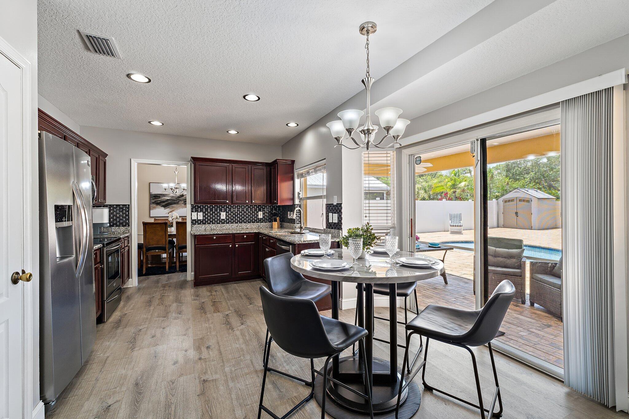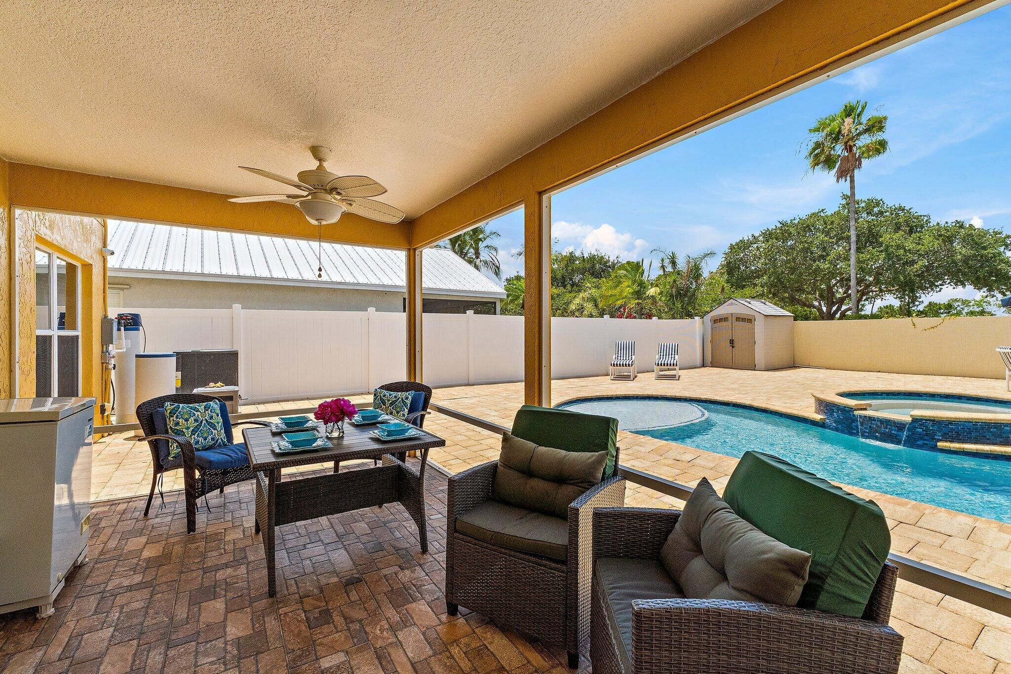 Beautifully upgraded 4 Bedroom, 2.5 Bath Pool Home in the highly desirable community of Windemere in Jensen Beach! Major updates include New Roof (2024), New Hot Water Heater (2021), Updated Kitchen & Baths. Brand New Pool & Spa! Interior features Luxury Vinyl Flooring thru-out, Granite Kitchen w/updated S/S appliances, New Ceiling Fans, Crown Molding & More! Step inside this well-appointed 2 Story Home w/Living & Dining Area, Kitchen open to patio & Family Room with Fireplace. Enjoy outdoor living at its very best with a NEW Saltwater Custom Pool & Spa, Brick Paver Patio & Fully Fenced Rear Yard. The Covered & Screened Lanai is the perfect place to Entertain. Gorgeous natural light as you enter the home w/ palladium window & beautiful staircase. On the 2nd level there is a large primary