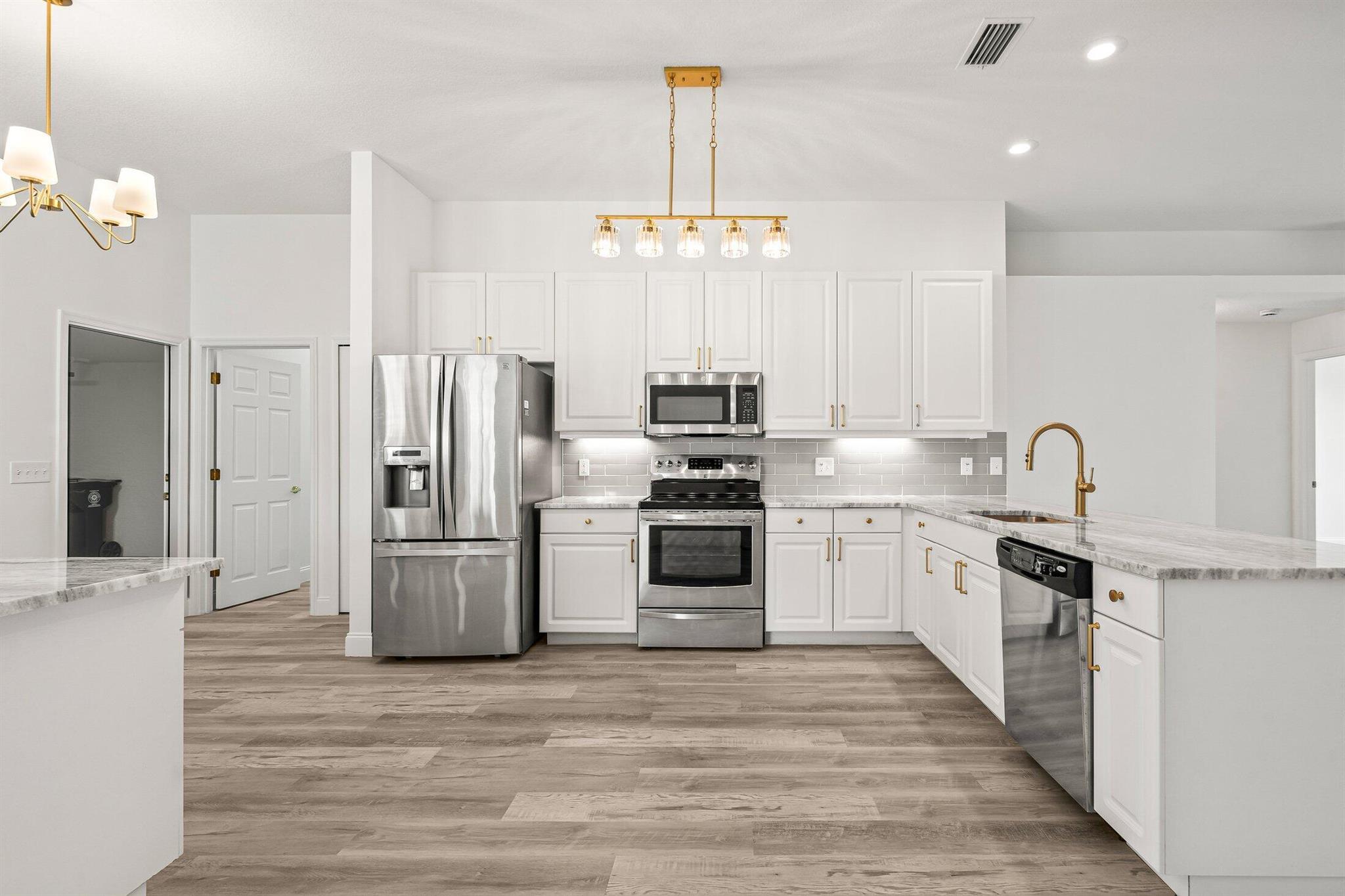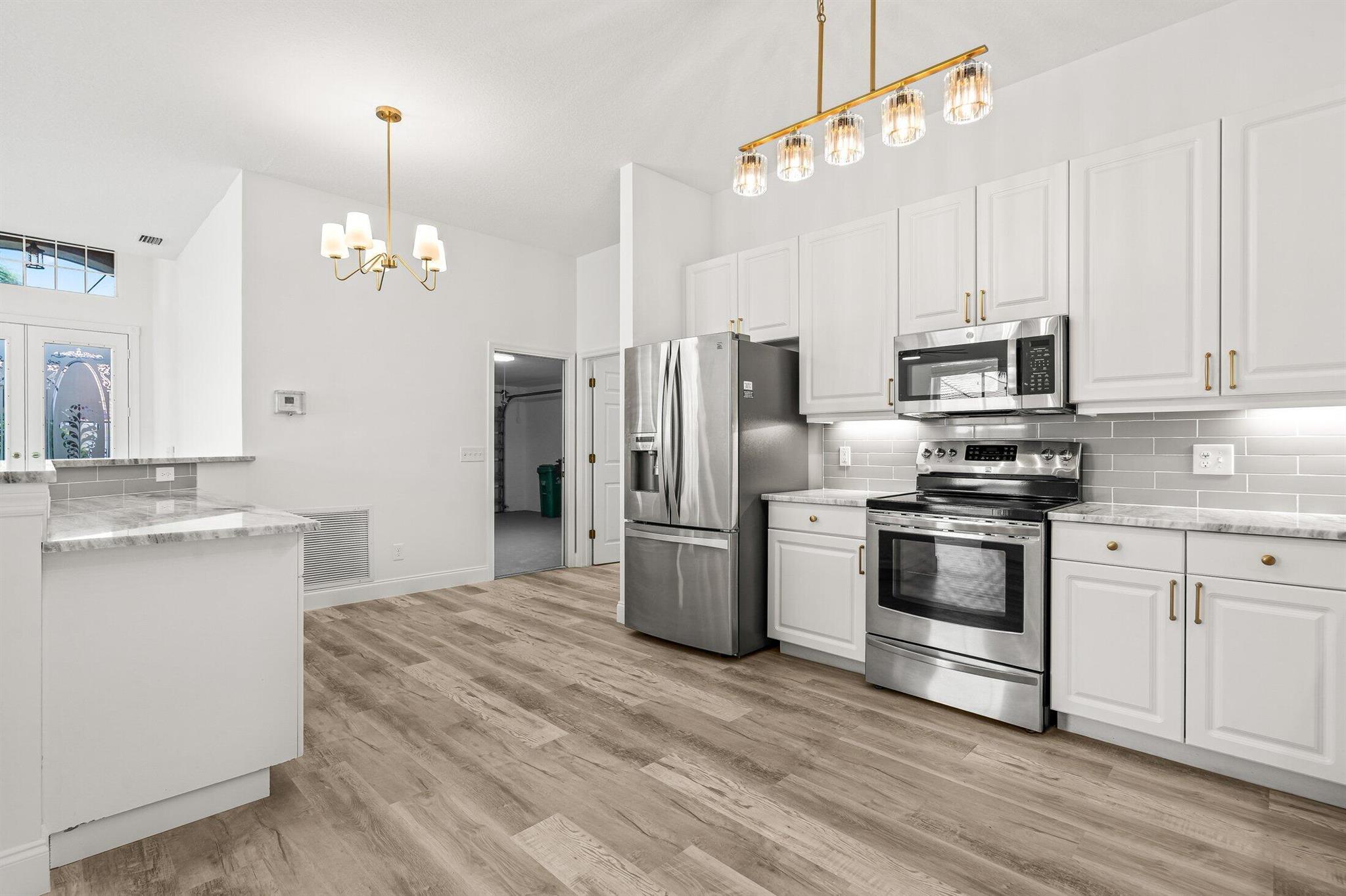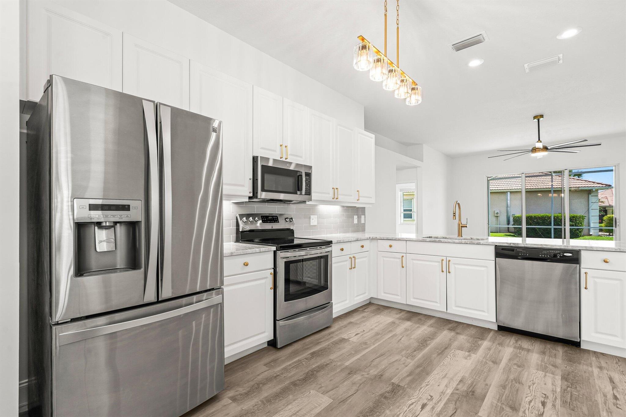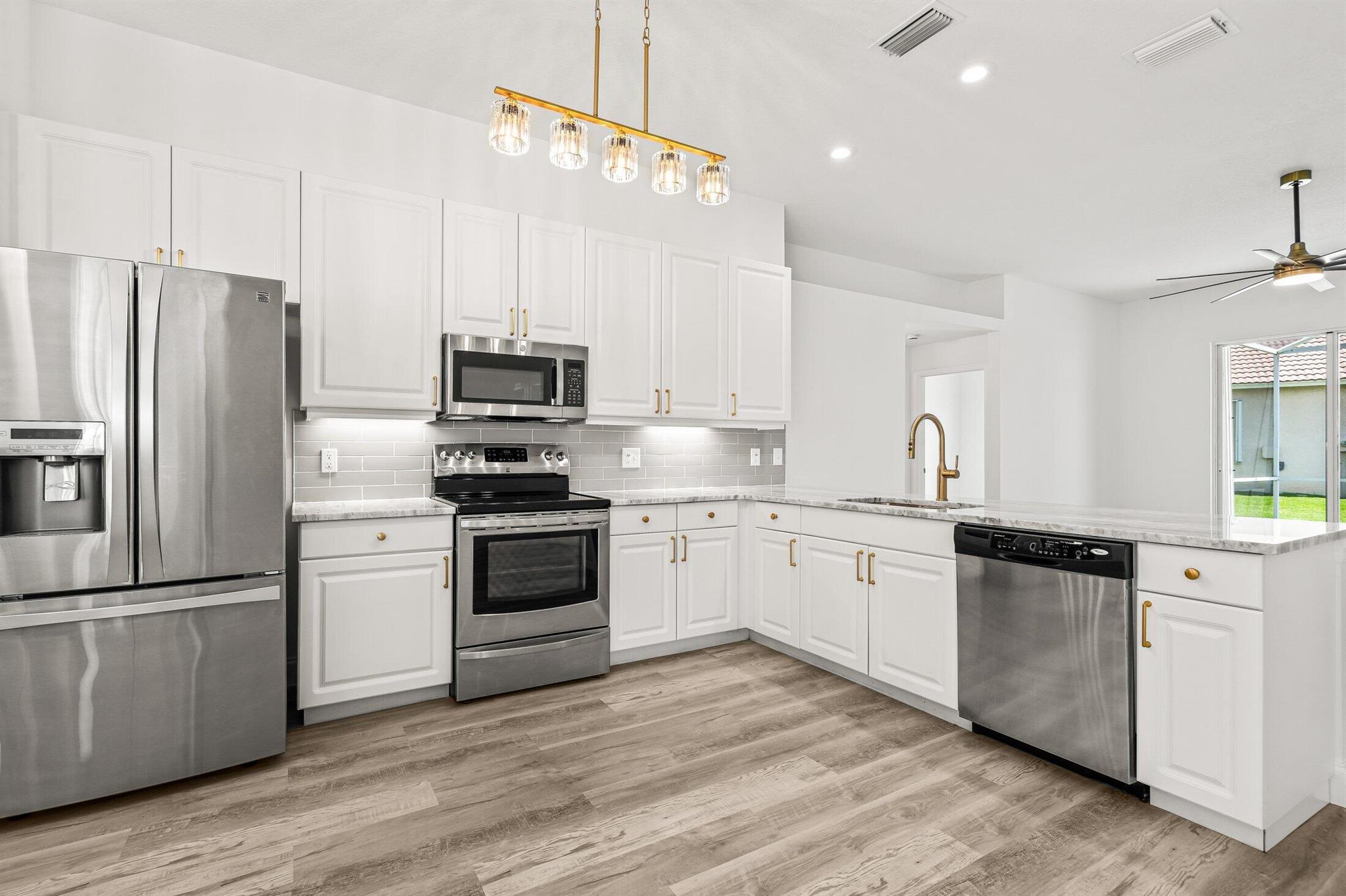 NEW ROOF! Renovated 3 bedroom, 2 bathroom home on a large corner lot with 2-car garage. Enjoy luxury flooring throughout and a bright, open floor plan perfect for entertaining. The stunning kitchen features white cabinets, granite countertops, and stainless steel appliances. Updated bathrooms include new tile, vanities, and fixtures. AC 2020, water heater 2024. A must-see!Home comes with a 1 year Choice Home Warranty. Choice Plan covers HVAC, electric, plumbing and appliances! See brochure in docs for details.