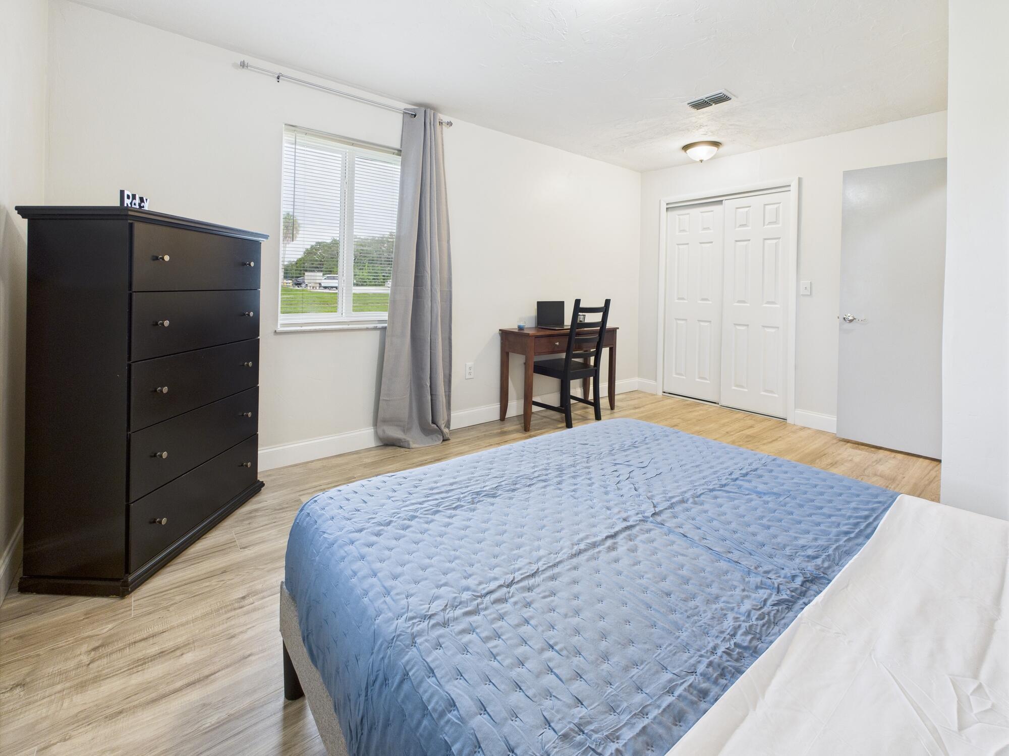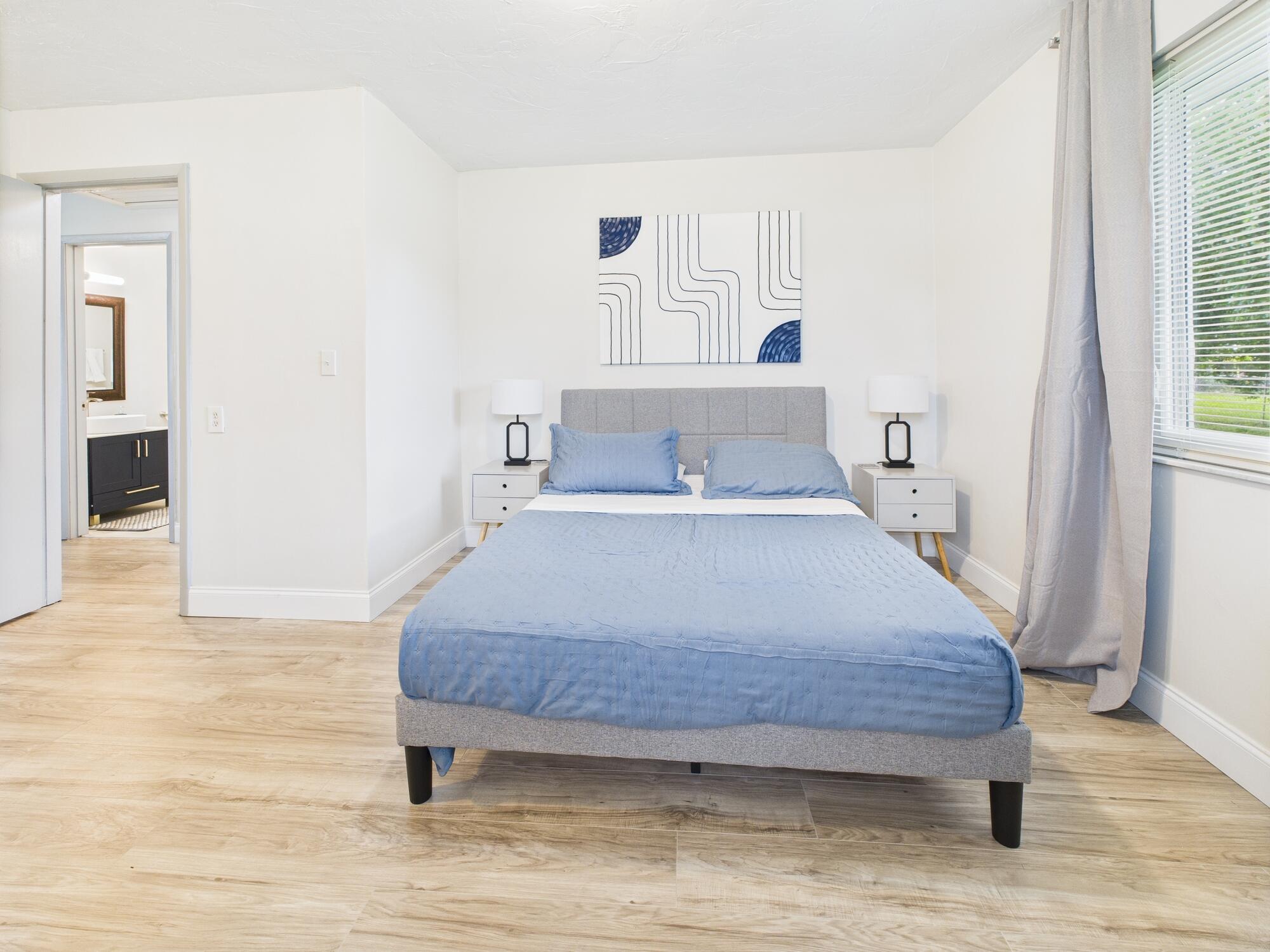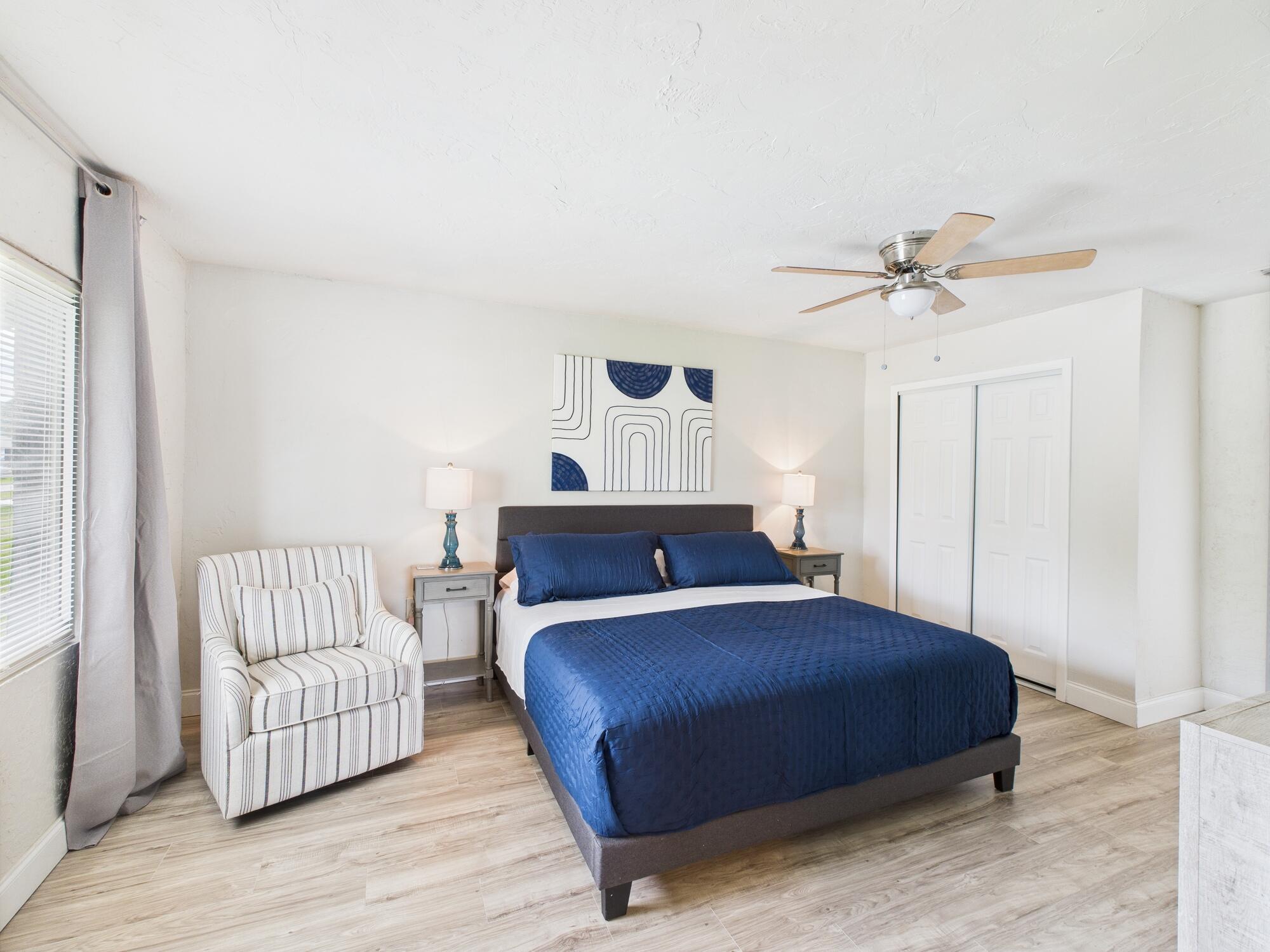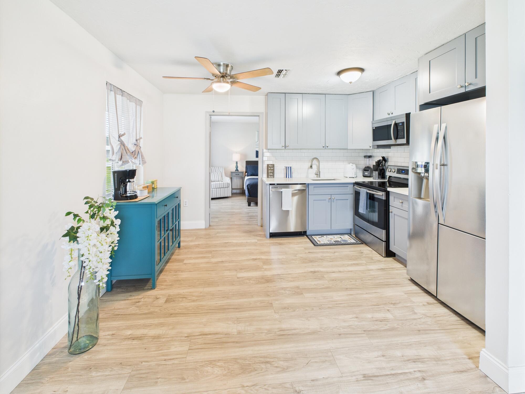 Completely remodeled 3BD/2BA split floor plan with brand-new roof, windows, floors, paint, kitchen, and baths--no detail overlooked! The all-new kitchen features solid cabinets, countertops, stainless appliances, and subway tile backsplash. The master suite offers a rainfall shower with glass block, sunken shelf, and private lanai. Guest bath includes a vessel sink. Fully furnished and set up as a short-term rental--furnishings negotiable. Corner lot with shaded backyard near schools, medical, great fishing, restaurants, and just a short drive to east and west coast beaches.