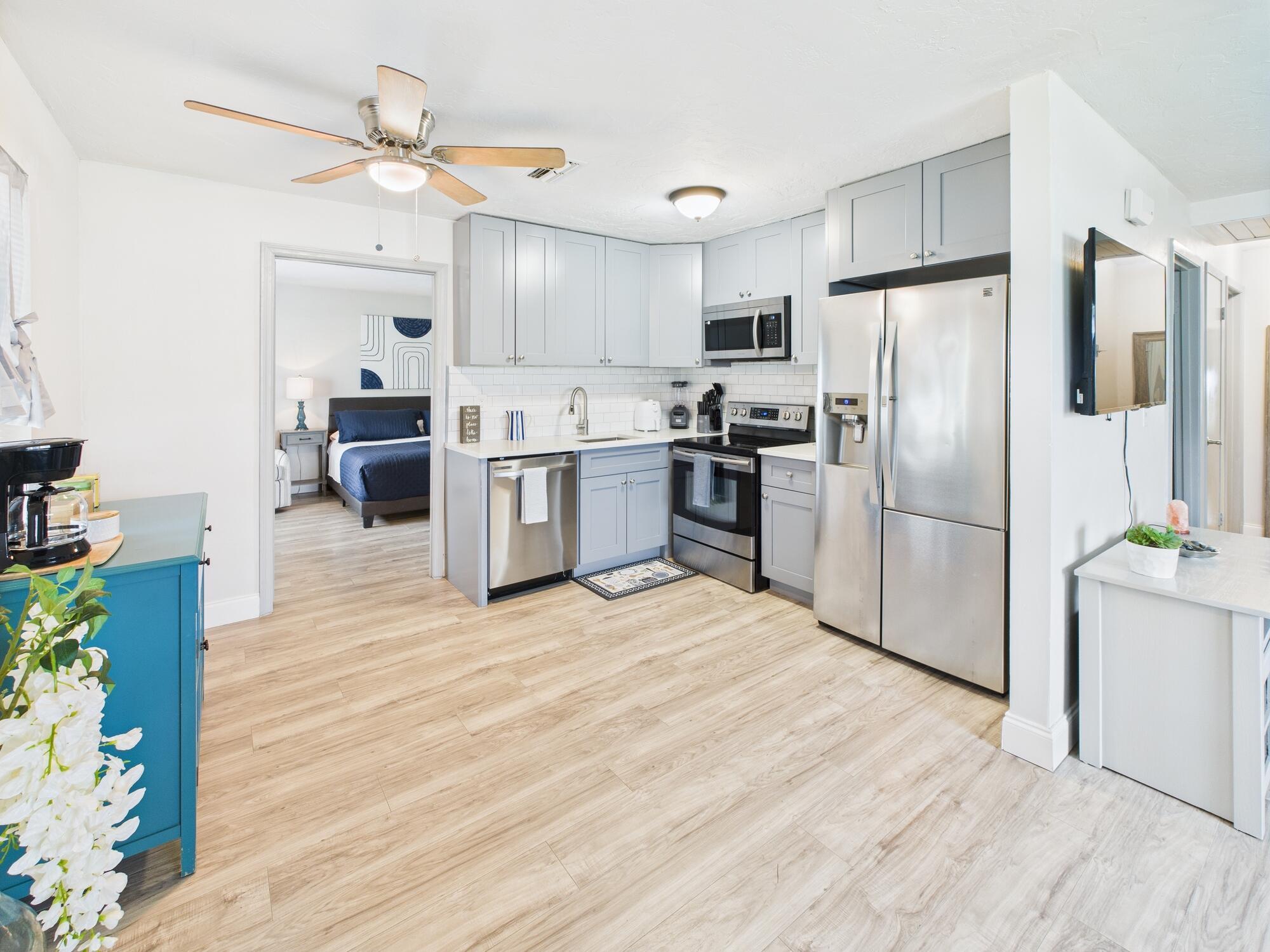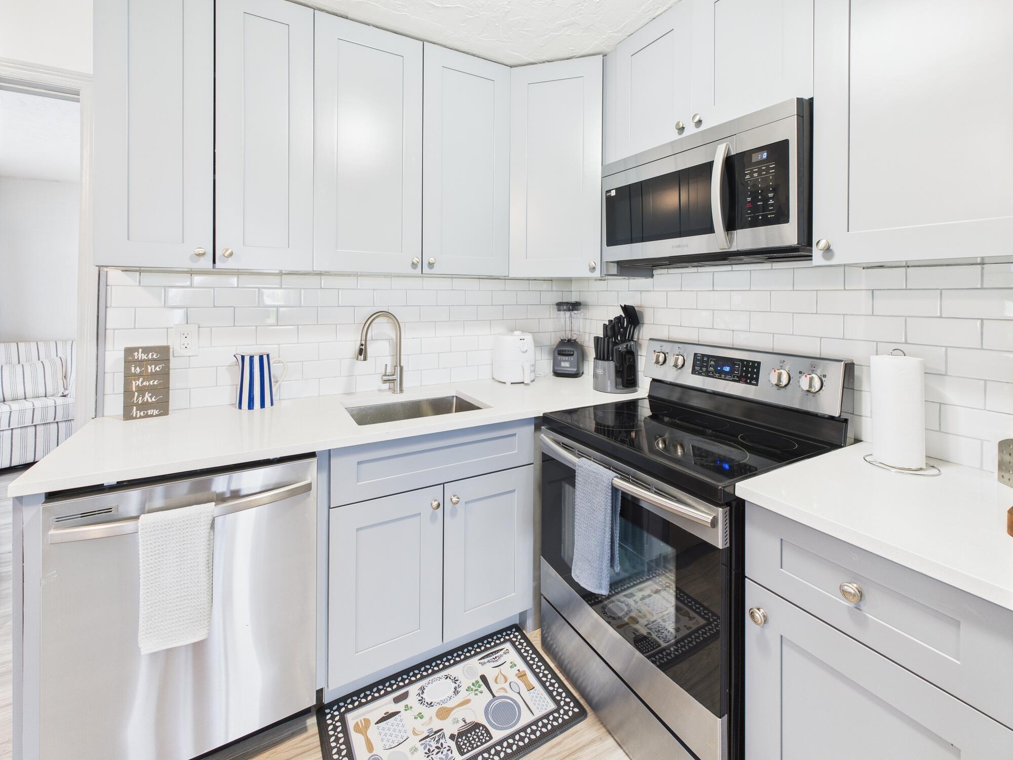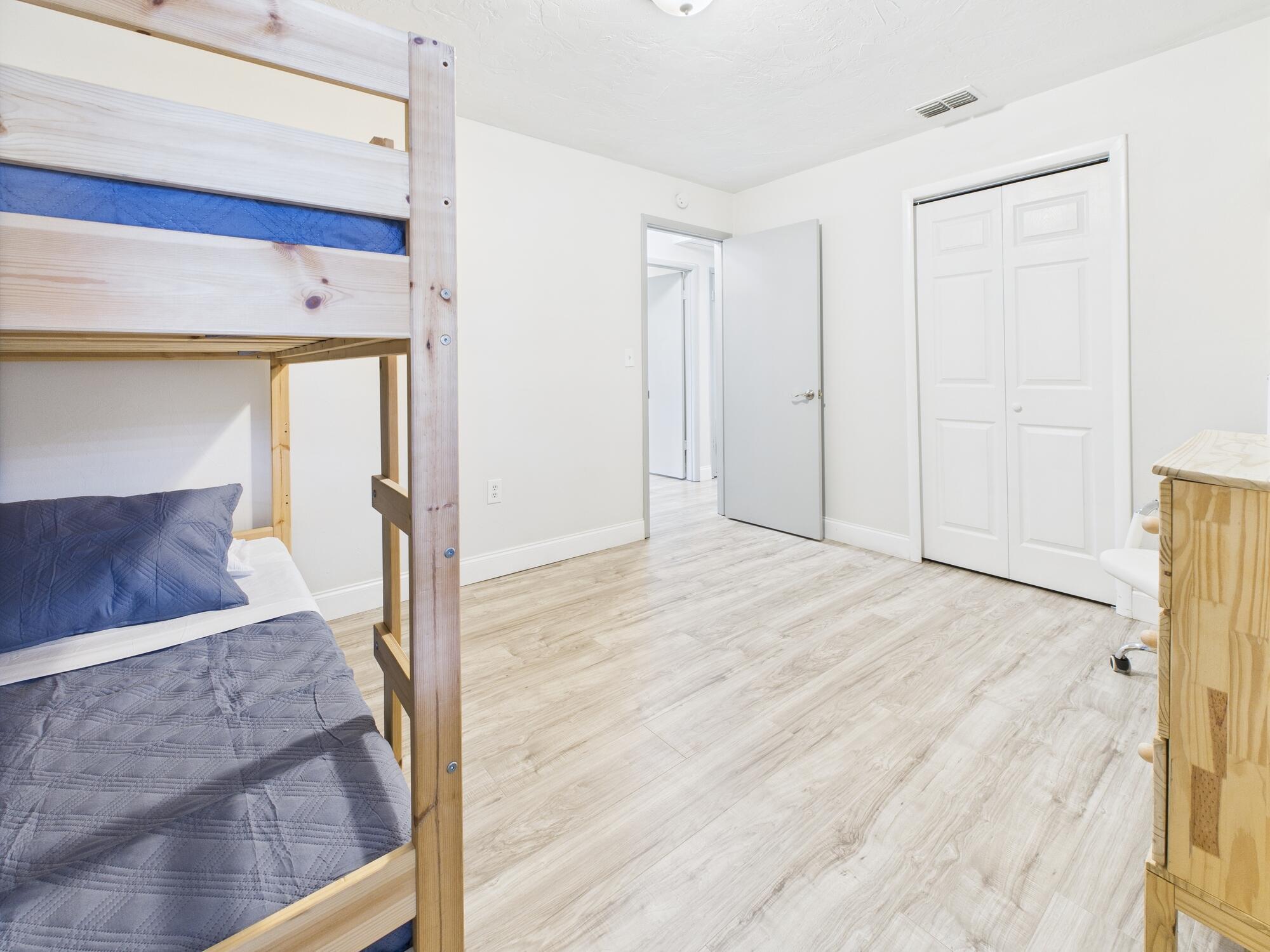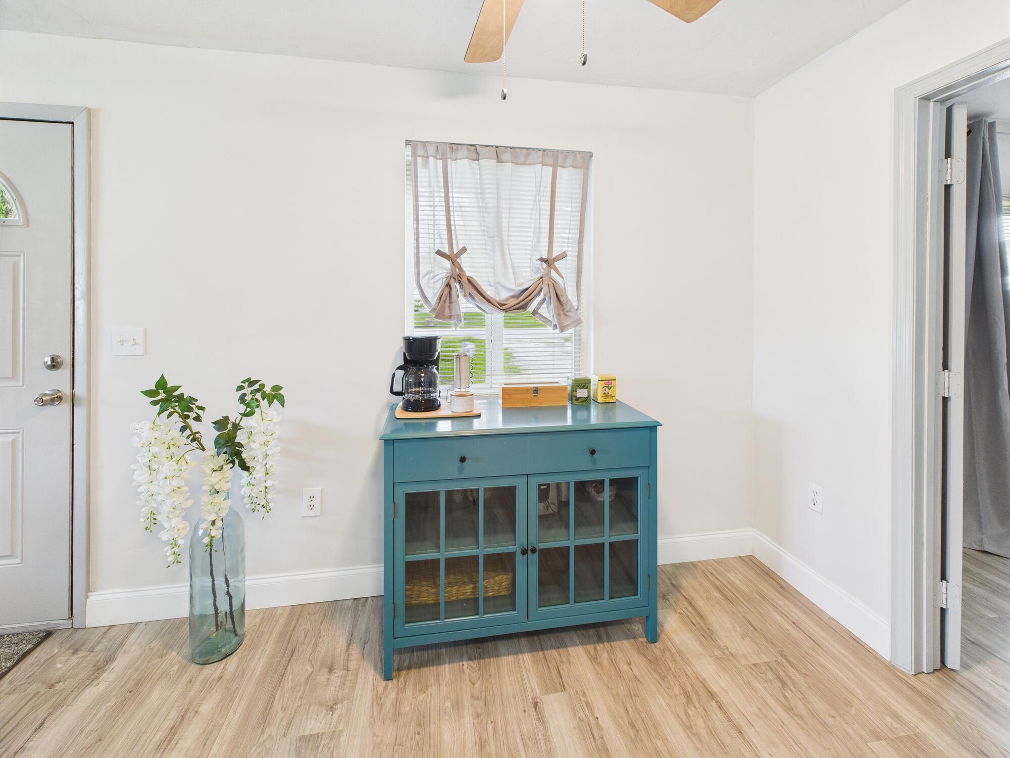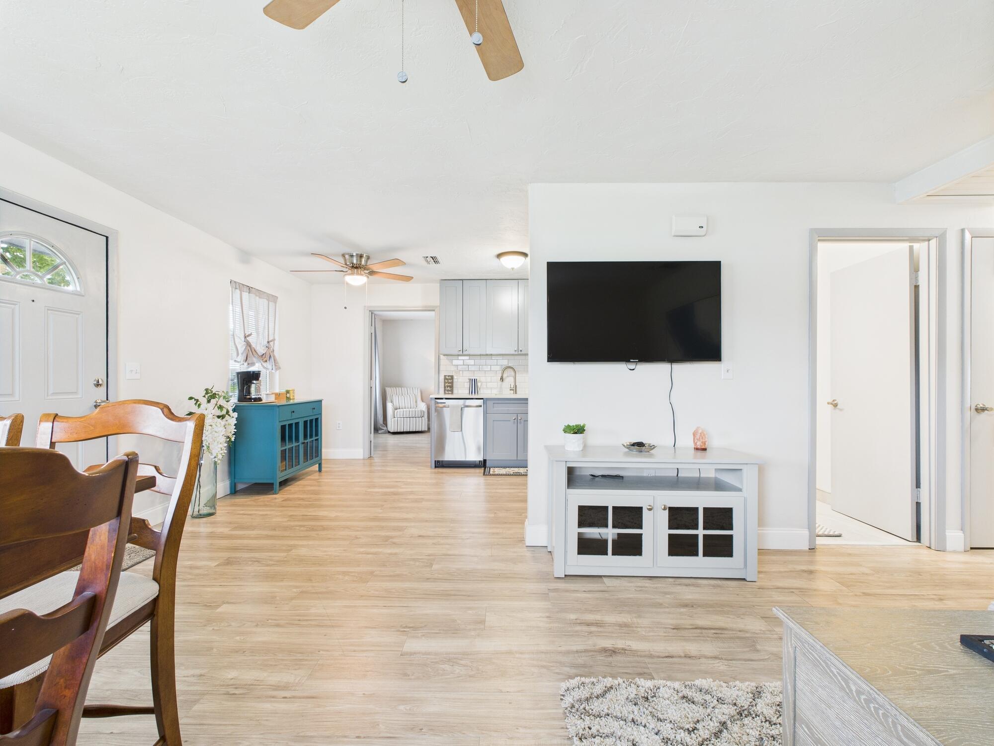 Completely remodeled 3BD/2BA split floor plan with brand-new roof, windows, floors, paint, kitchen, and baths--no detail overlooked! The all-new kitchen features solid cabinets, countertops, stainless appliances, and subway tile backsplash. The master suite offers a rainfall shower with glass block, sunken shelf, and private lanai. Guest bath includes a vessel sink. Fully furnished and set up as a short-term rental--furnishings negotiable. Corner lot with shaded backyard near schools, medical, great fishing, restaurants, and just a short drive to east and west coast beaches.