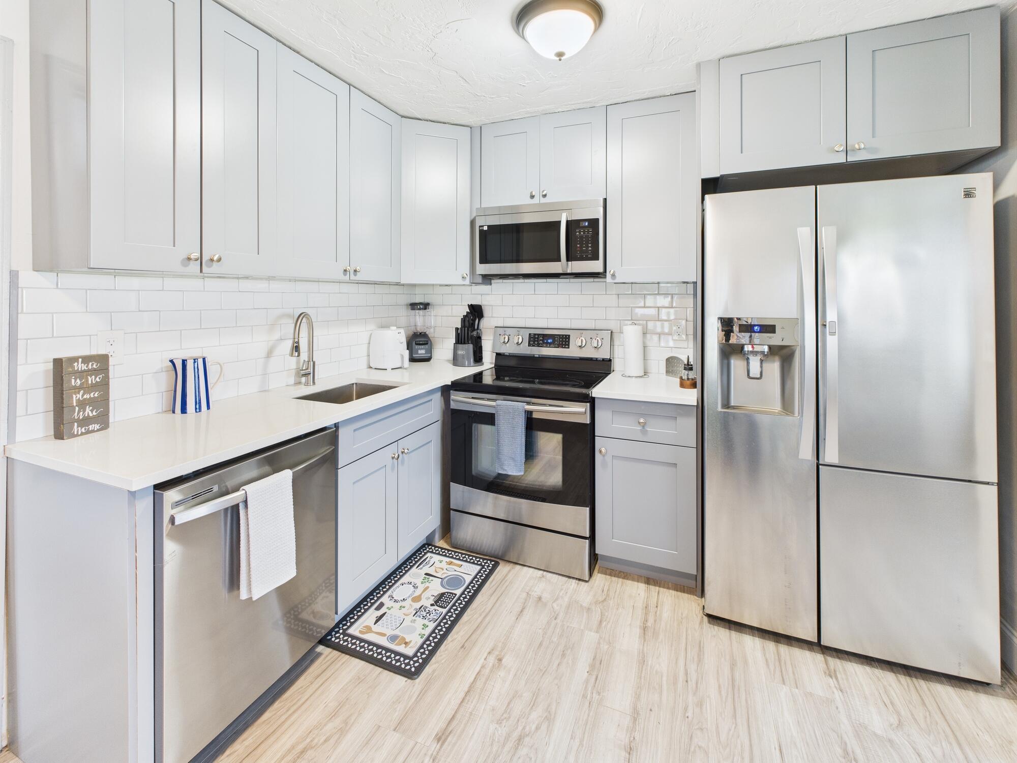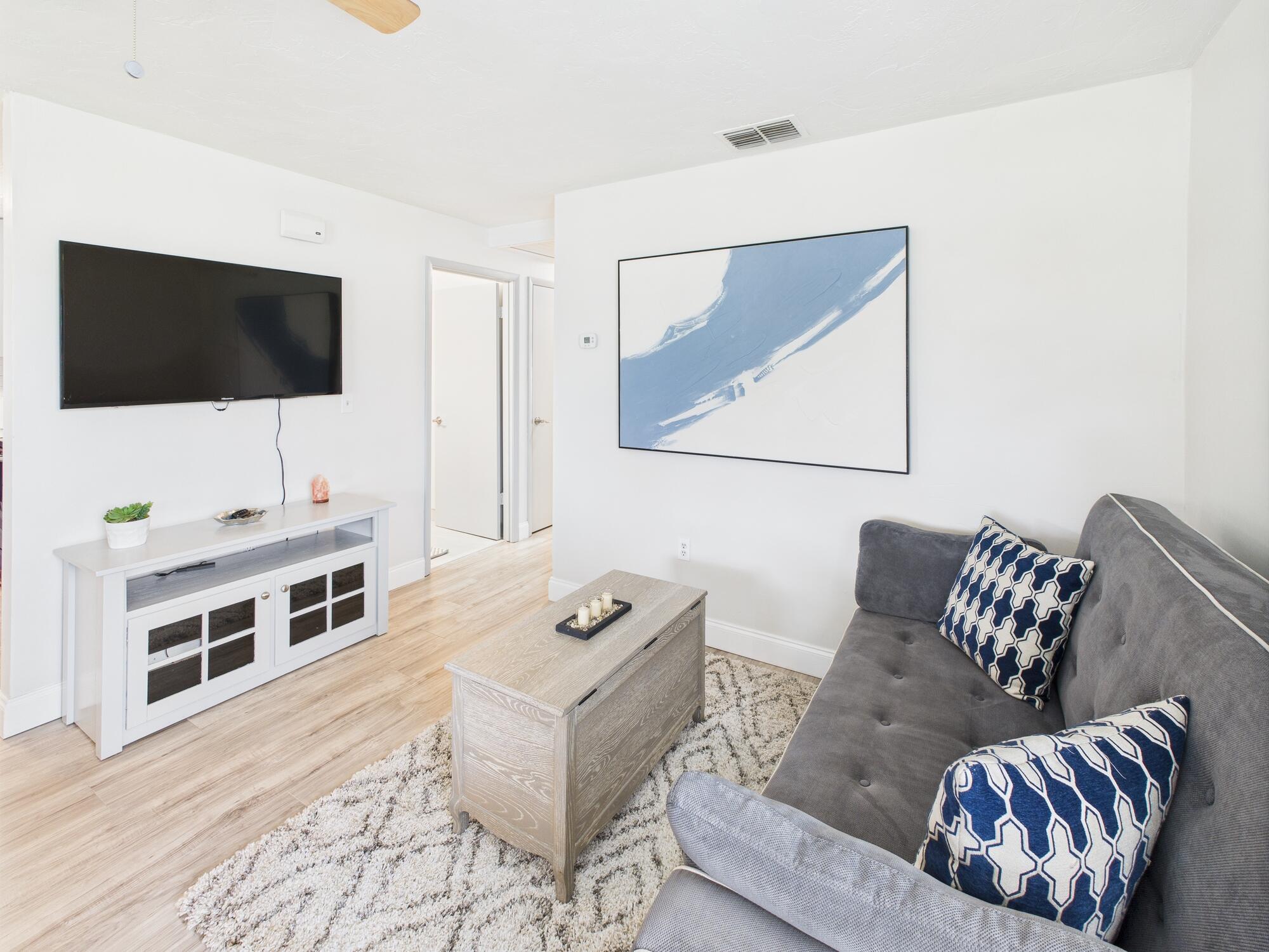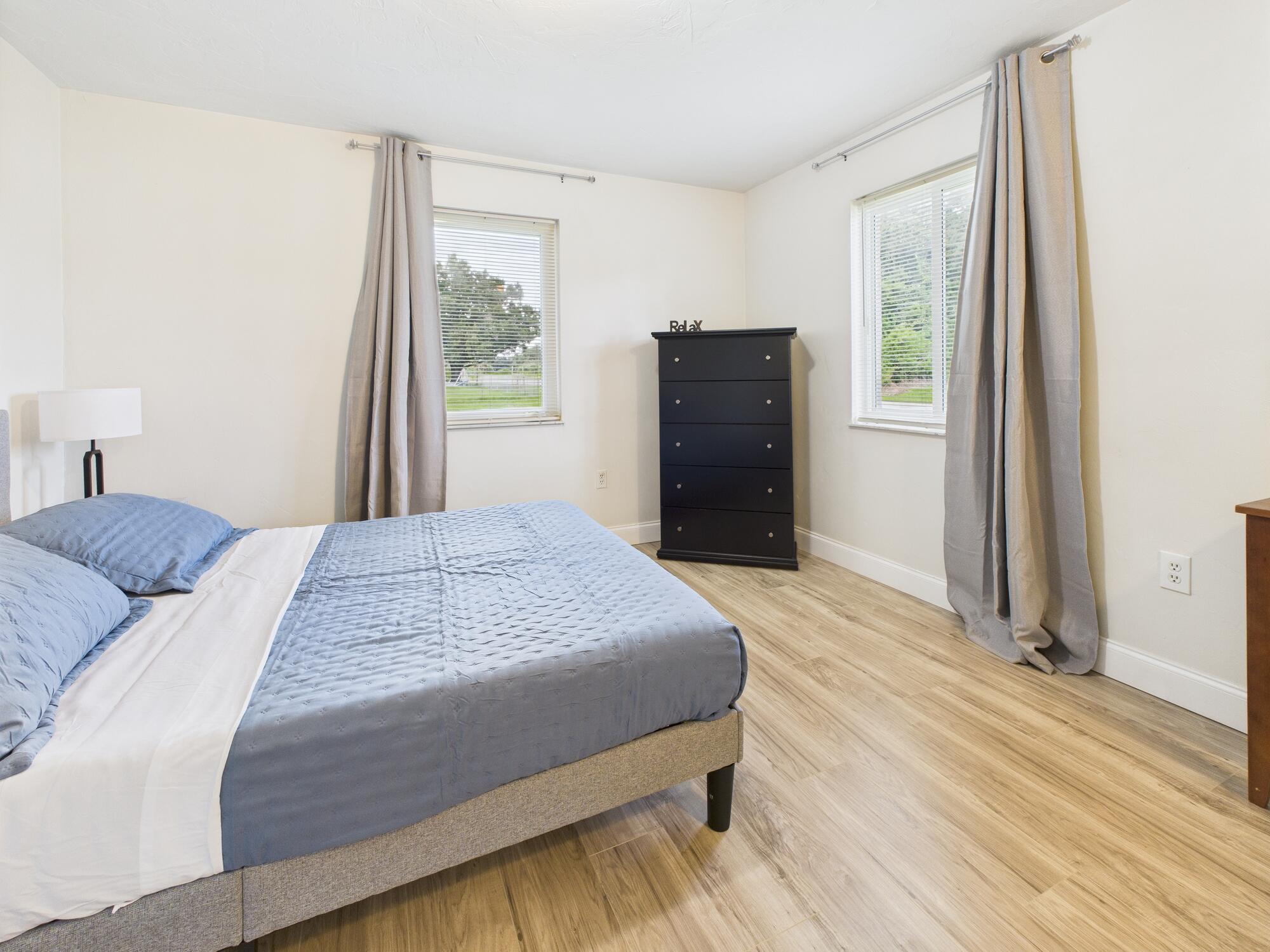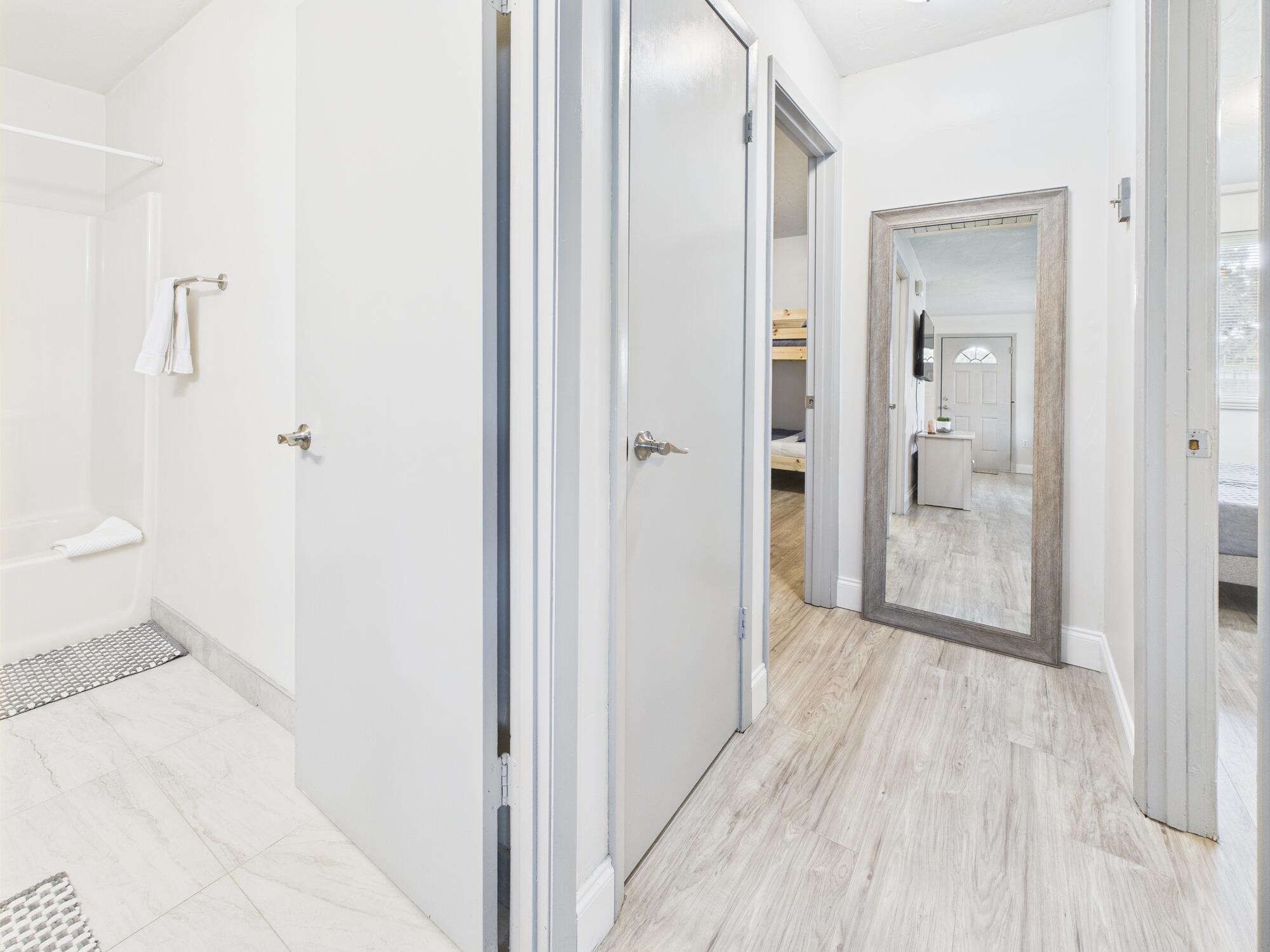 Completely remodeled 3BD/2BA split floor plan with brand-new roof, windows, floors, paint, kitchen, and baths--no detail overlooked! The all-new kitchen features solid cabinets, countertops, stainless appliances, and subway tile backsplash. The master suite offers a rainfall shower with glass block, sunken shelf, and private lanai. Guest bath includes a vessel sink. Fully furnished and set up as a short-term rental--furnishings negotiable. Corner lot with shaded backyard near schools, medical, great fishing, restaurants, and just a short drive to east and west coast beaches.
