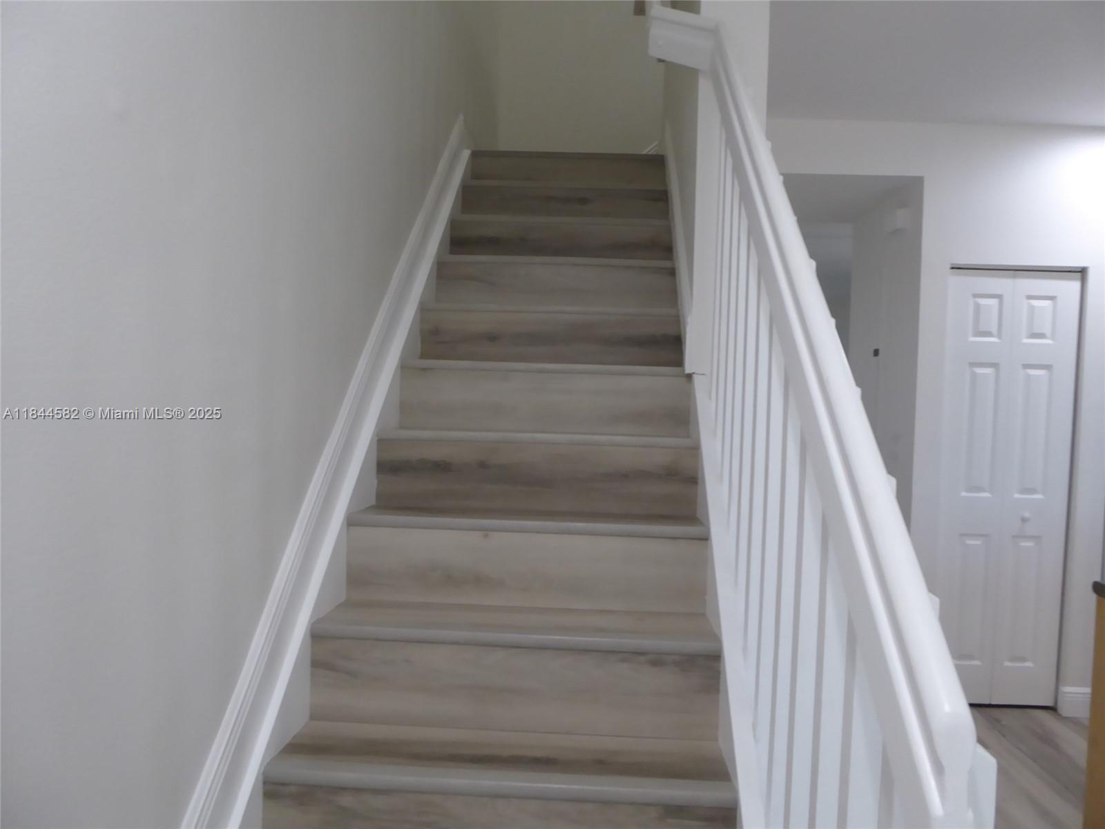 Spacious 2 story townhome newly renovated with all new vinyl wood flooring throughout. The whole house is freshly painted with a perfect color that matches the new variegated light grey and beige floors with all new white base boards. Nice floor plan with a formal area for the dining room and large living and family rooms. Open kitchen with island sink, storage and electric outlets for plug in kitchen items. Wide snack counter will allow for many stools. Fenced backyard with storge room and hurricane shutters and tall ladder. Complex has security gate entry with a call box for visitors. Marbella Bay has play area on site and a community pool and gym with clubhouse in driving distance. 2 parking spaces in front of the unit makes it easy to get those grocery's inside. Close to turnpike