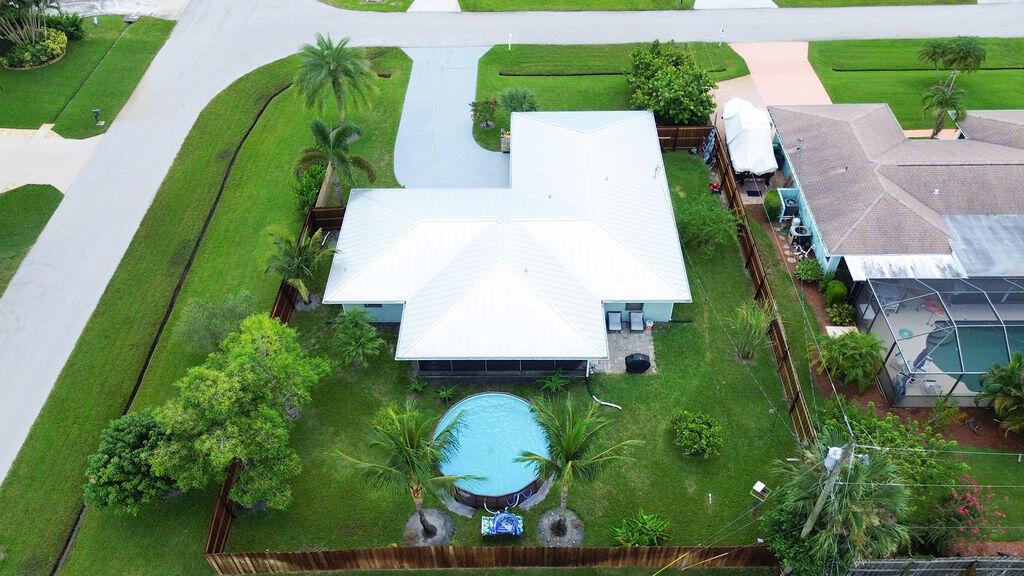 If you are looking for a TURN KEY HOME, but new construction is too boring; this is your house. Here is what you are getting: CBS Construction, 2019 Seamless Metal Roof, gutters, water heater-2022, Wood Privacy Fence-2019, New Paint Inside, New Front Door, New Vinyl floors in Bedrooms, XLarge Laundry Room, SS appliances, granite counters, Beautiful yellow pine ceilings in your extra large screened patio with new insulation, double back patio entry from house, Split Bedrooms, Large Corner Lot with Fruit Trees (Banana,sugar cane,mango,red naval orange,olive,date palm, 4 zone well sprinkler, side facing garage for privacy, upgraded electrical receptacles, upgraded 2nd bathroom. above ground pool & Pump optional, room for pool, Not Far to Beaches, Riverwalk, Botanical Gardens & Entertainment