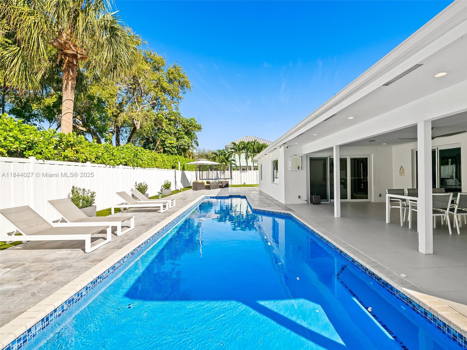 Completely upgraded & renovated to the highest standards in 2021! Located on one of the most sought after addresses, in THE BEST SCHOOL DISTRICT of Ft Lauderdale! Some of the upgrades include; NEW ROOF, new HIGH IMPACT DOORS & WINDOWS, NEW AC's, BRAND NEW BATHS & KITCHEN, new PORCELAIN TILES throughout, NEW ELECTRICAL & PLUMBING, NEW APPLIANCES, BLACK-OUT's at each room and many, many more! Desirable split layout floor plan. LARGE COVERED PATIO area providing plenty of rooms to play and store toys. LARGE SIZE LAP POOL with new tiles. CABANA BATH & OUTDOOR SHOWER. Elegant tropical landscaping & FENCED COMPLETELY to provide the utmost privacy. CIRCULAR PAVED DRIVEWAY plus a TWO CAR GARAGE! Fine dining and shopping all within walking distance as well as being only one mile to the beach!