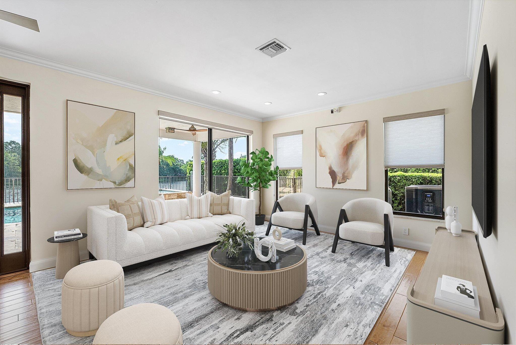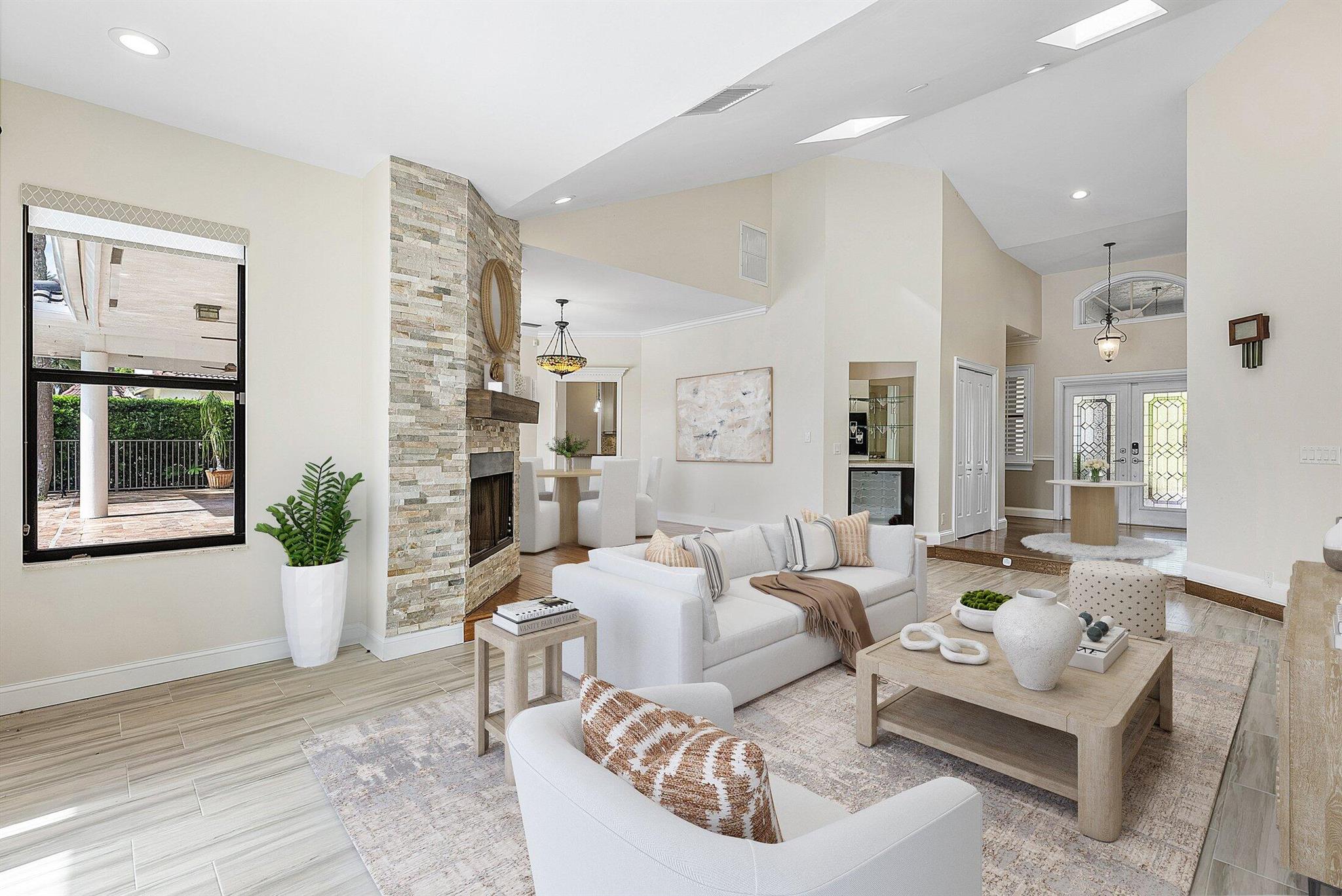 Exceptional 4BR/3BA custom home in Boca Sailing & Racquet Club with over 3,000 sq ft of living space on a private 16,000+ sq ft cul-de-sac lakefront lot. Enjoy wide lake views with no rear neighbors, a custom saltwater pool and spa, lush landscaping, and a covered loggia for outdoor dining. Interior features include soaring ceilings, split bedroom layout, wood and tile flooring, renovated bathrooms, a gourmet kitchen with granite counters, wood cabinetry, custom pantry, and new stainless appliances. Impact glass throughout, new A/C units, new washer/dryer, freshly painted interior, and new barrel tile roof. Covered patio and fenced backyard complete this turnkey home. Boca Sailing is an exclusive gated community with 24/7 security, tennis and pickleball courts, and a 45-acre lake.