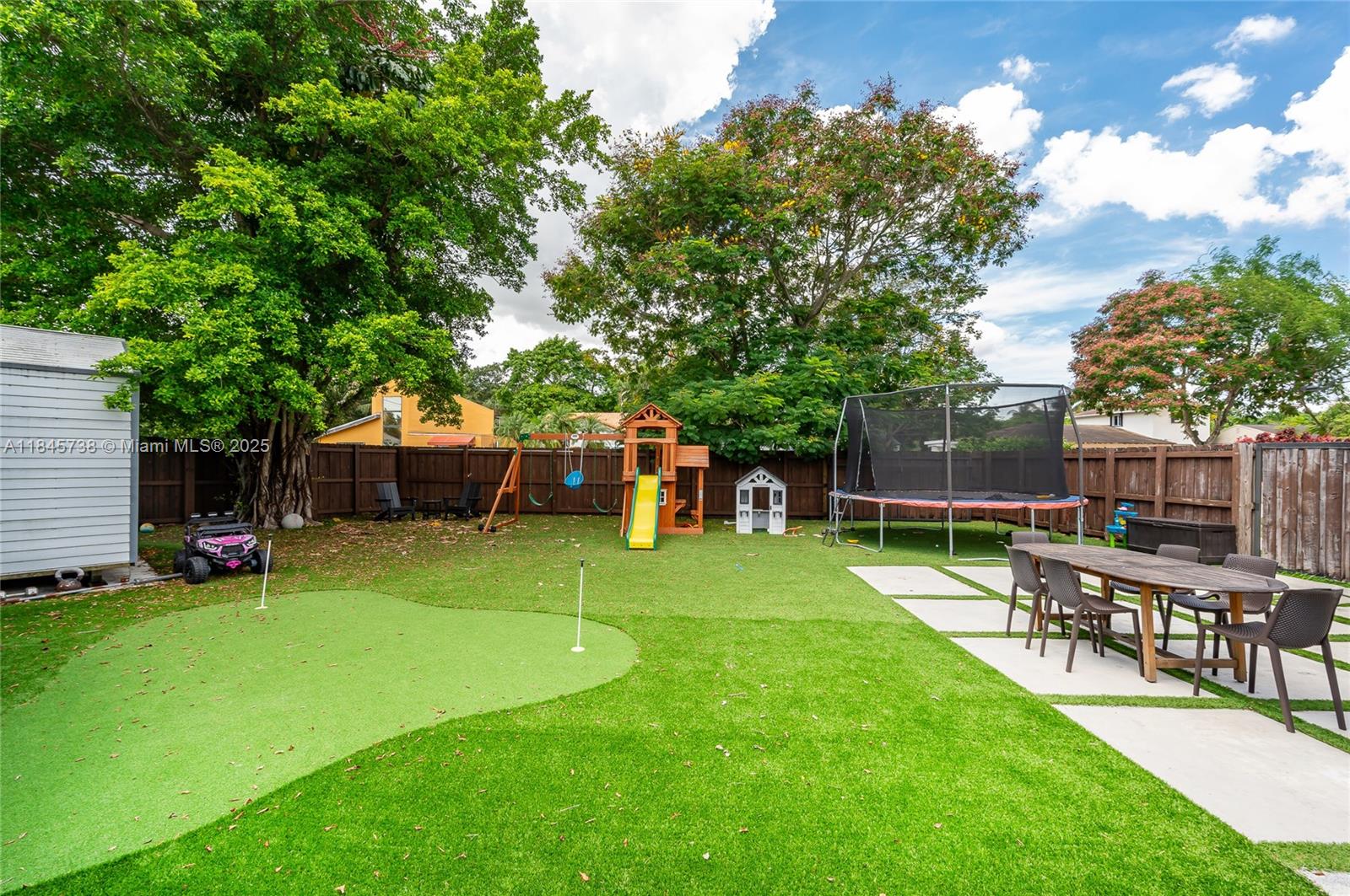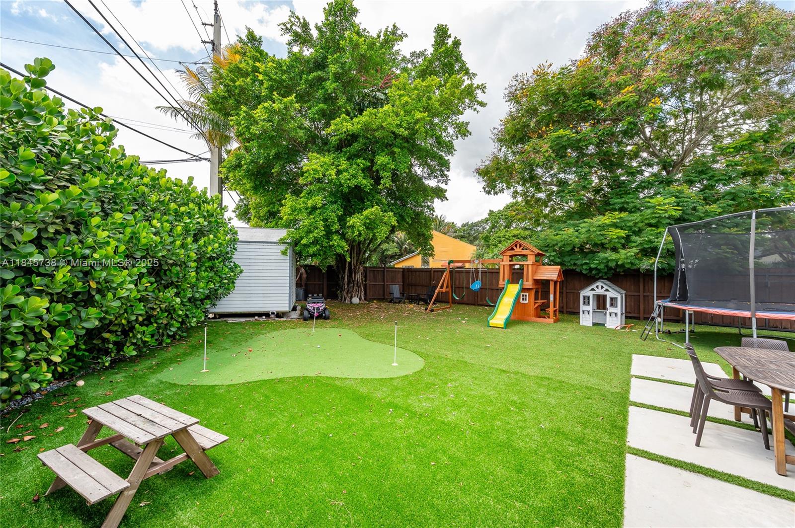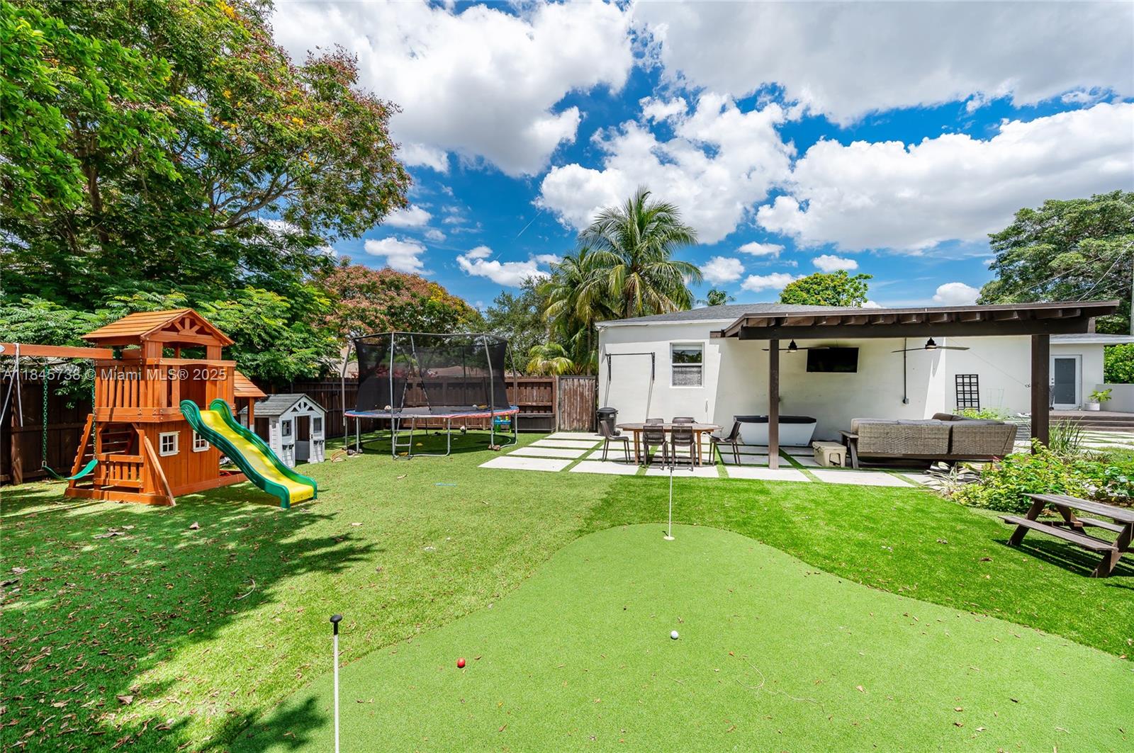 Actual Living Sqft is Larger than Tax Roll: 1587sqft! Welcome to this stunning, move-in ready home perfectly situated near Coral Gables and South Miami with easy access to major highways. Sitting on a spacious 9,000 sq ft corner lot, this property features a FULLY PERMITTED ADDITION in 2020, impact doors and windows, and a newer roof installed in 2020 for peace of mind. Inside, you'll find a custom kitchen with quartz countertops, a built-in breakfast nook, and a large pantry. Renovated bathrooms, a dedicated laundry room, and thoughtfully designed built-ins add both function and style. Enjoy indoor-outdoor living with beautifully landscaped privacy trees, a pergola (2022), putting green, and low-maintenance artificial turf completed in 2024.