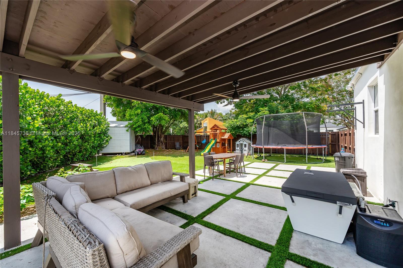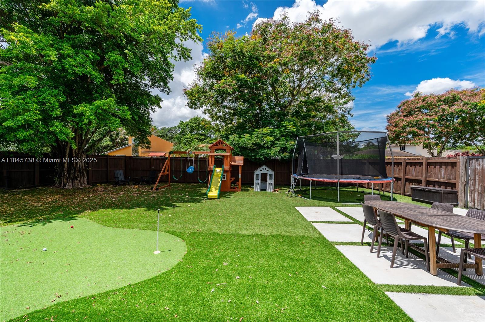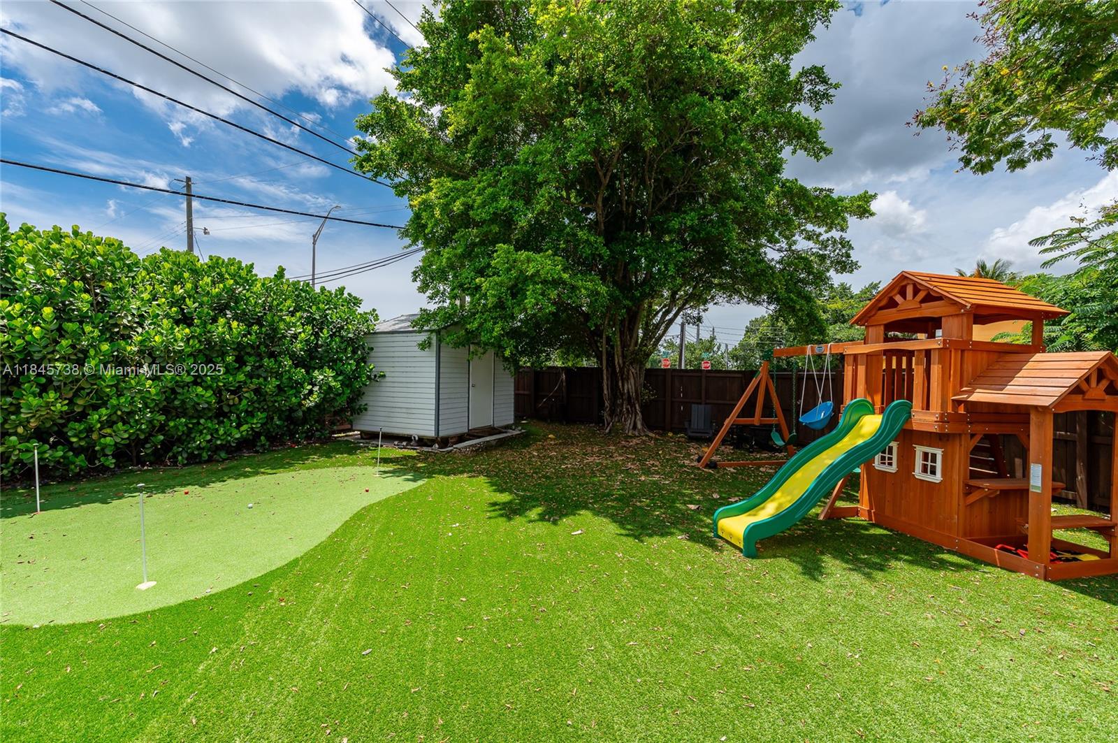 Actual Living Sqft is Larger than Tax Roll: 1587sqft! Welcome to this stunning, move-in ready home perfectly situated near Coral Gables and South Miami with easy access to major highways. Sitting on a spacious 9,000 sq ft corner lot, this property features a FULLY PERMITTED ADDITION in 2020, impact doors and windows, and a newer roof installed in 2020 for peace of mind. Inside, you'll find a custom kitchen with quartz countertops, a built-in breakfast nook, and a large pantry. Renovated bathrooms, a dedicated laundry room, and thoughtfully designed built-ins add both function and style. Enjoy indoor-outdoor living with beautifully landscaped privacy trees, a pergola (2022), putting green, and low-maintenance artificial turf completed in 2024.