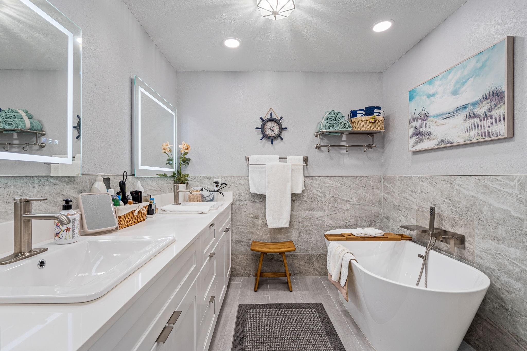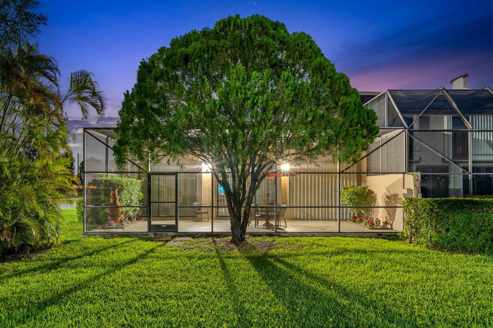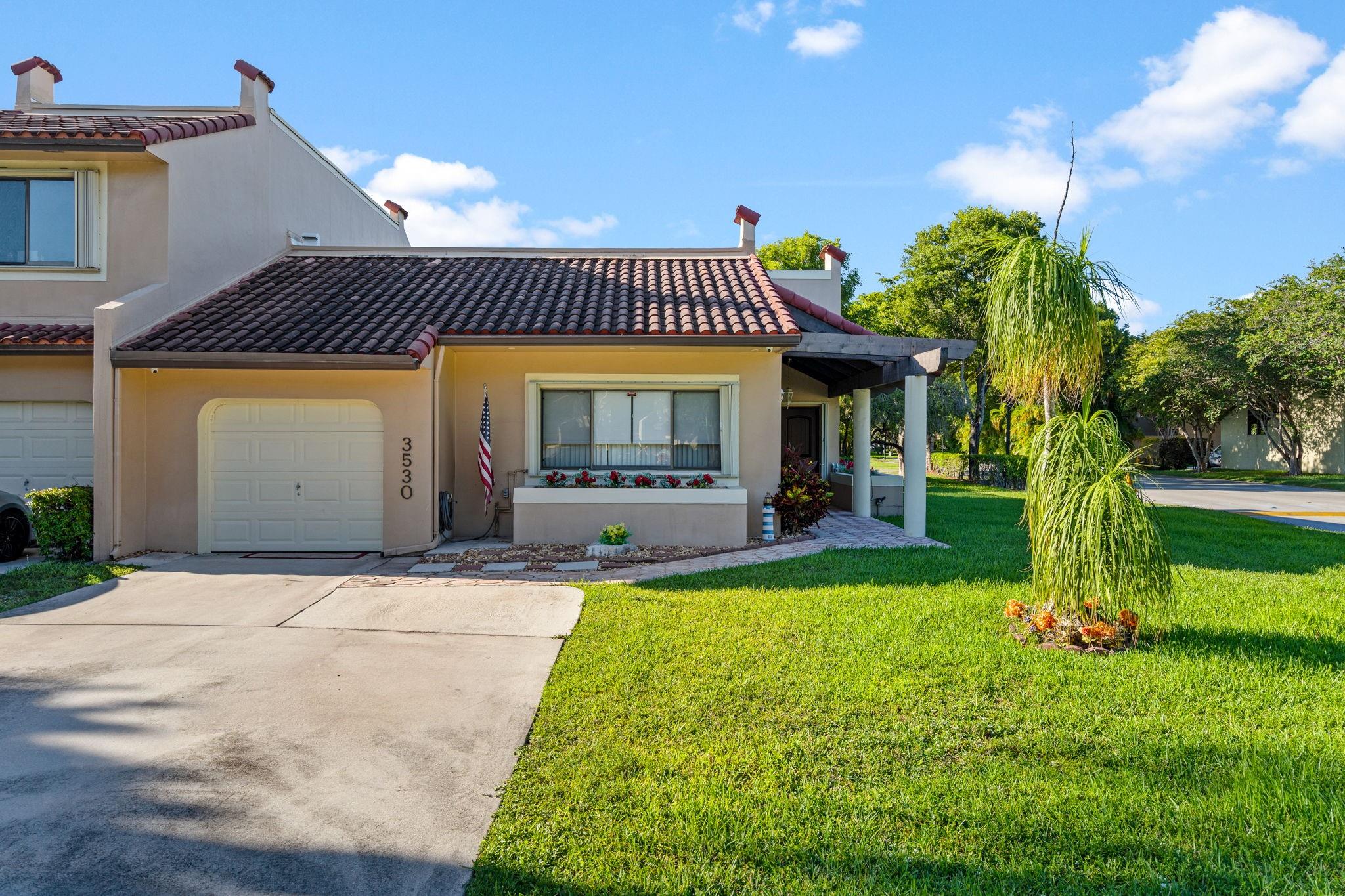 ONE STORY! CORNER! Golf & Water-views! Beautifully maintained 3-bed, 2 Bath LED exterior lighting! No Expense spared! Vaulted ceilings, Updated kitchen, Bath remodel, tiled floors, CCTV Cameras. Breathtaking views every room, large green space in backyard. Spacious living & dining filled w/natural light. Floored & lighted attic w/easy step-up ladder for extra storage, custom garage cabinets & custom garage floor finish. Storm ready, full accordion shutters, Impact Door, Impact Garage Door. AC 2024. Steps to clubhouse, 18-hole golf, restaurant on lake, tennis, basketball, pool, & jogging path. On-site management, 24-hour sec. guard entry. HOA INCLUDES Exterior & Roof Ins. Water, HD Cable, Internet, Driveway, Exterior paint, Trash, Landscaping, & common areas. Some pics photoshopped