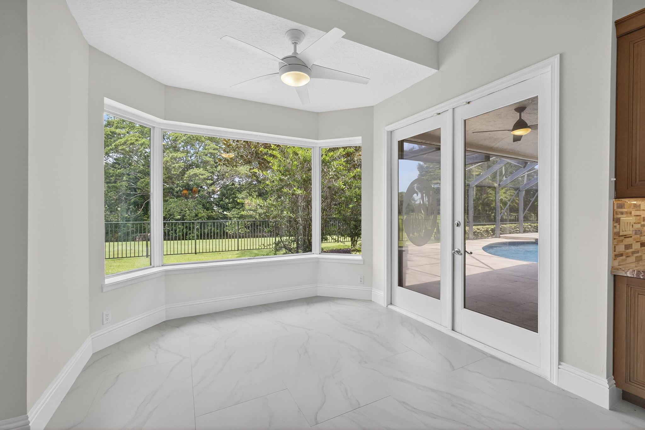 Welcome to this beautifully upgraded and impeccably maintained home in the heart of Wellington, with low HOA fees, and top-tier features throughout. Just a few miles from WEF and Global Dressage, this meticulously maintained home boasts a durable metal roof (installed in 2016), a brand-new 2024 AC unit, vent system, and air handler for the master suite & office, plus a second AC unit with a 2024 air handler and 2019 outside unit. Enjoy peace of mind with full hurricane protection including impact windows on the front & accordion shutters on the back, 2 hurricane break-out panels on the screen-enclosed pool patio, and a whole-house automatic Generac generator powered by a 500-gallon underground propane tank,