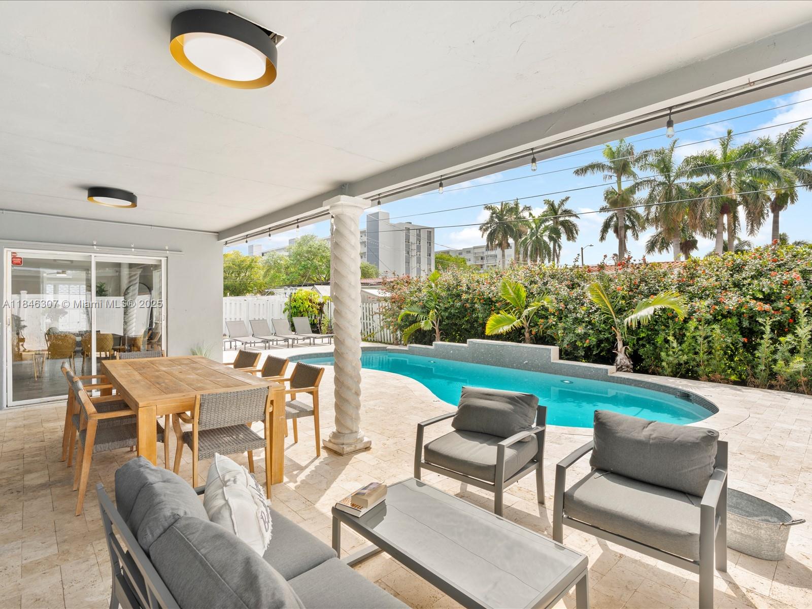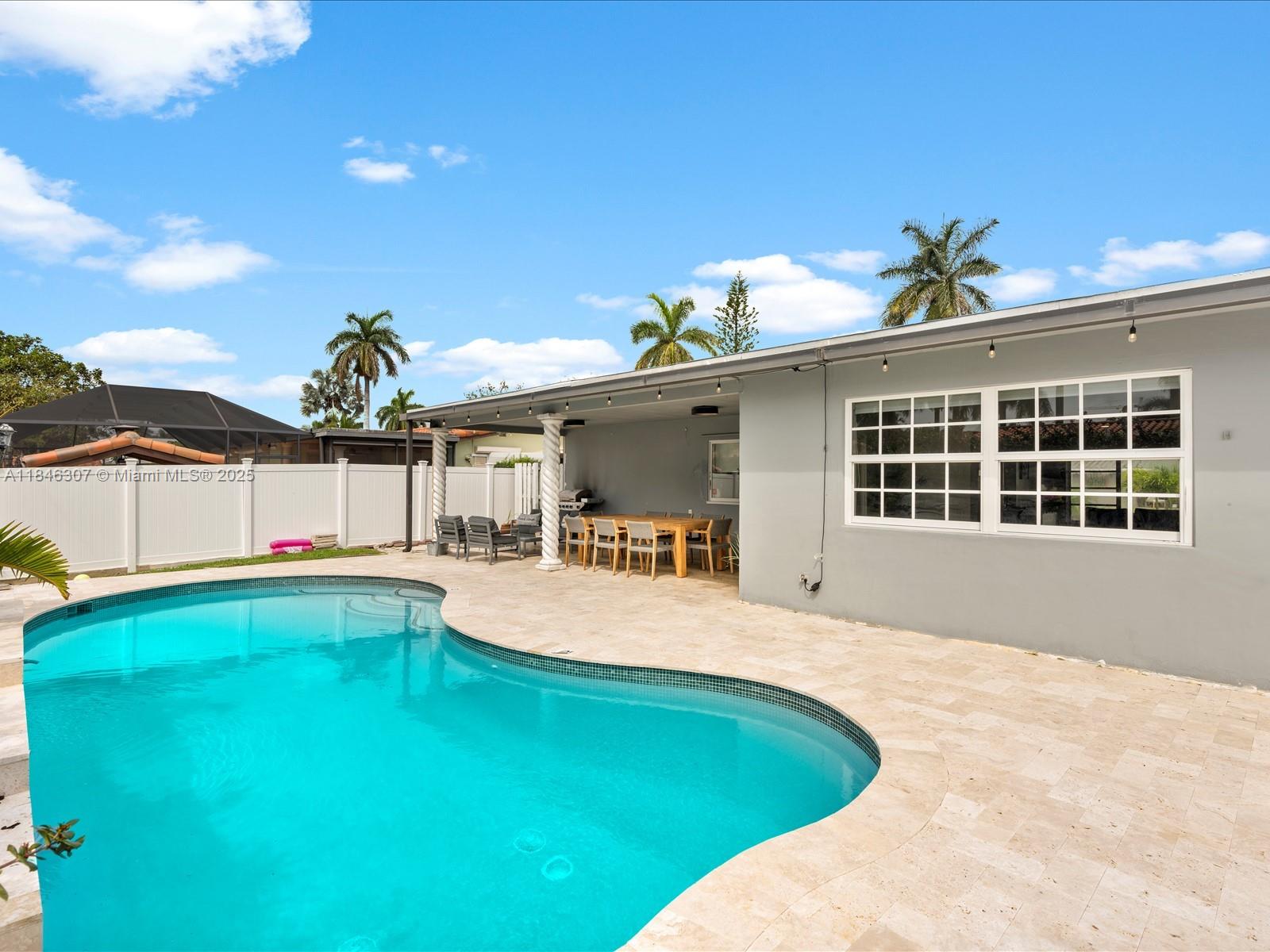 Experience comfortable living in this 4-bedroom, 2-bathroom home in Hallandale Beach, featuring a heated pool ideal for year-round use. The stylish kitchen is equipped with stainless steel appliances, complemented by updated flooring and recessed lighting throughout, creating a welcoming and modern ambiance. Ideally situated near stunning beaches, shopping destinations, places of worship, Gulfstream Park, and Aventura Mall, this home offers the perfect mix of convenience and lifestyle. Property is currently rented month to month for $4,900.
