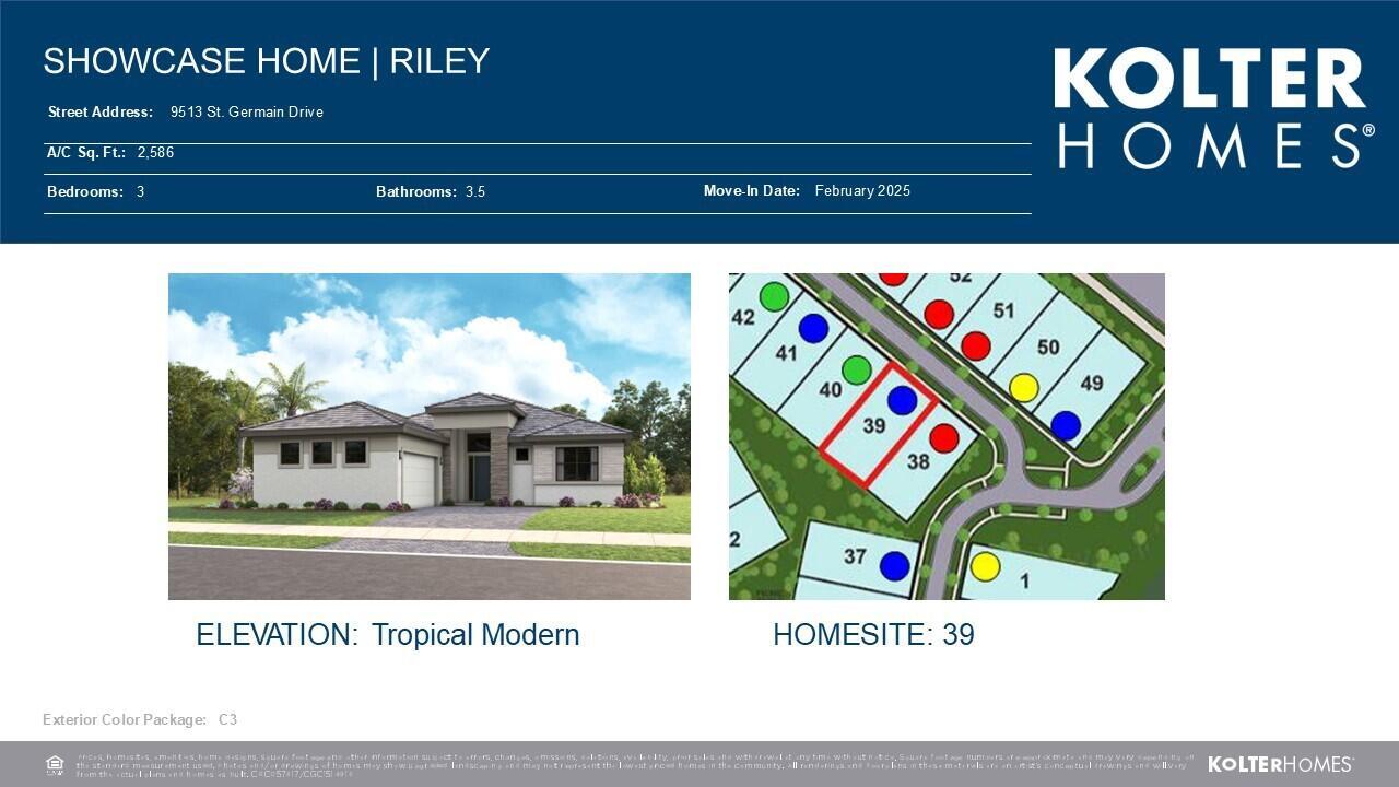 ***New Construction** Move in ready. Welcome to the newly built Riley floorplan by Kolter Homes, located in the gated community of L'Ambiance at Avenir. This spacious and elegantly designed home features 3 Bedrooms, 3.5 Bathrooms, a Flex Room, Great Room, Dining Room, Covered Lanai, and a 2-Car garage. Ideally positioned near the neighborhood entrance, mail kiosk, and the future Great Egret Clubhouse, this home offers both convenience and luxury.A striking 16' wide by 10' tall sliding glass door opens the Great Room to the lanai, creating a seamless indoor-outdoor living experience.