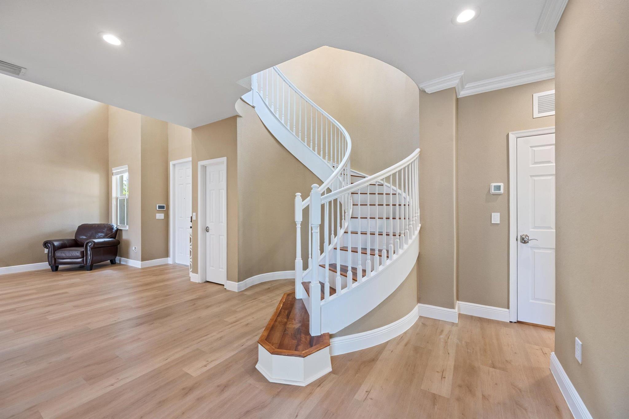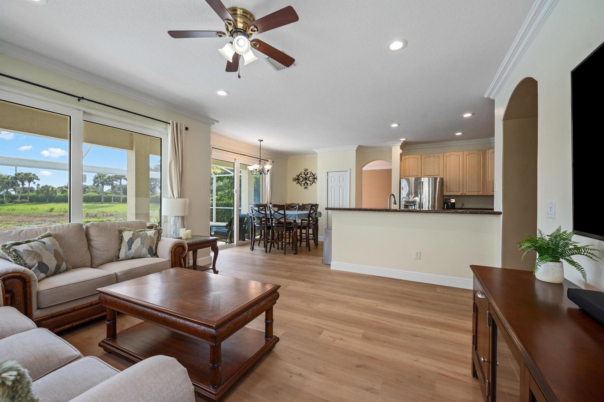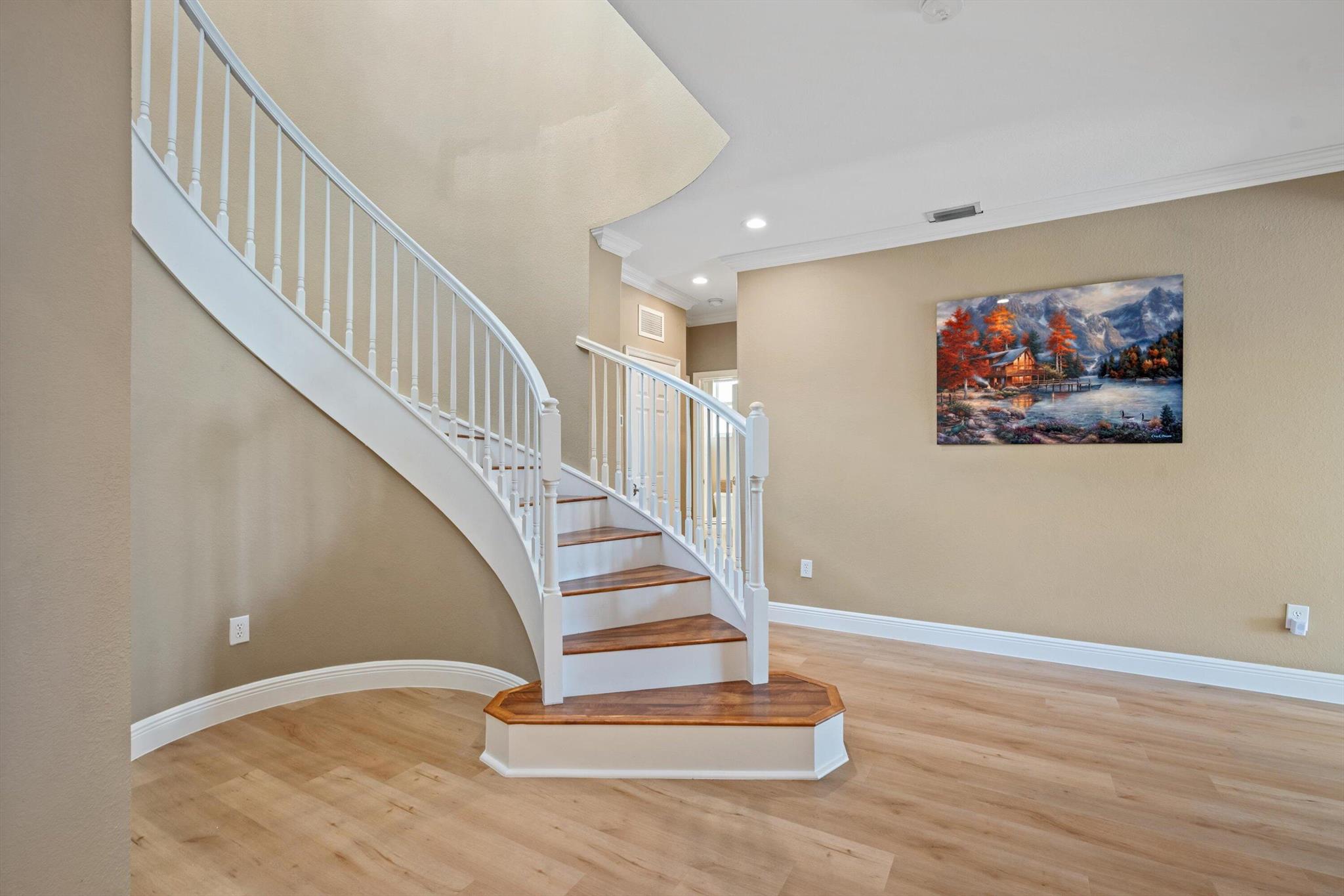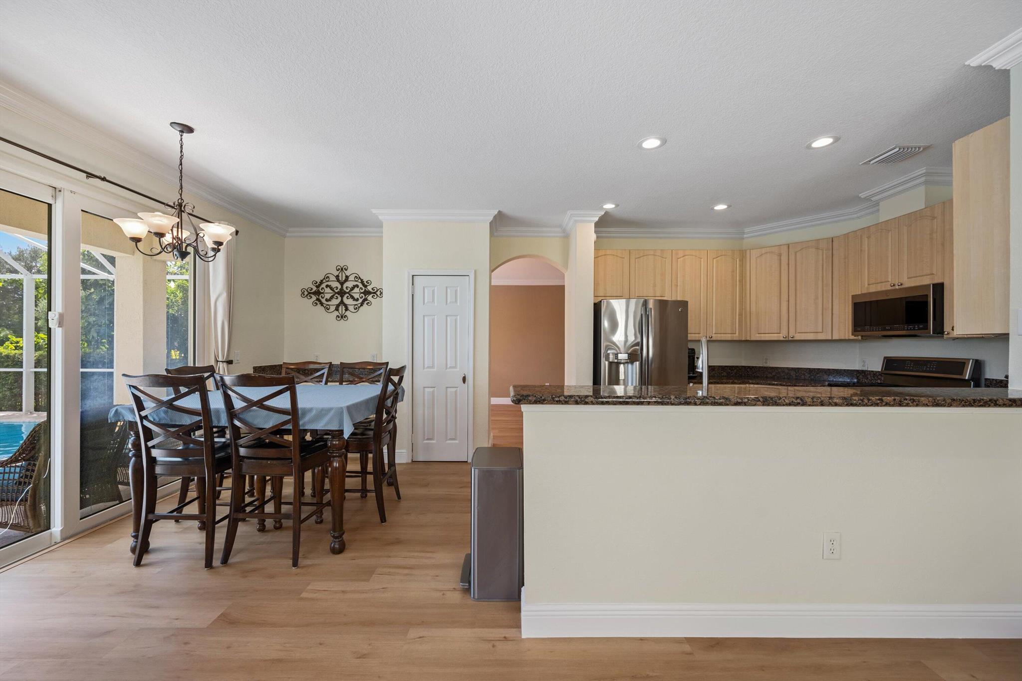 Welcome to a beautifully maintained home that perfectly blends modern upgrades with everyday comfort. From the moment you step inside, you'll notice the care and attention to detail--from the brand new luxury vinyl flooring downstairs to the newly installed laminate upstairs. The home is filled with natural light, enhanced by sleek high hat LED lighting throughout and upgraded light switches for added convenience. The updated air conditioning system includes newer units, replaced ductwork, and a UV light purification system, offering peace of mind and year-round comfort. Impact windows upstairs and impact sliding glass doors downstairs provide added security and energy efficiency. The true showstopper is the highly customized saltwater pool, designed with an extra-deep end, sun shelf,