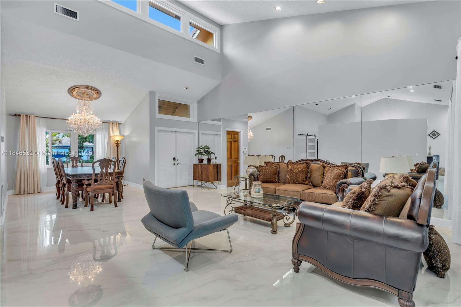 Stunning 4-bed, 2.5-bath ranch-style home in Coral Springs with modern upgrades throughout! Enjoy vaulted ceilings, oversized porcelain tile floors in the living areas, and a freshly painted interior. The spacious kitchen boasts stainless steel appliances and plenty of cabinet space with an open concept to the living room. The primary suite features tray ceilings and sliding doors that lead out to the pool area. A/C (2019) two thermostat dual zone unit. Water heater 2023. Impact windows and doors offer peace of mind, while the oversized paved driveway adds convenience for plenty of parking. Step outside to your private backyard oasis with a sparkling screened in pool—perfect for entertaining which includes specialty lighting. No HOA, great location, and move-in ready! Don't miss this gem!