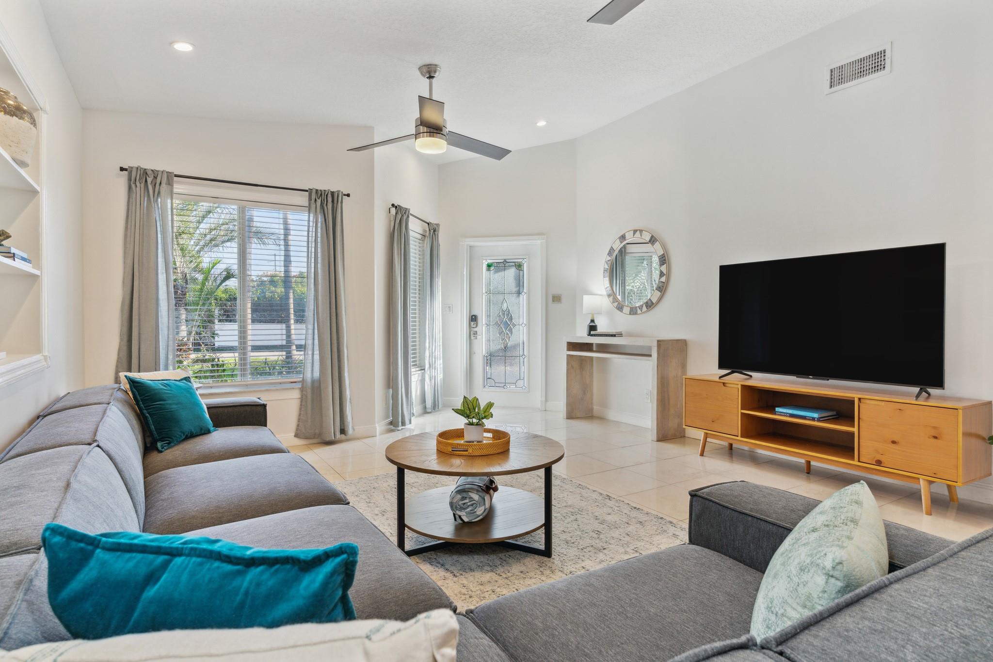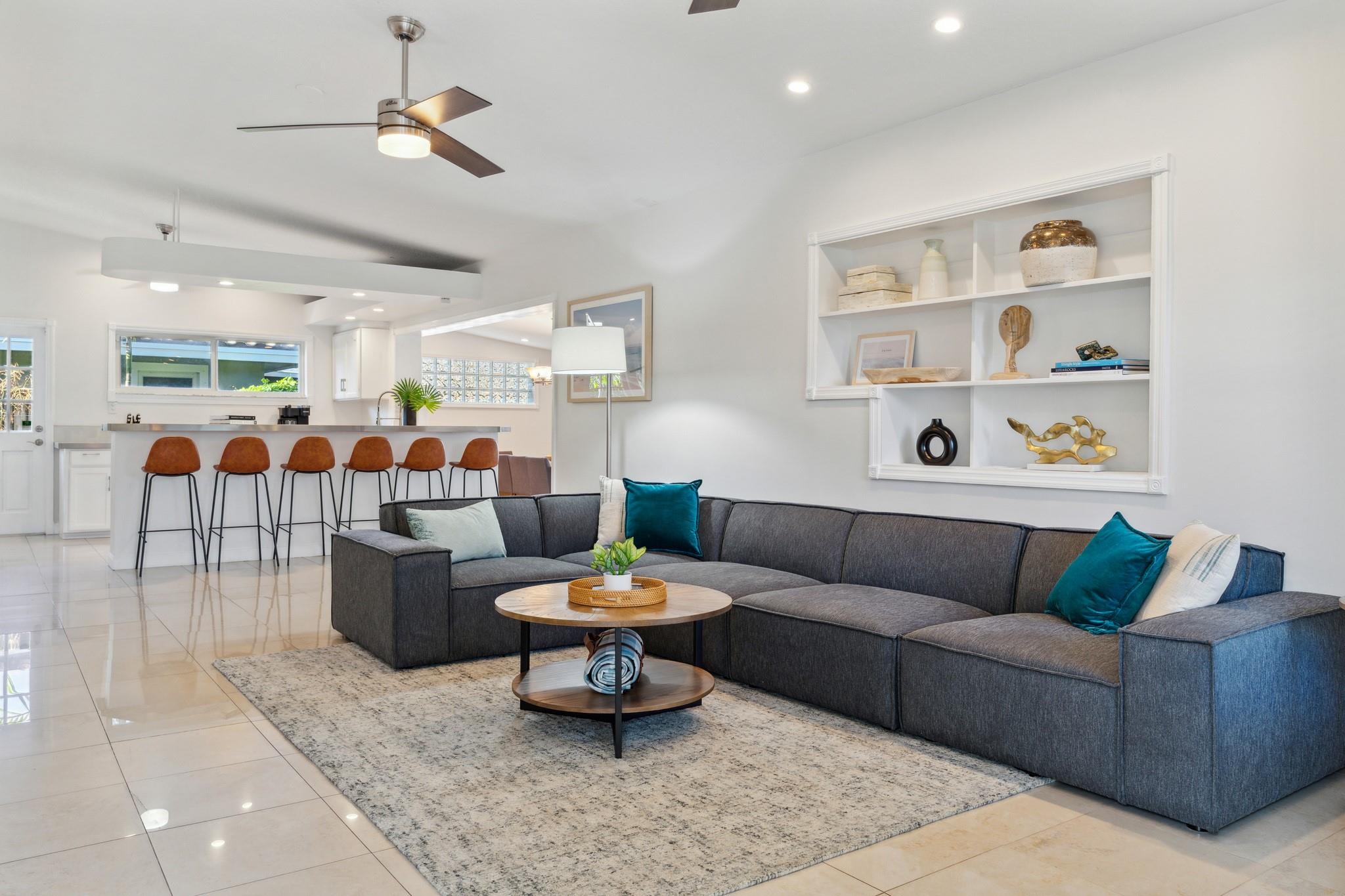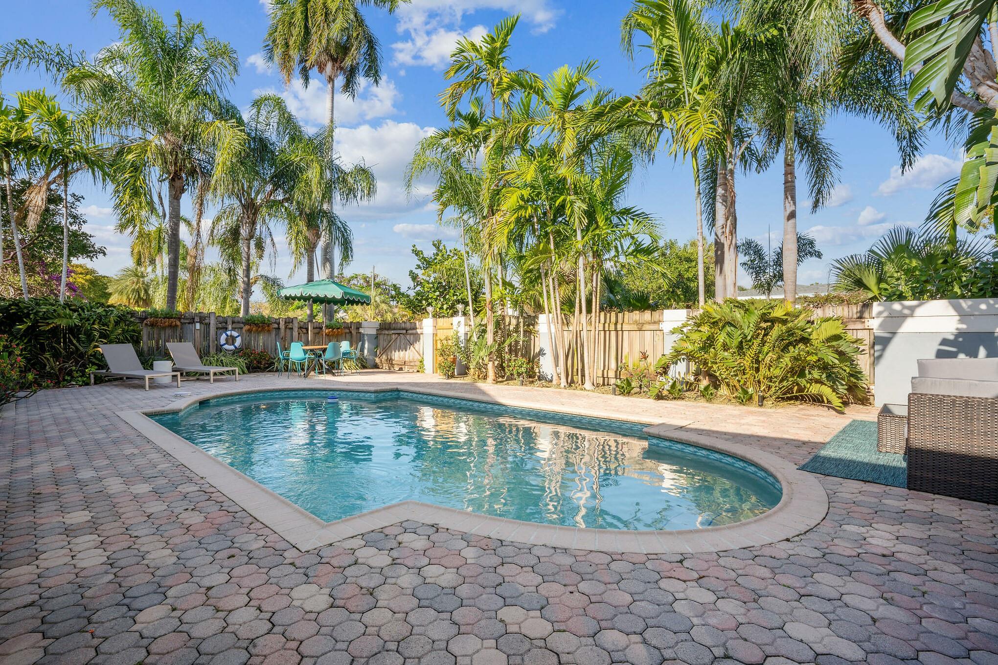 South Florida living in the stunning and spacious one-of-a-kind showplace with private pool located in East Pompano’s Santamaria Harbor. Enjoy the peace of mind of impact windows and shutters on doors for added storm protection. Design details in this open-concept home include porcelain tile flooring, metal roof, 3-zone central air, 2 water heaters, and updated fixtures and finishes throughout. Poolscape is surrounded by lush tropical greenery for maximum privacy. Fabulous kitchen features stainless steel appliances, custom cabinetry, seated counter for casual dining. Primary suite with en-suite bath and secondary suite with en-suite cabana bath offer maximum convenience. Located near parks and greenspaces, inlets, boat launches and world-class beaches. Designer furnishings negotiable.
