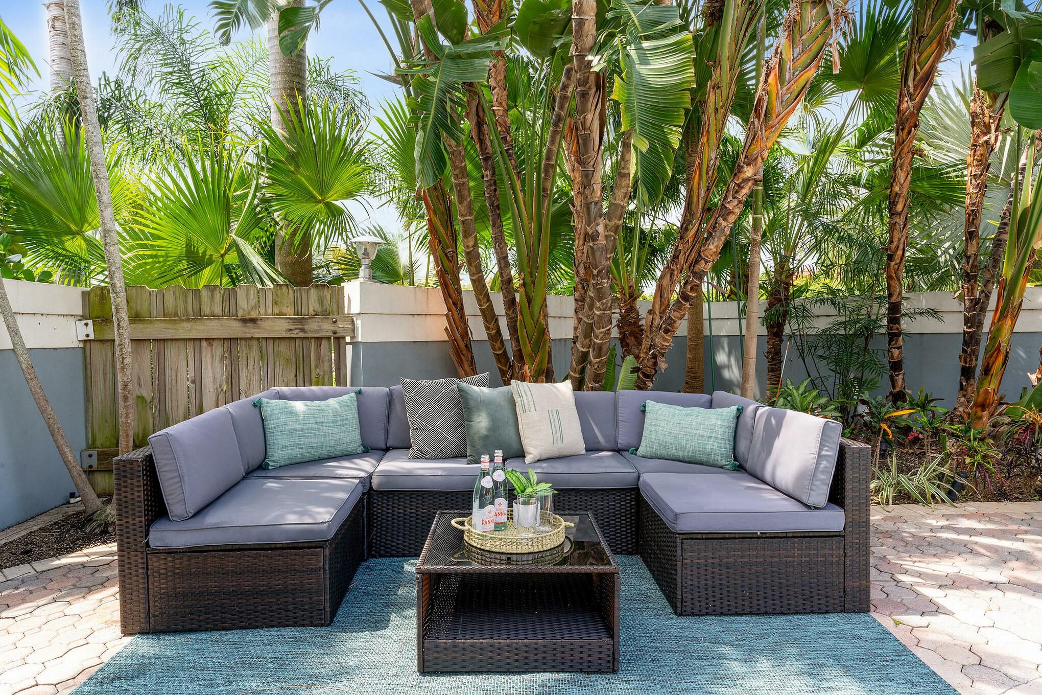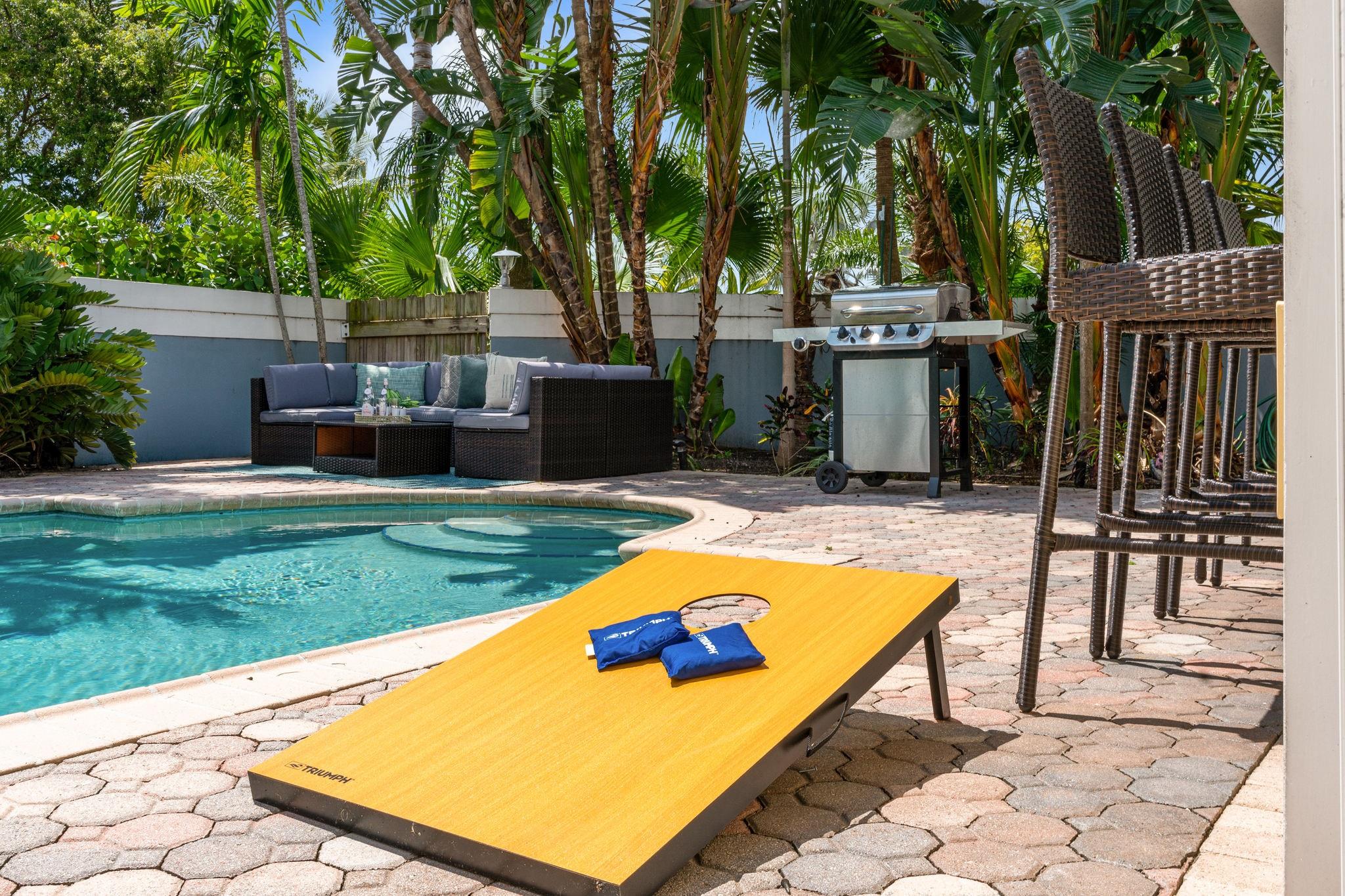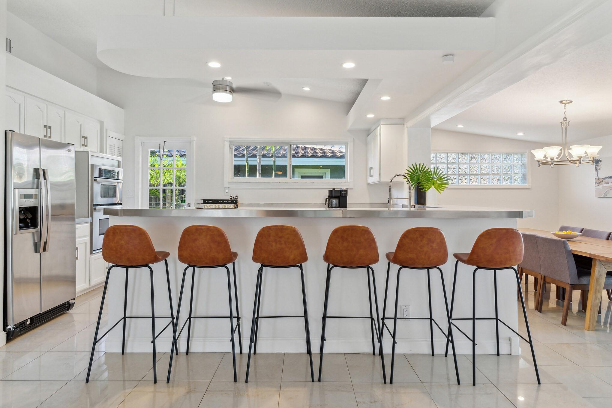 South Florida living in the stunning and spacious one-of-a-kind showplace with private pool located in East Pompano’s Santamaria Harbor. Enjoy the peace of mind of impact windows and shutters on doors for added storm protection. Design details in this open-concept home include porcelain tile flooring, metal roof, 3-zone central air, 2 water heaters, and updated fixtures and finishes throughout. Poolscape is surrounded by lush tropical greenery for maximum privacy. Fabulous kitchen features stainless steel appliances, custom cabinetry, seated counter for casual dining. Primary suite with en-suite bath and secondary suite with en-suite cabana bath offer maximum convenience. Located near parks and greenspaces, inlets, boat launches and world-class beaches. Designer furnishings negotiable.