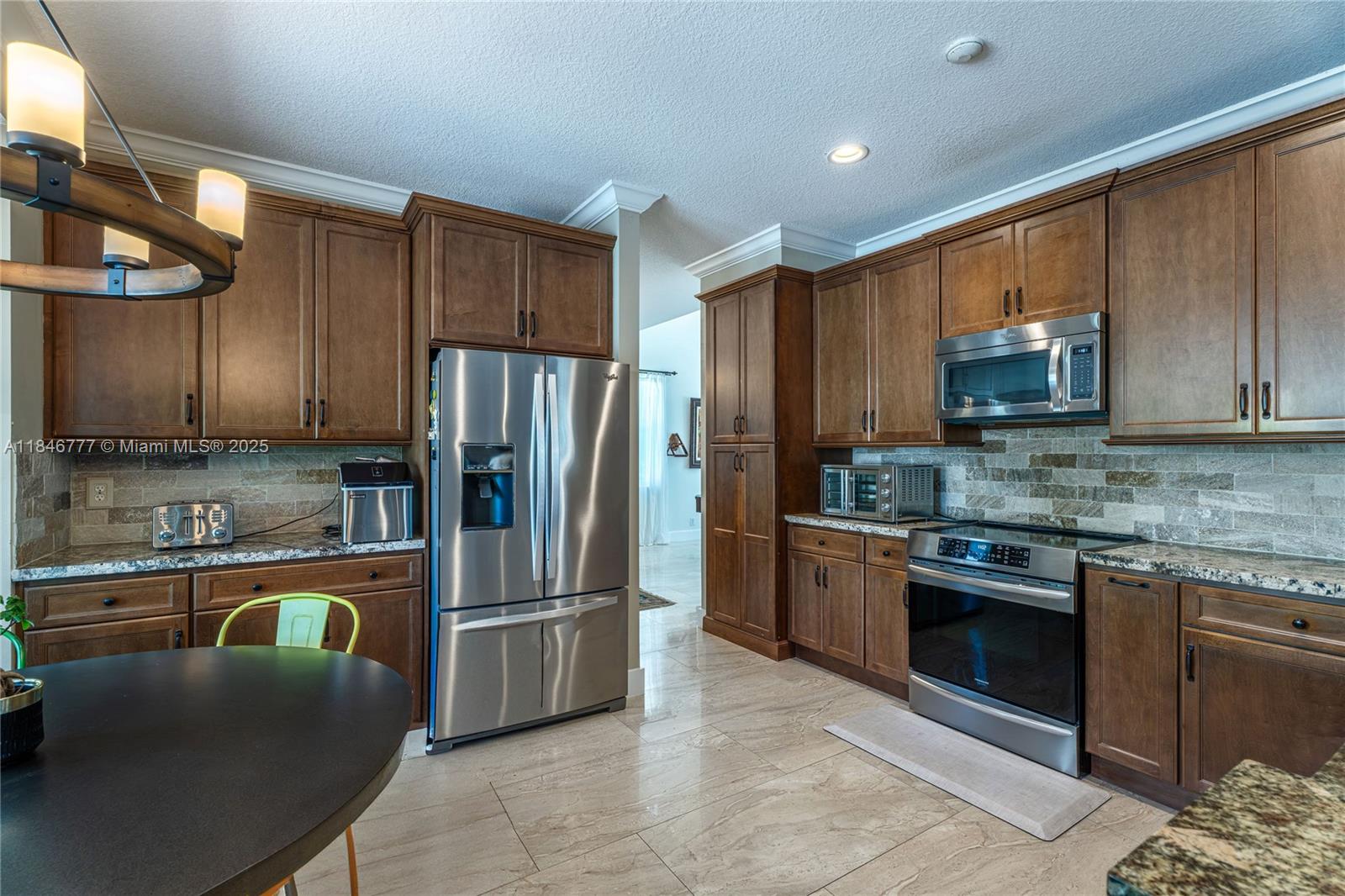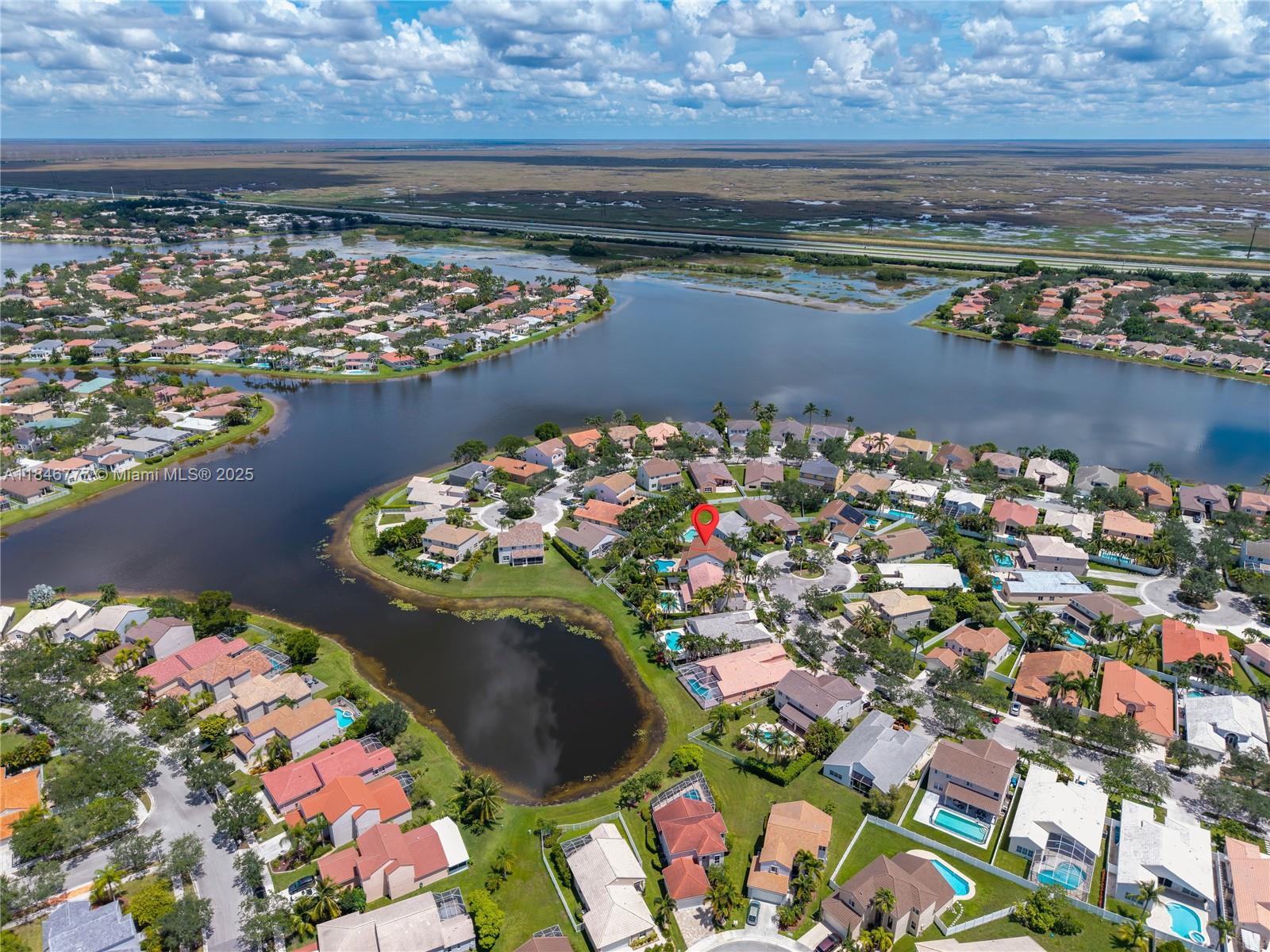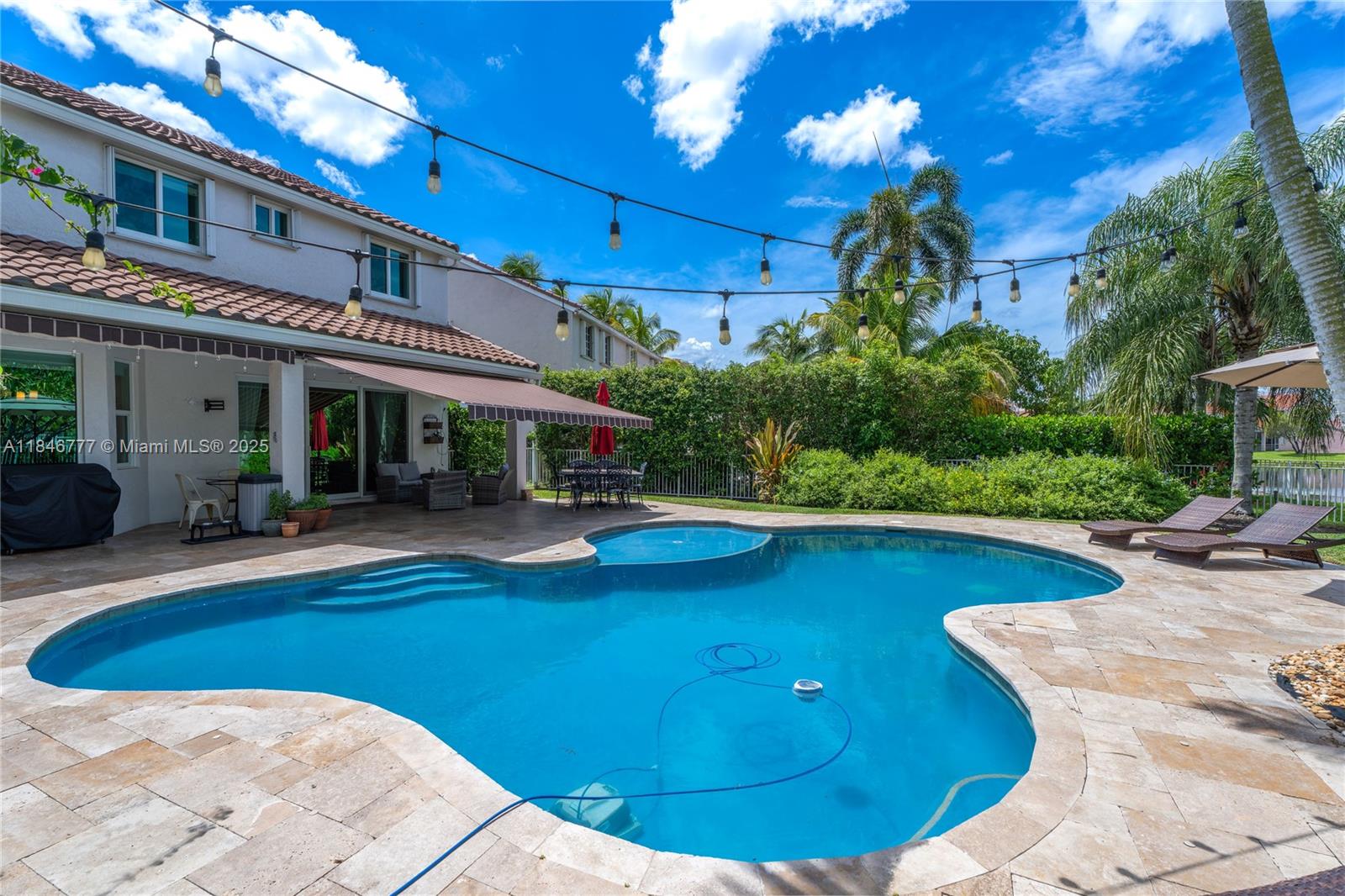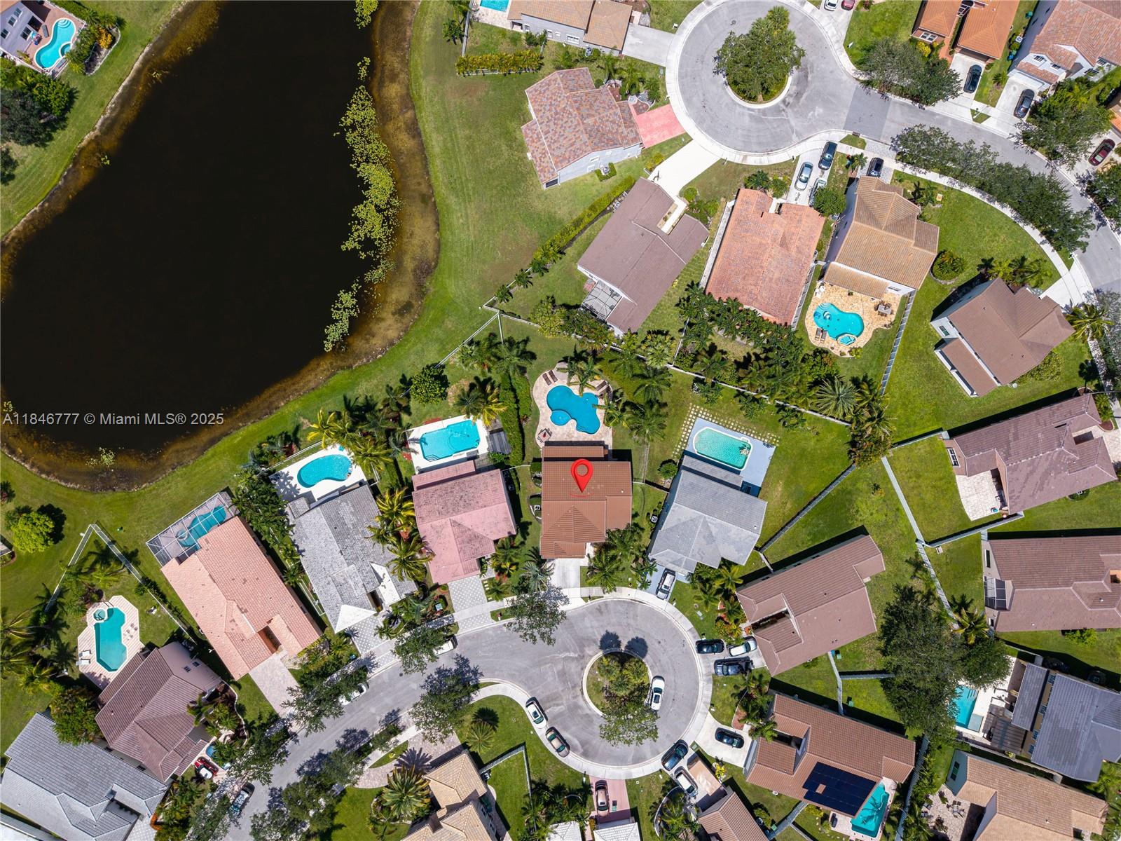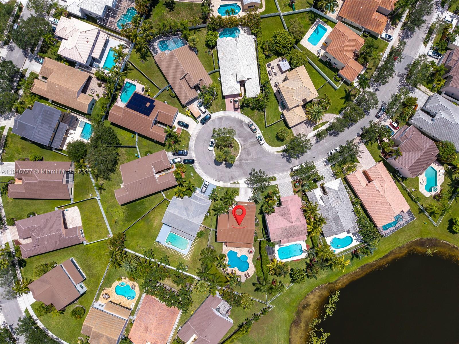 Welcome to your dream home! This beautiful 5-bedroom, 3.5-bath residence offers the perfect elegance and comfort. Enjoy peace of mind with a NEW ROOF and NEW IMPACT WINDOWS AND DOORS throughout. The spacious layout is ideal for both everyday living. This home features a gourmet kitchen with wood cabinets and stainless steal appliances. Resort-style POOL, PRIVATE and fully FENCED BACKYARD, covered patio, and child safety pool fence—perfect for entertaining. Serene lake view with no water access. Quiet cul-de-sac in a family-oriented community, The Falls. Gated community offers pool, playground and a basketball court. Roof 2022, Impact windows 2022, interior paint 2023, exterior paint 2022, AC 2023 condenser unit (outdoor)/2009 Evaporator Coil/Air Handler (indoor). All bedrooms are upstairs.
