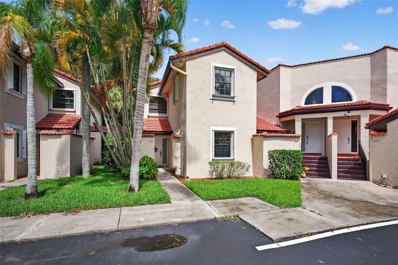Renovated 3 bed, 3 bath fee simple townhome in gated community Lakeview Courts @ Jacaranda. Bright, open layout with porcelain tile on main floor. One bedroom with full bath downstairs. Updated kitchen features white cabinetry, quartz countertops/backsplash, and pantry. Upstairs has two bedrooms with ensuite baths and laminate flooring. All bathrooms are fully remodeled. AC unit installed (Dec. 2021). Newer washer/dryer. Neutral paint colors. Impeccably maintained. Accordion shutters. Enjoy the privacy of a large greenspace behind the home w/ no rear neighbors. Community pool. HOA fee includes roof. 2 assigned parking spaces.