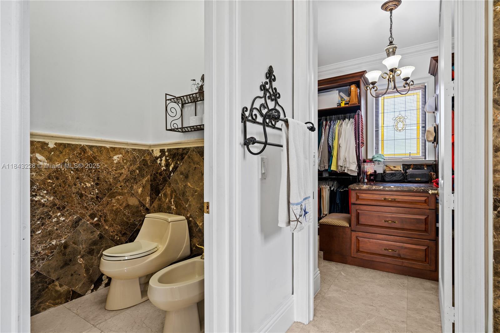 • Característica Interior:Bidet, BuiltInFeatures, BedroomOnMainLevel, ClosetCabinetry, DiningArea, SeparateFormalDiningRoom, DualSinks, EntranceFoyer, FirstFloorEntry, Fireplace, HighCeilings, JettedTub, SeparateShower, Bar, WalkInClosets