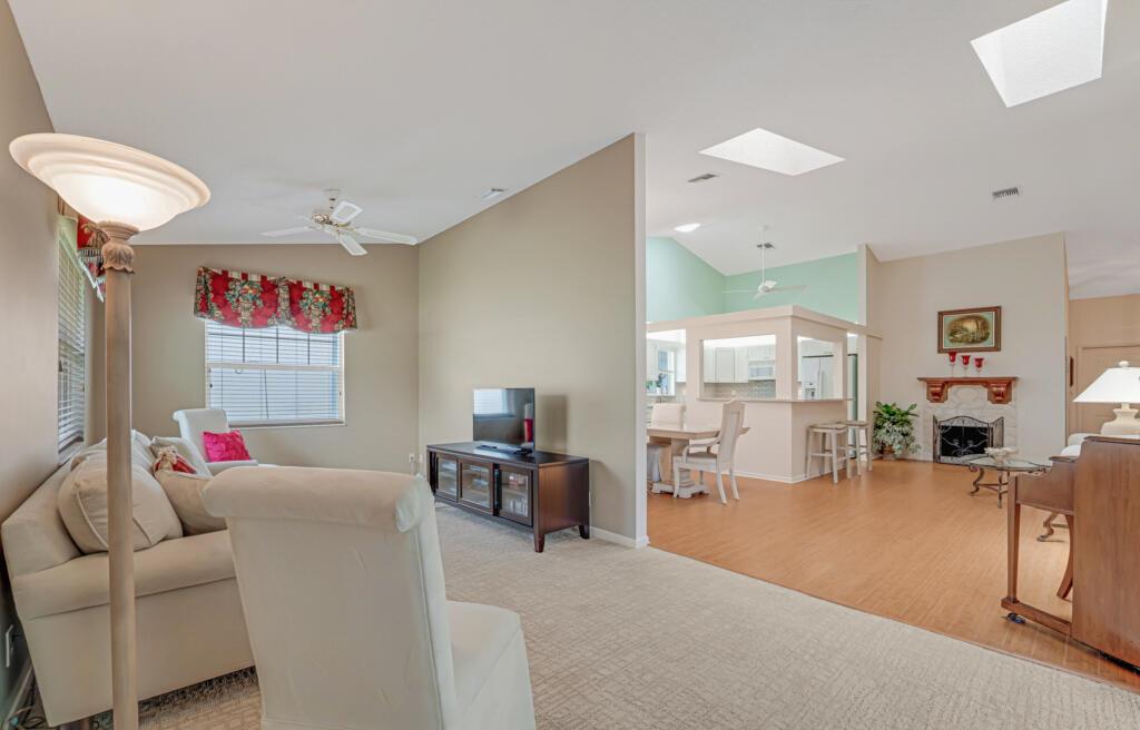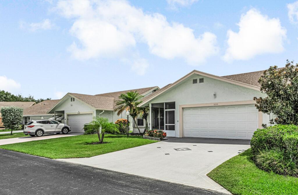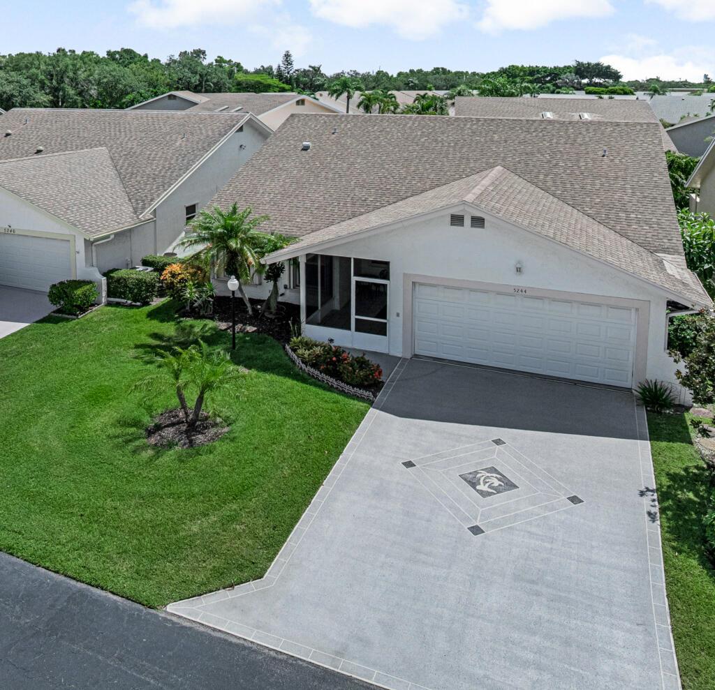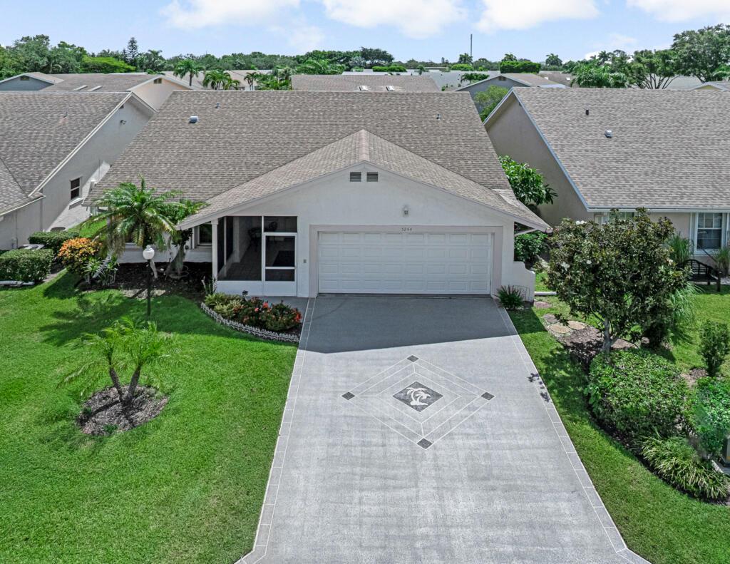 NO MEMBERSHIP TO PLAY GOLF!l lovely, well-maintained 2 BR, 2 full bath , 2 car garage home in the very desirable gated community of Cypress Lakes. Filled with natural light through energy-efficient double-paned windows and sky lights, this home also offers outdoor living with 2 screened patios surrounded by tropical landscaping. Easy-care laminate flooring graces the tastefully updated kitchen, great room, living room and hallways. Note: New AC in 2023, newer washer/dryer, 2017 solar tube replacement, new ROOF in 2005 and accordion shutters. Stroll around the scenic lake, play a morning round of 18 holes, take a refreshing dip in the swimming pool, work out at the fitness center, join a game of pickleball or tennis, or check out the activities at the clubhouse. Welcome home