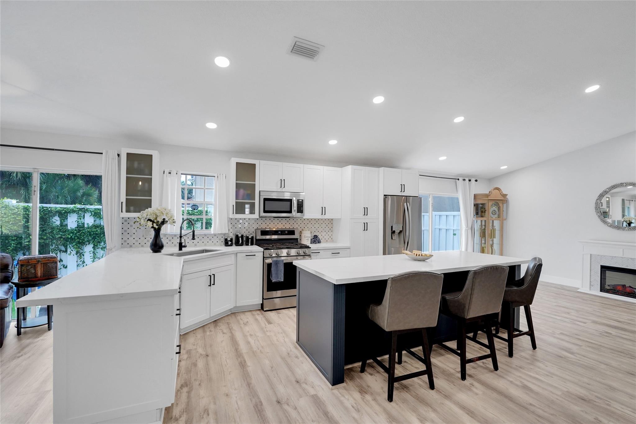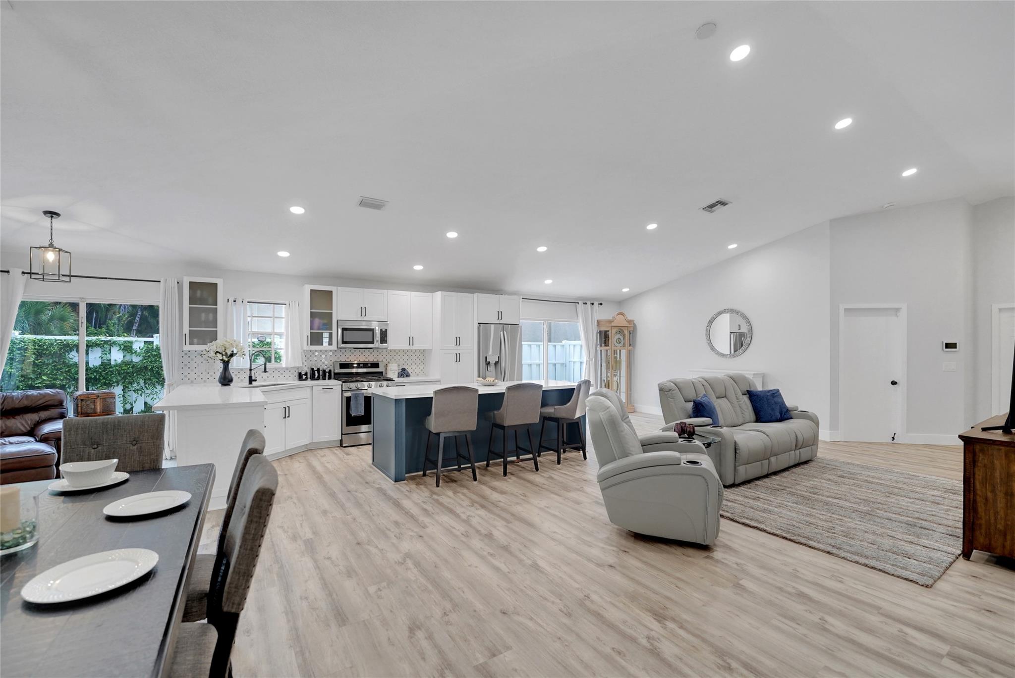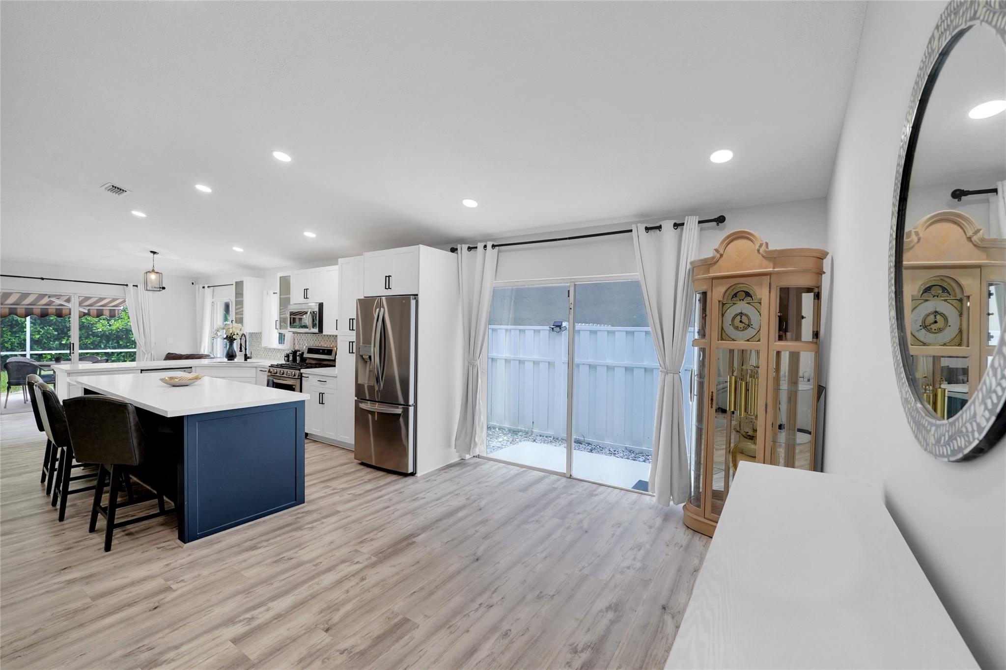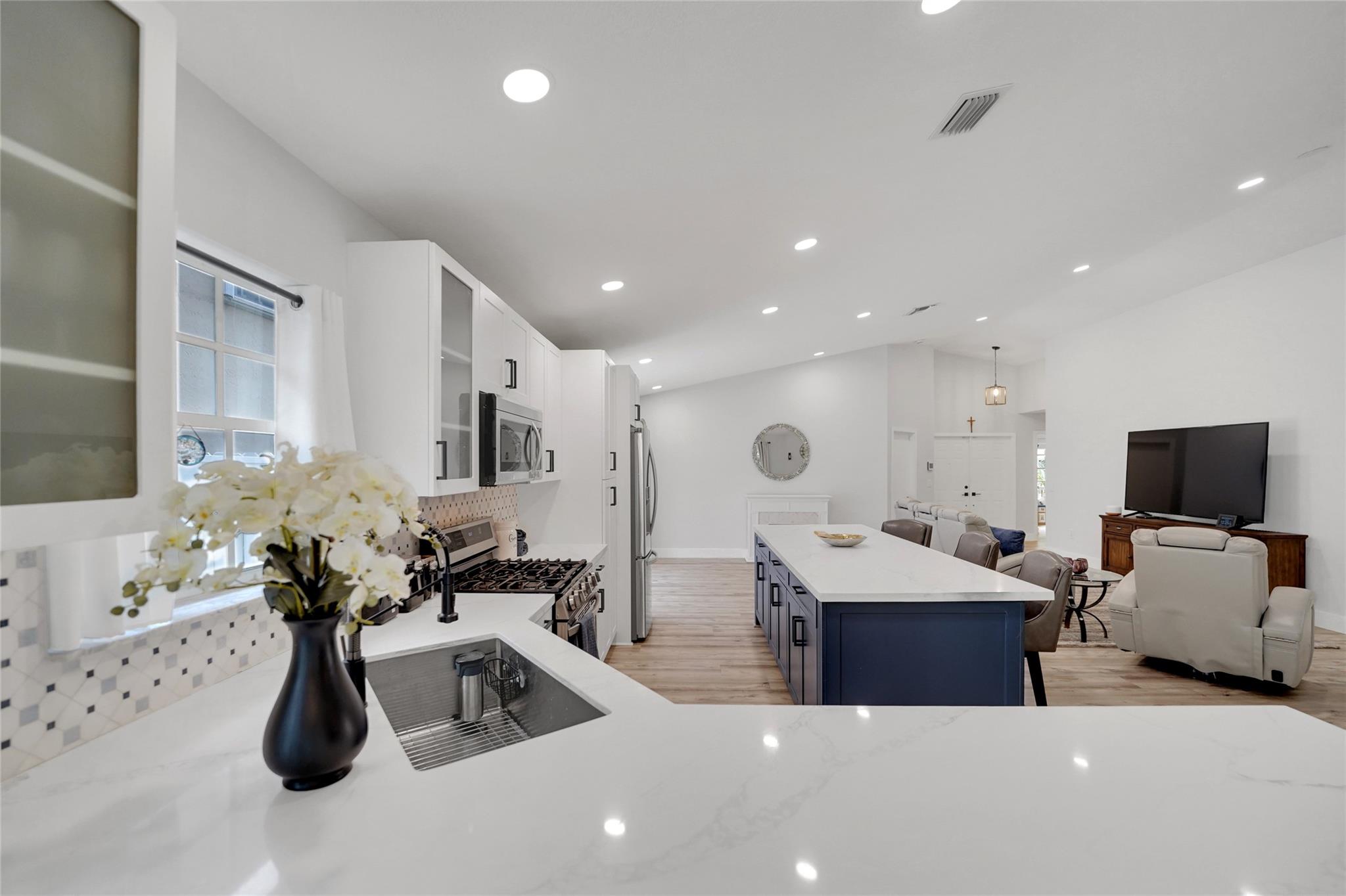 Welcome to Sawgrass Plantation! Step into this beautifully redesigned and spacious one-story home featuring 3 bedrooms and 2.5 baths in a highly desirable community. This tastefully updated residence offers a new roof, vaulted ceilings, and open-concept layout with a modern kitchen featuring quartz countertops and stainless steel appliances. Enjoy new wood laminate flooring throughout, gorgeous master bathroom, and extra-large 3rd bedroom that includes a built-in Murphy bed, perfect for guests, a home office, or multi-use space. Step outside to your fully fenced backyard with a screened-in patio and private jacuzzi, ideal spot to relax or entertain. Move-in-ready home has it all—style, flexibility, & peace of mind. Centrally located near Schools, Shopping Centers, Restaurants and Highways.