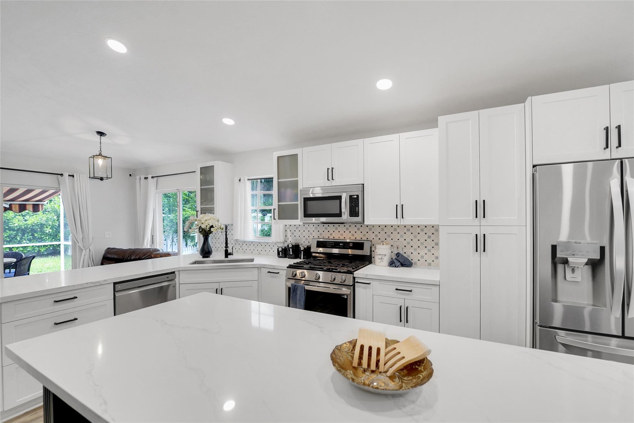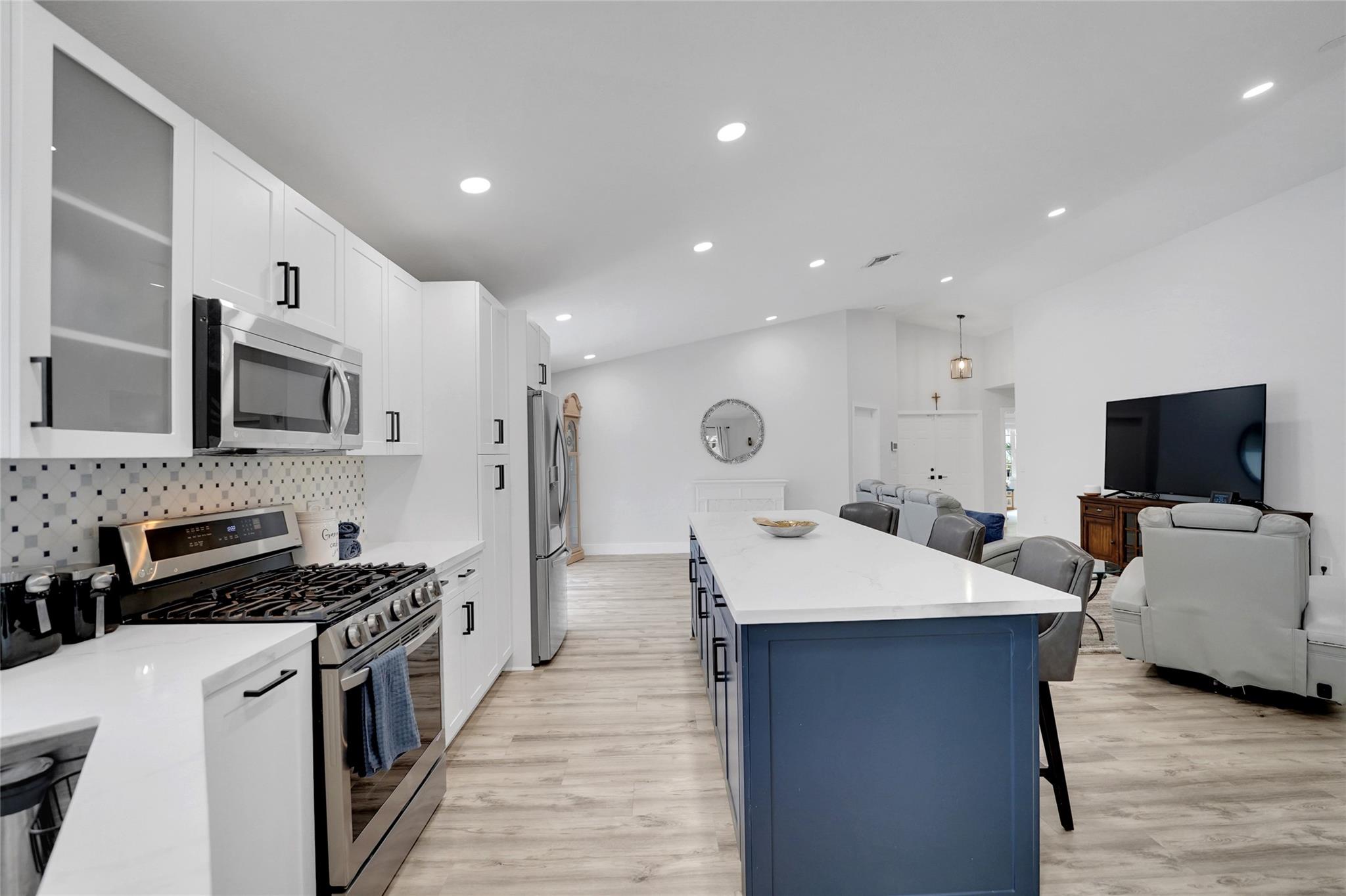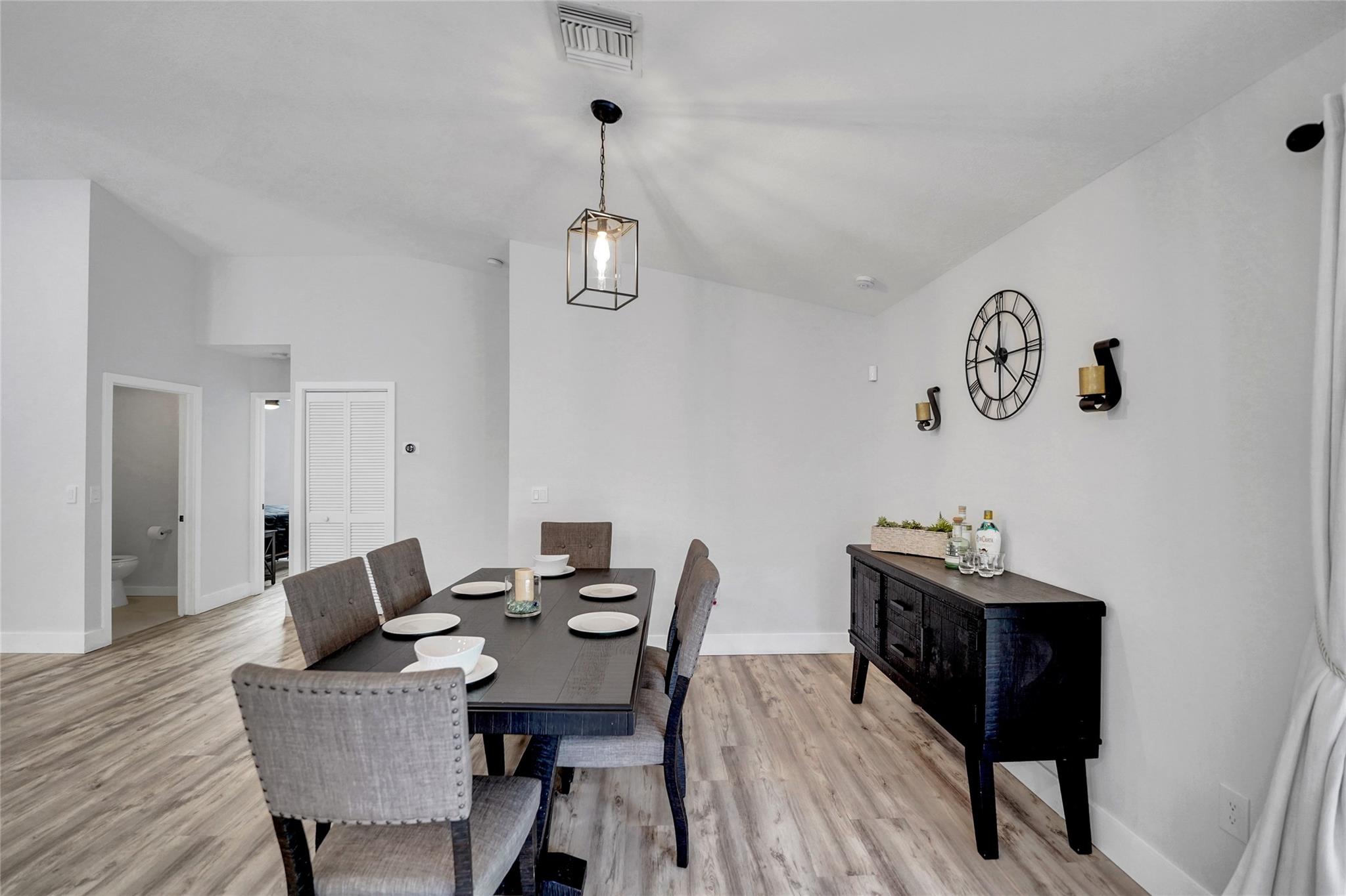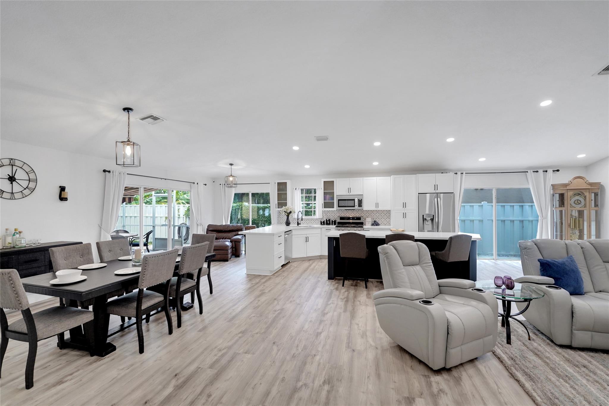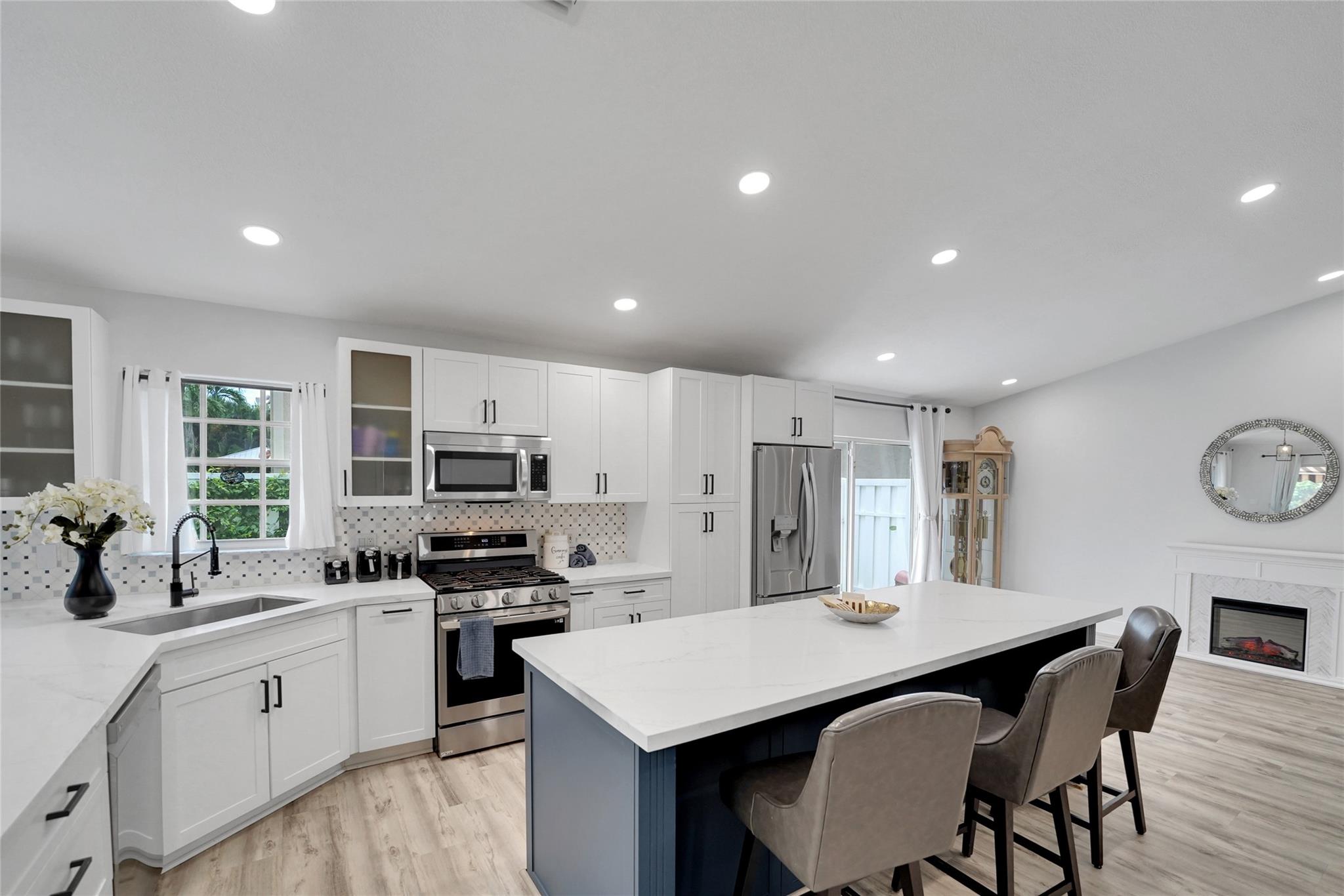 Welcome to Sawgrass Plantation! Step into this beautifully redesigned and spacious one-story home featuring 3 bedrooms and 2.5 baths in a highly desirable community. This tastefully updated residence offers a new roof, vaulted ceilings, and open-concept layout with a modern kitchen featuring quartz countertops and stainless steel appliances. Enjoy new wood laminate flooring throughout, gorgeous master bathroom, and extra-large 3rd bedroom that includes a built-in Murphy bed, perfect for guests, a home office, or multi-use space. Step outside to your fully fenced backyard with a screened-in patio and private jacuzzi, ideal spot to relax or entertain. Move-in-ready home has it all—style, flexibility, & peace of mind. Centrally located near Schools, Shopping Centers, Restaurants and Highways.