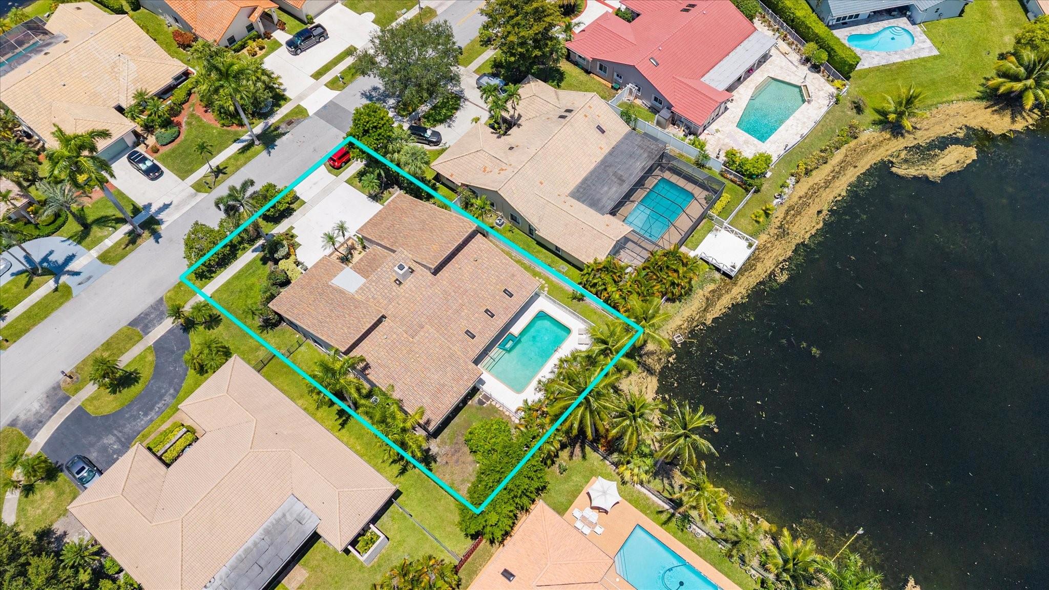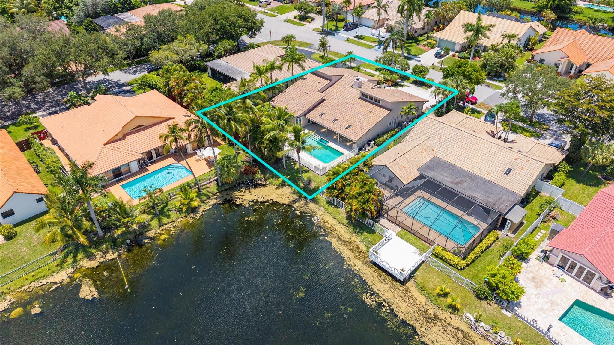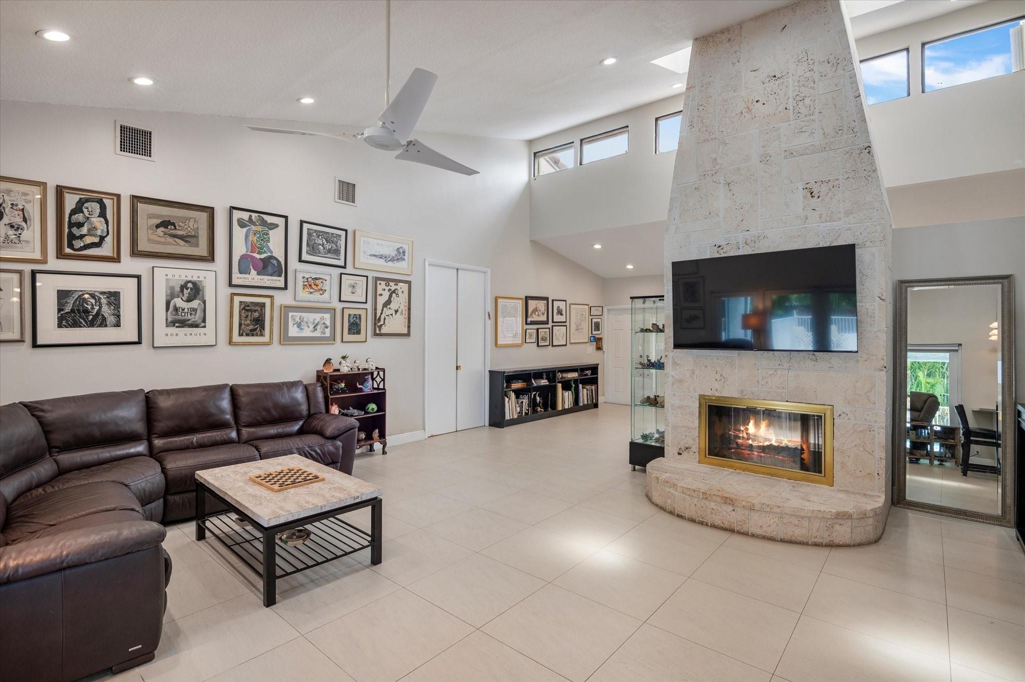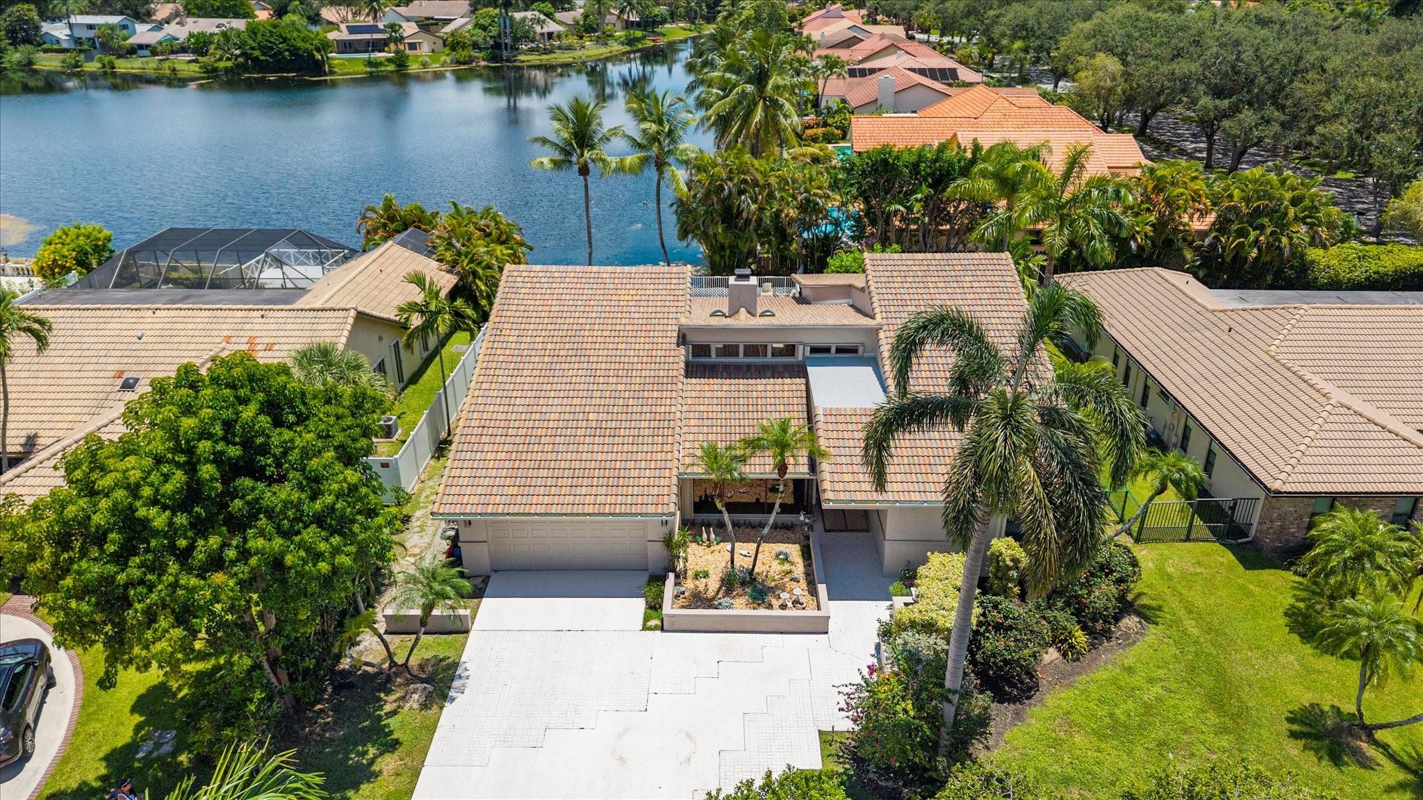 Significant price reduction to sell now on this one-of-a-kind pool/lakefront home-unlike any other in Jacaranda Lakes! Offering 4 bedrooms, 3 baths, & 2,593 sq ft under air, this custom residence showcases beautiful pool & lake views from all rooms across the entire back of the home. Enjoy an airy open layout with vaulted & volume ceilings, skylights & a striking coral rock two-way fireplace (closed). The kitchen impresses with a large island, plus a peninsula w/added seating & storage, double oven & quartz countertops throughout. Other highlights include a 2-zone A/C system (4/2020 & 11/2022), & a converted garage offering a versatile A/C-cooled flex room—ideal for pantry, art/wine storage, plus an additional storage room with space for 1-car parking. Barrel tile roof replaced in 2021!