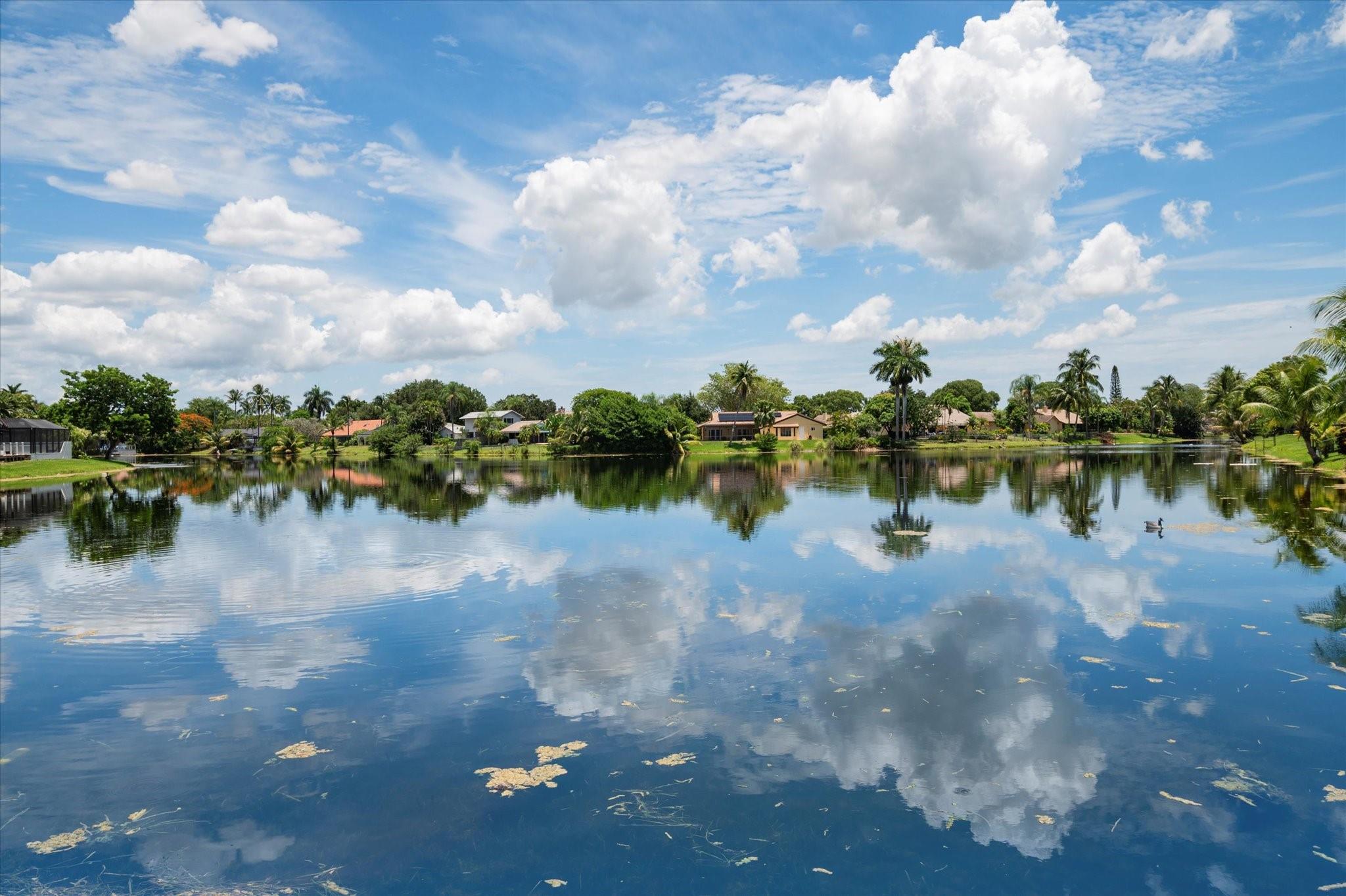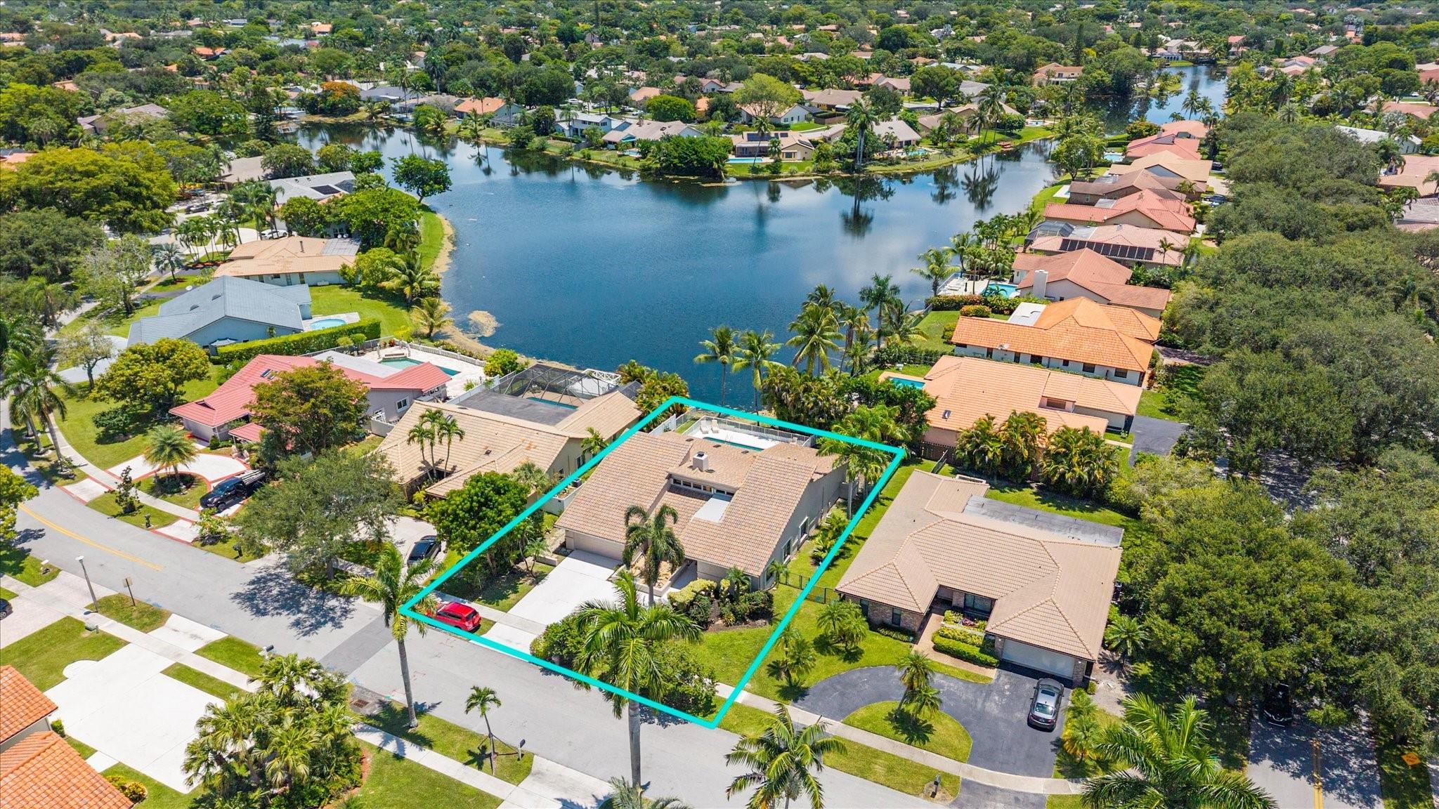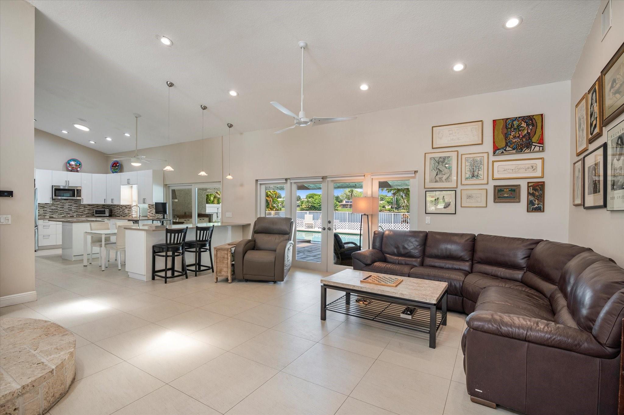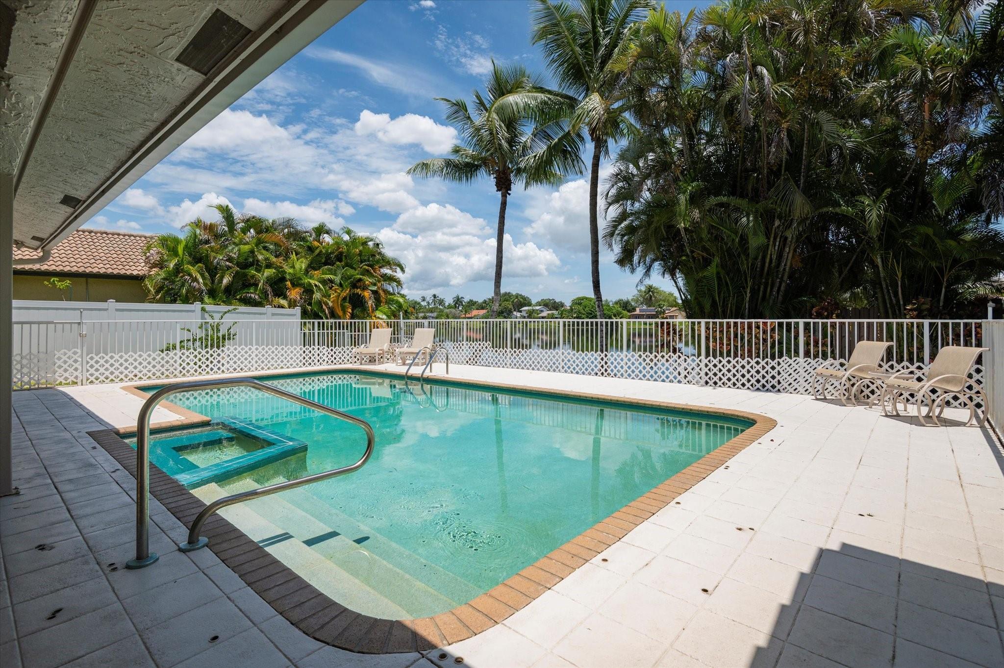 Significant price reduction to sell now on this one-of-a-kind pool/lakefront home-unlike any other in Jacaranda Lakes! Offering 4 bedrooms, 3 baths, & 2,593 sq ft under air, this custom residence showcases beautiful pool & lake views from all rooms across the entire back of the home. Enjoy an airy open layout with vaulted & volume ceilings, skylights & a striking coral rock two-way fireplace (closed). The kitchen impresses with a large island, plus a peninsula w/added seating & storage, double oven & quartz countertops throughout. Other highlights include a 2-zone A/C system (4/2020 & 11/2022), & a converted garage offering a versatile A/C-cooled flex room—ideal for pantry, art/wine storage, plus an additional storage room with space for 1-car parking. Barrel tile roof replaced in 2021!