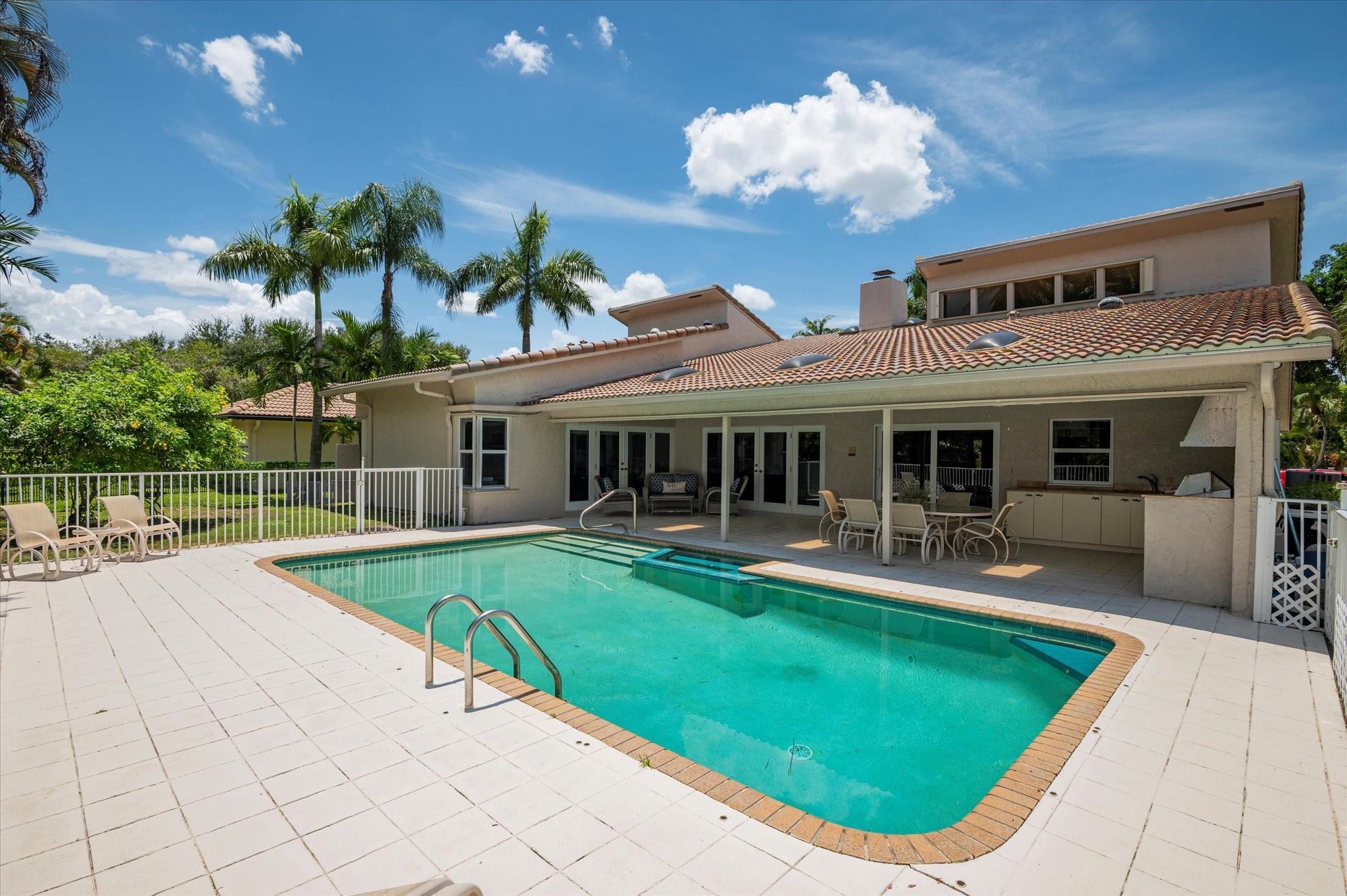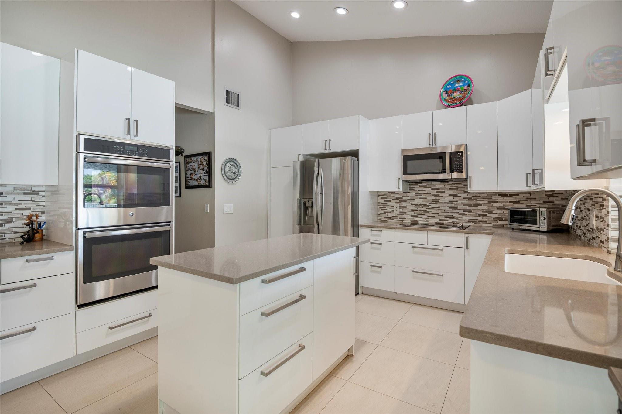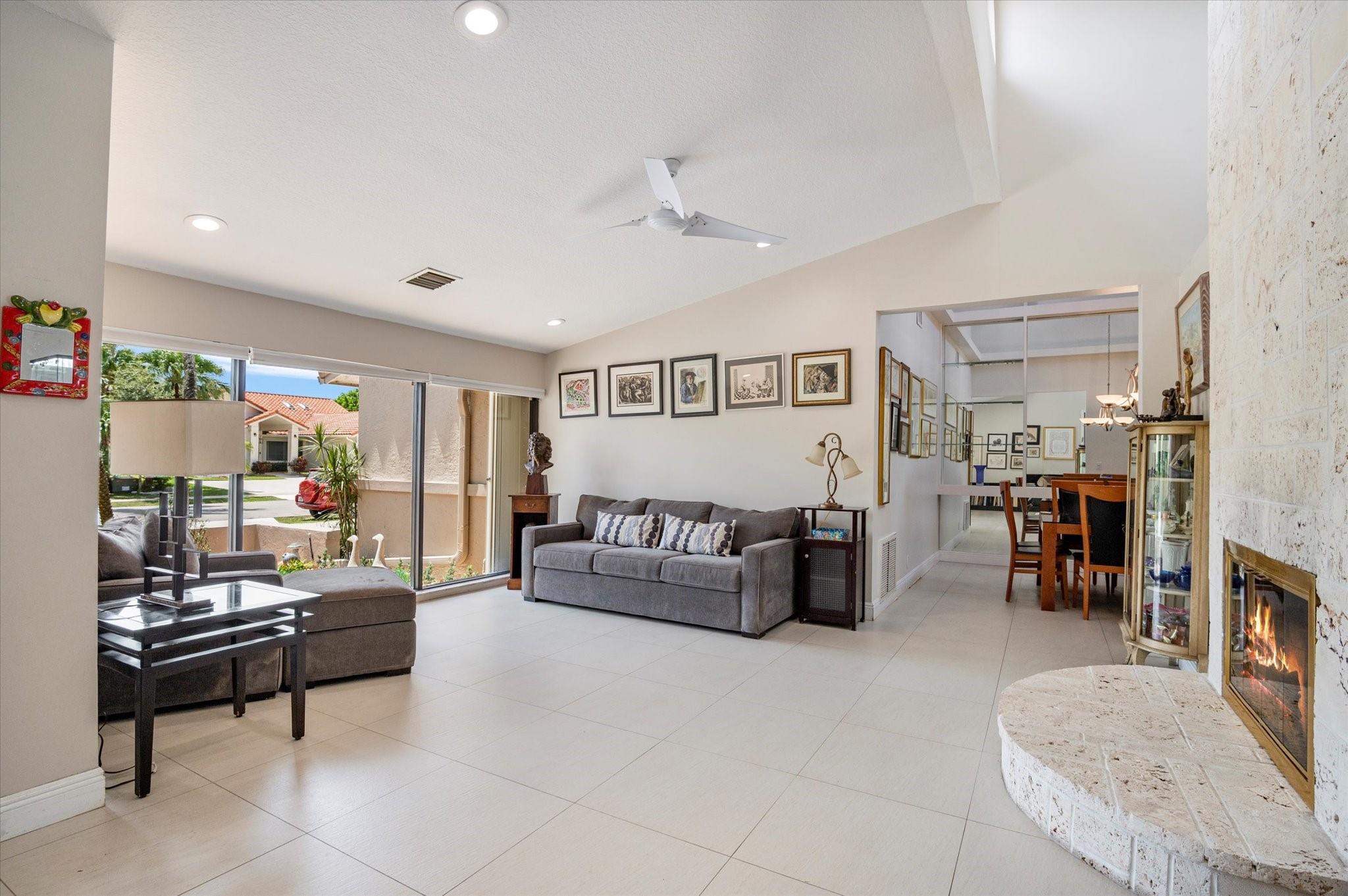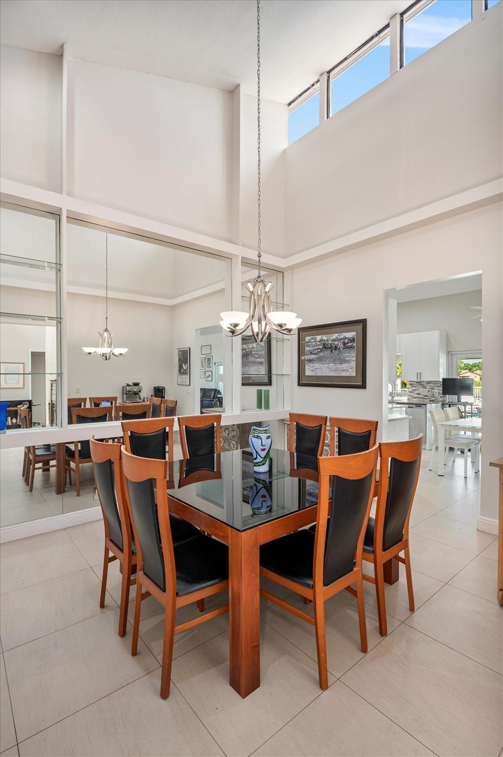 Significant price reduction to sell now on this one-of-a-kind pool/lakefront home-unlike any other in Jacaranda Lakes! Offering 4 bedrooms, 3 baths, & 2,593 sq ft under air, this custom residence showcases beautiful pool & lake views from all rooms across the entire back of the home. Enjoy an airy open layout with vaulted & volume ceilings, skylights & a striking coral rock two-way fireplace (closed). The kitchen impresses with a large island, plus a peninsula w/added seating & storage, double oven & quartz countertops throughout. Other highlights include a 2-zone A/C system (4/2020 & 11/2022), & a converted garage offering a versatile A/C-cooled flex room—ideal for pantry, art/wine storage, plus an additional storage room with space for 1-car parking. Barrel tile roof replaced in 2021!