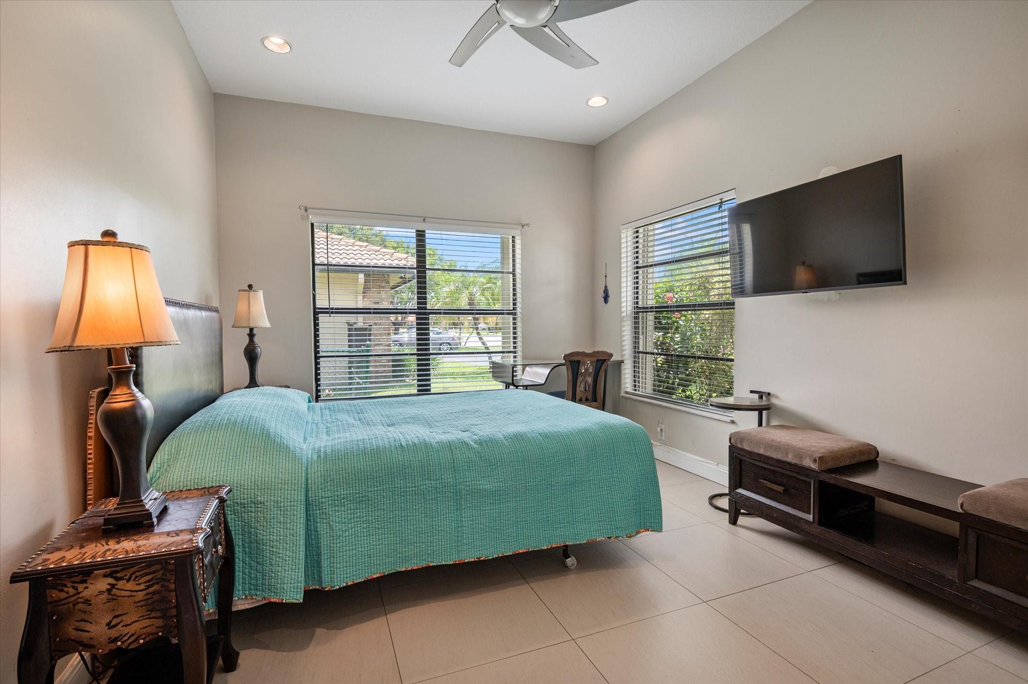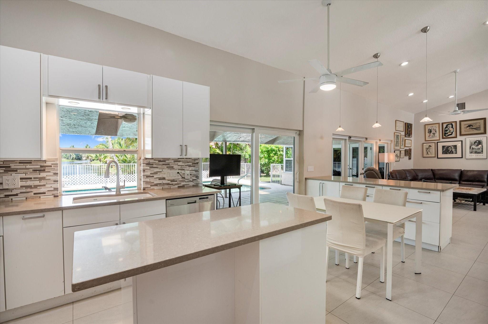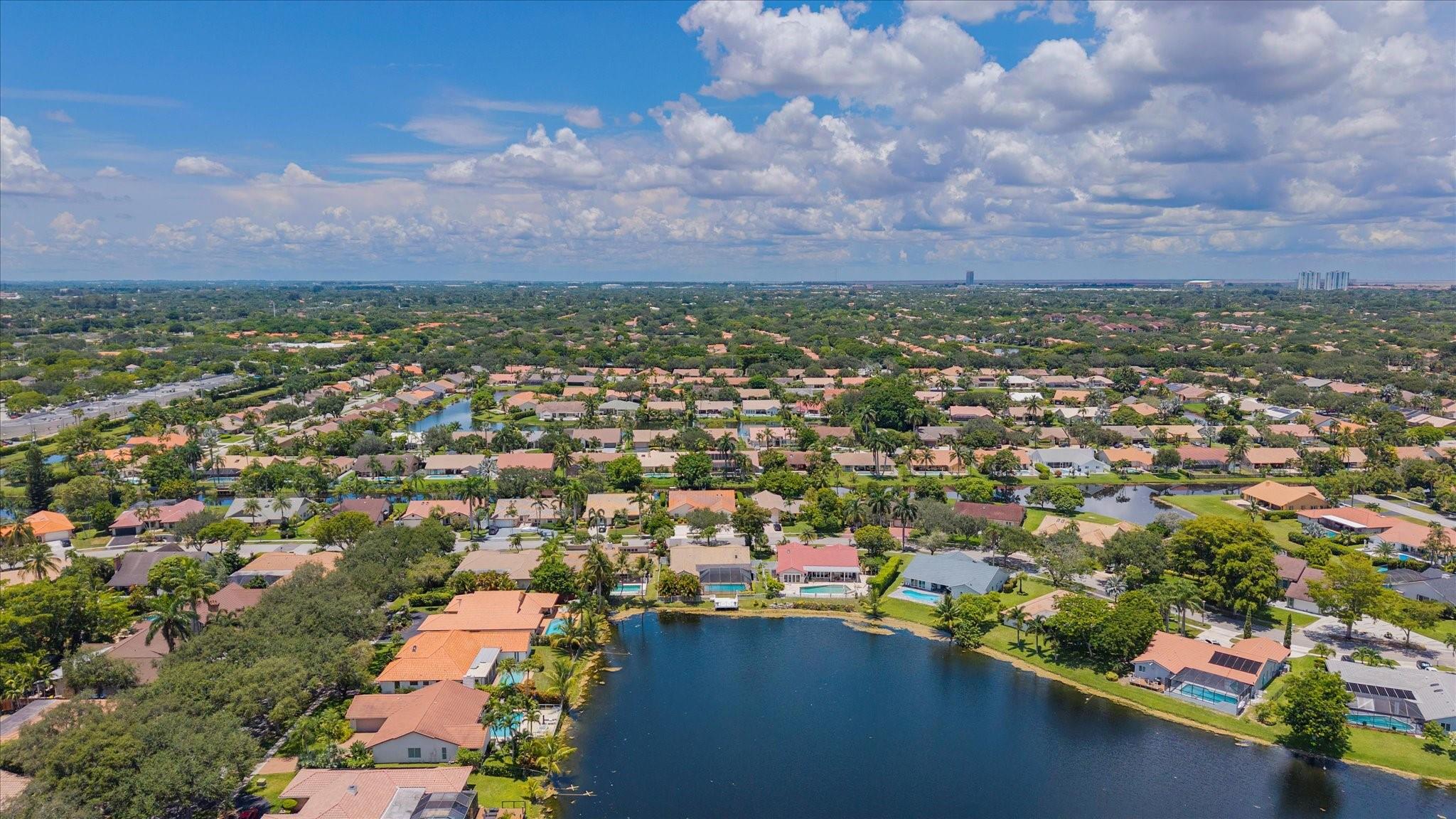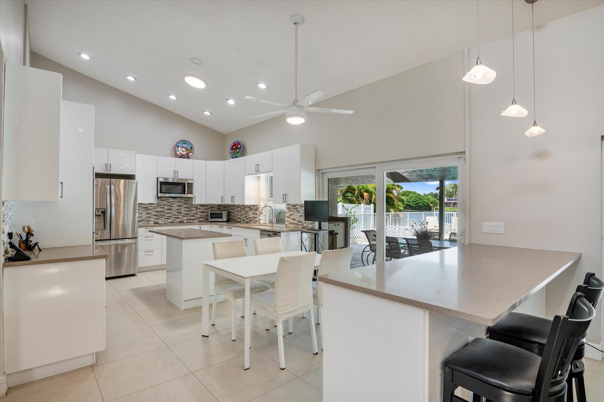 Significant price reduction to sell now on this one-of-a-kind pool/lakefront home-unlike any other in Jacaranda Lakes! Offering 4 bedrooms, 3 baths, & 2,593 sq ft under air, this custom residence showcases beautiful pool & lake views from all rooms across the entire back of the home. Enjoy an airy open layout with vaulted & volume ceilings, skylights & a striking coral rock two-way fireplace (closed). The kitchen impresses with a large island, plus a peninsula w/added seating & storage, double oven & quartz countertops throughout. Other highlights include a 2-zone A/C system (4/2020 & 11/2022), & a converted garage offering a versatile A/C-cooled flex room—ideal for pantry, art/wine storage, plus an additional storage room with space for 1-car parking. Barrel tile roof replaced in 2021!