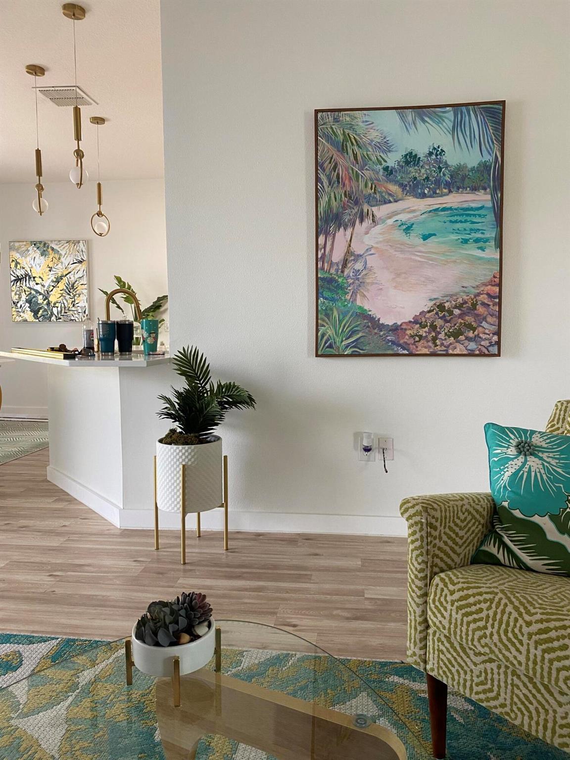 100% Designer Remodel! New flooring, cabinets, lighting, tile, paint, trim, kitchen & baths! HUGE corner lot with the nicest neighbors.Water views & moon views from the glass conservatory overlooking a 122' garden. Designer kitchen has new floating shelves & cabinets with quartz countertops & NEW appliances. The 6 person seating peninsula will be the center of this entertainer's dream home. Custom tile work. Feature walls in the den, living room and master bedroom. New garage epoxy floor.Butcher block laundry folding counter. Phantom screen on the stain glass front door & retractable canopy over the back patio. Enjoy the restaurants, gym, active life style in the golf course & nature community of gated Solivita!