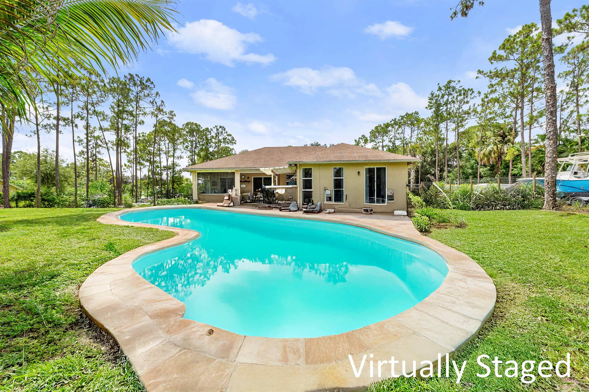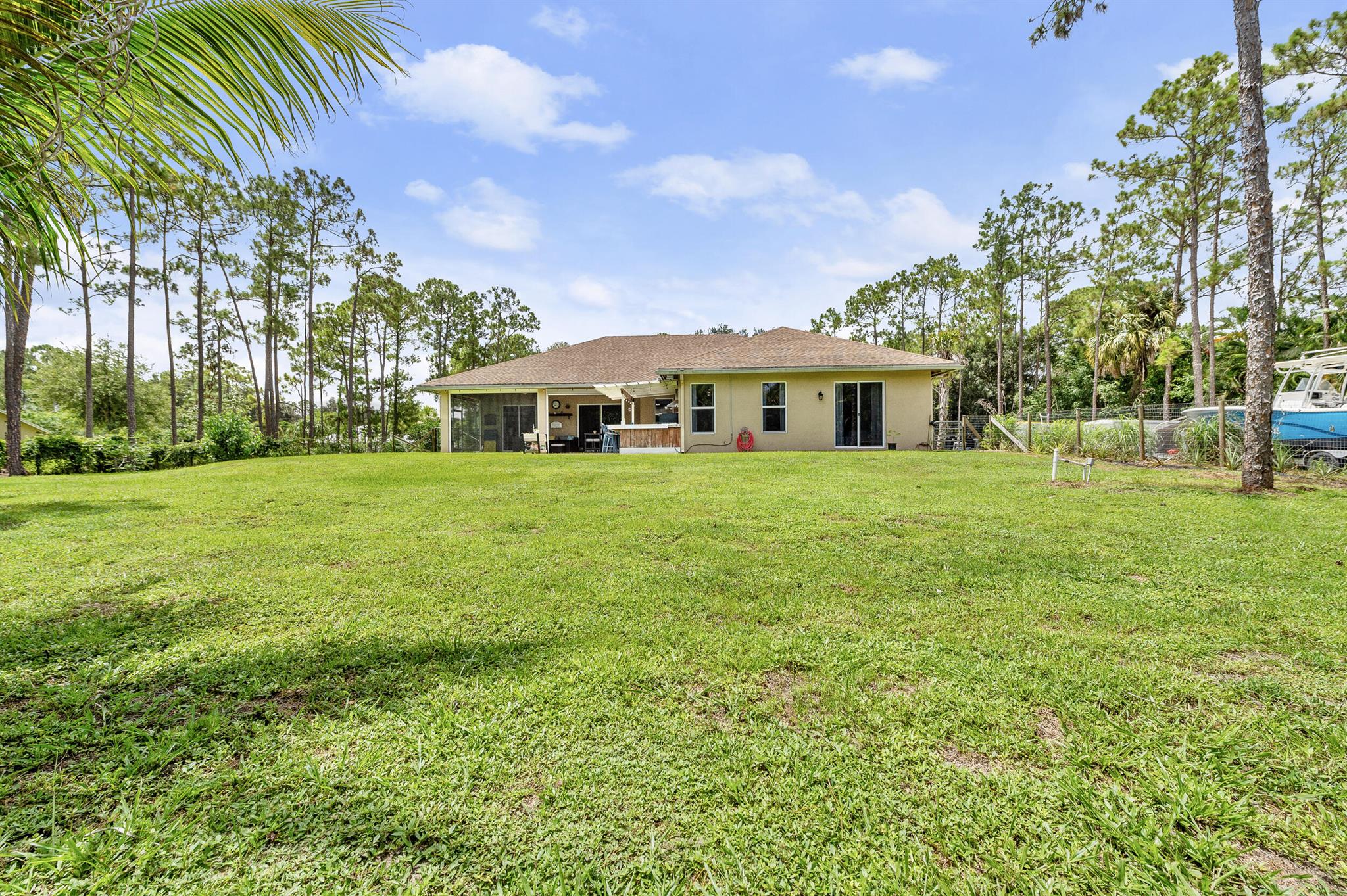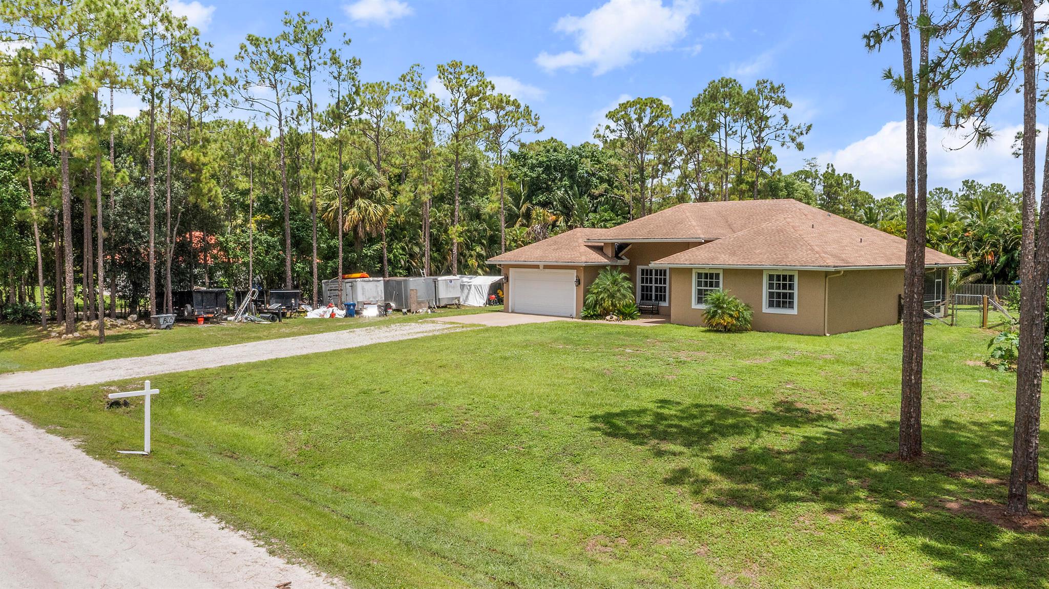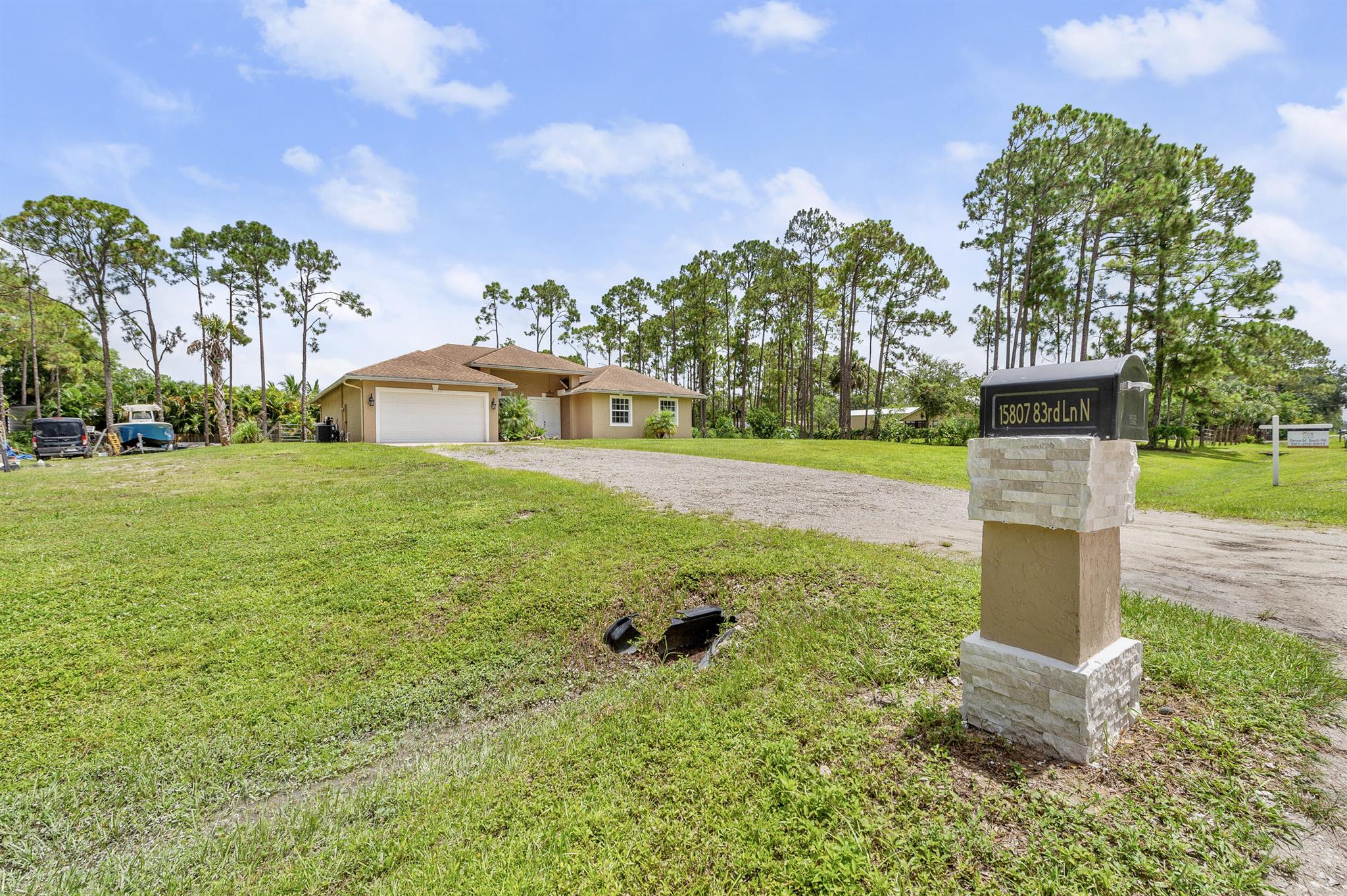 **BUILT IN 2019 ON 1.15 ACRES** Welcome to 15807 83rd Ln N in Loxahatchee, FL -- a beautifully updated 4-bedroom, 2-bathroom home ideally located just off Northlake Blvd, offering both convenience and privacy. Inside, you'll find engineered waterproof wood flooring throughout, 8-foot doors, and impact windows that provide a modern, durable touch. The spacious white kitchen is a true highlight, featuring under-cabinet lighting, pull-out shelving in the pantry, and a layout perfect for both everyday use and entertaining. The guest bathroom offers a double vanity, while the private master suite boasts sliding doors to the backyard, a luxurious ensuite with a soaking tub, walk-in shower, and dual sinks.