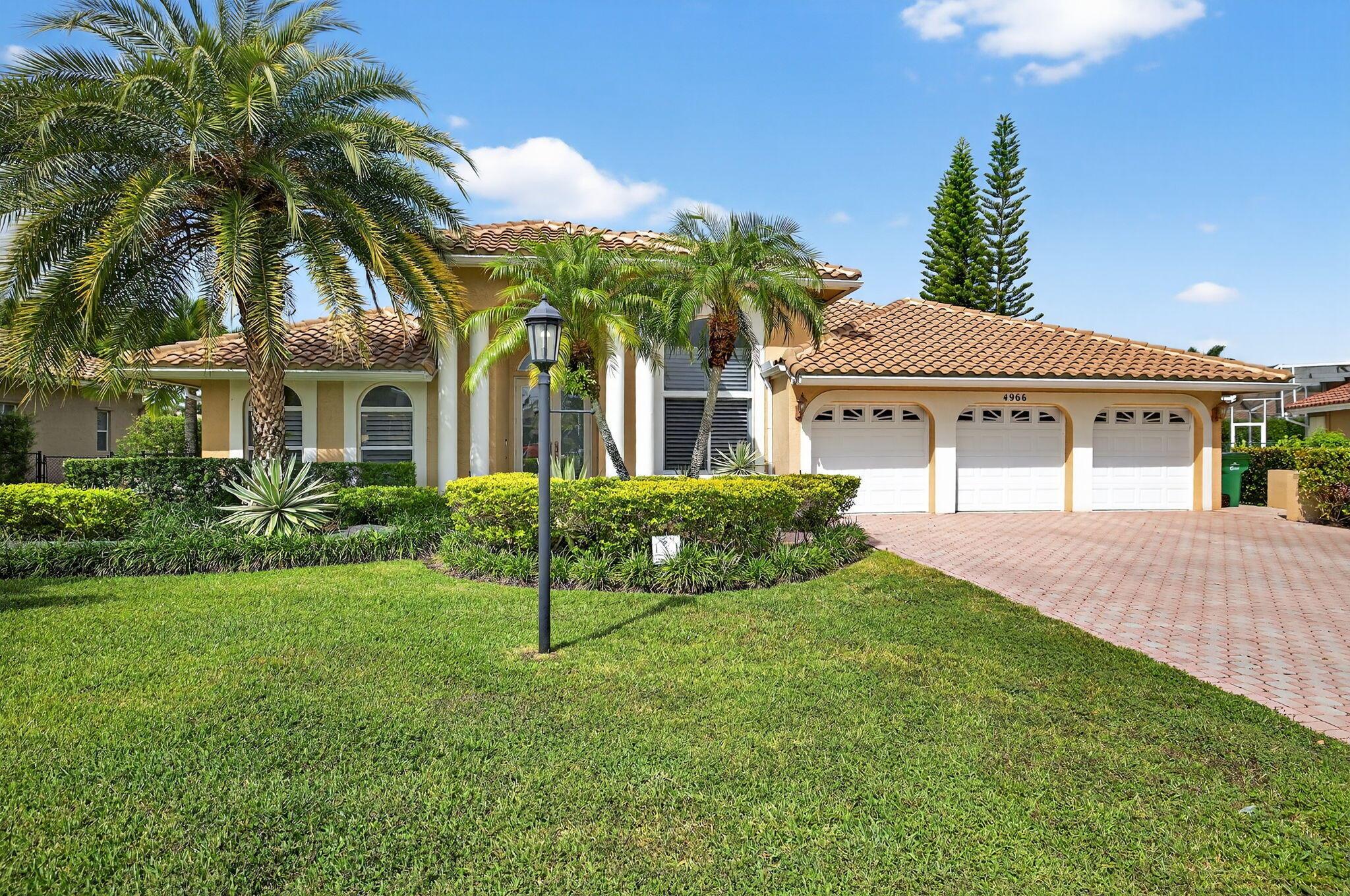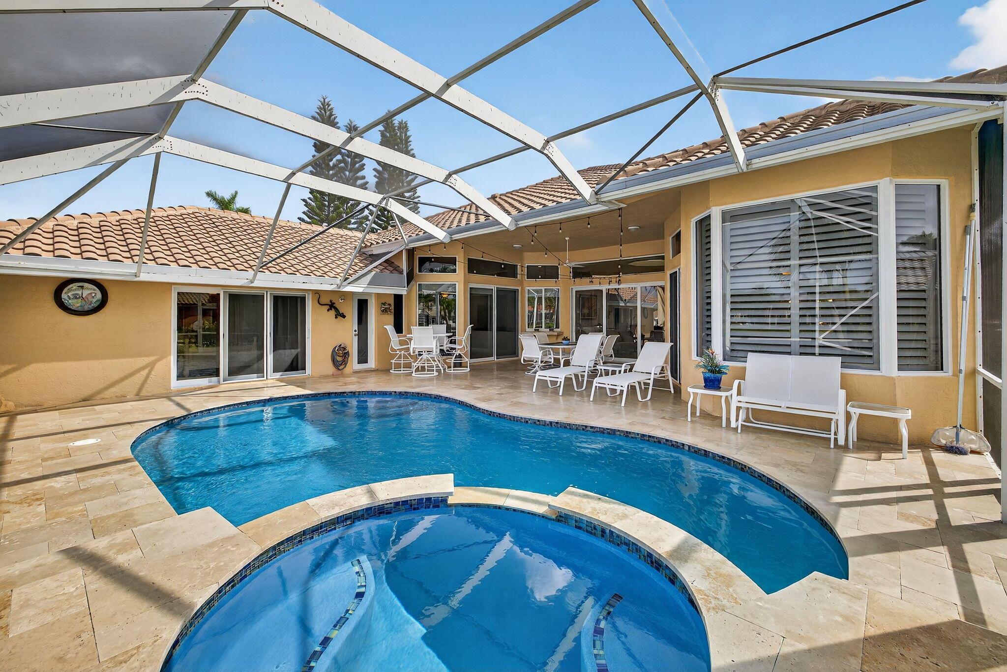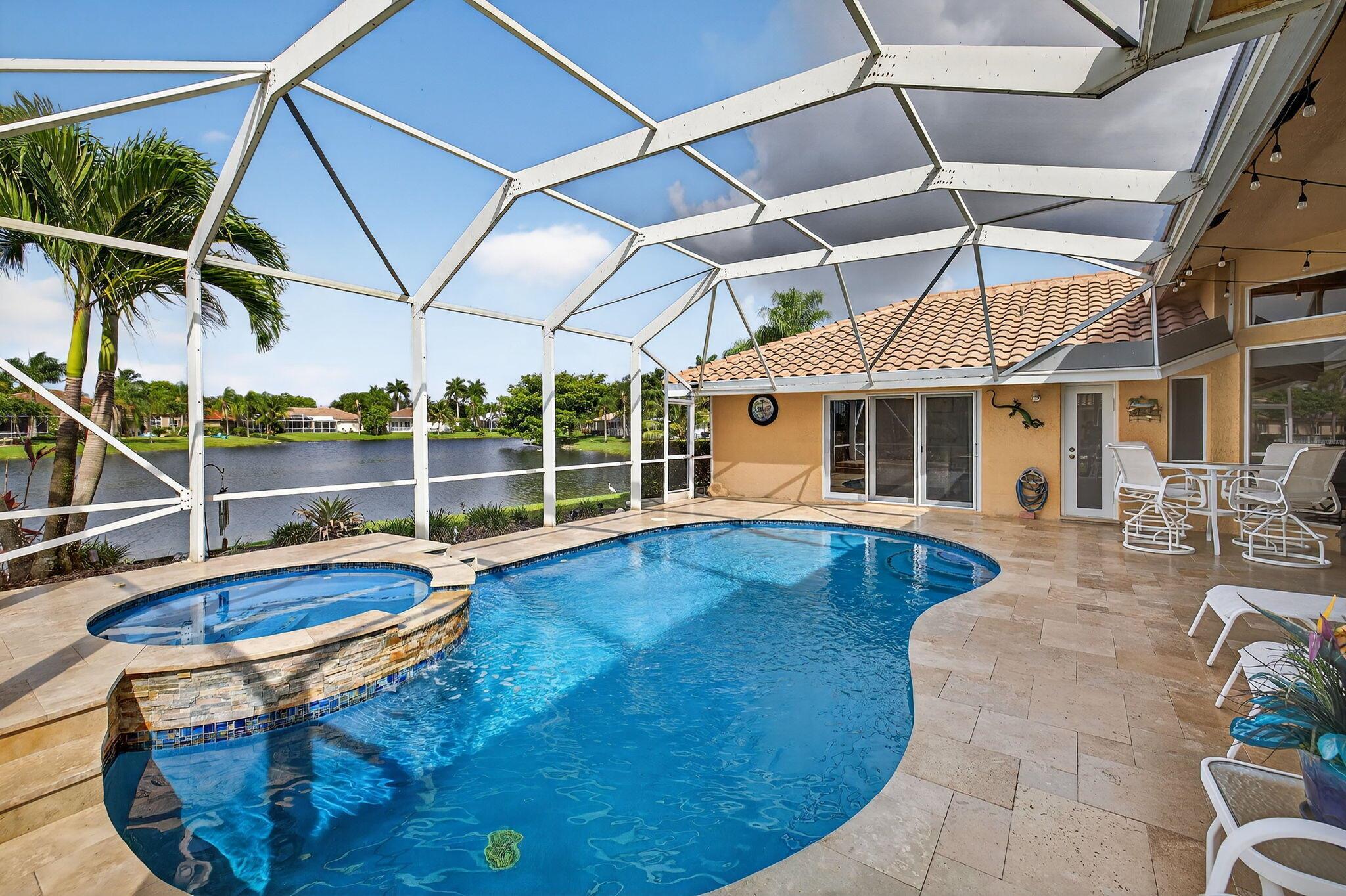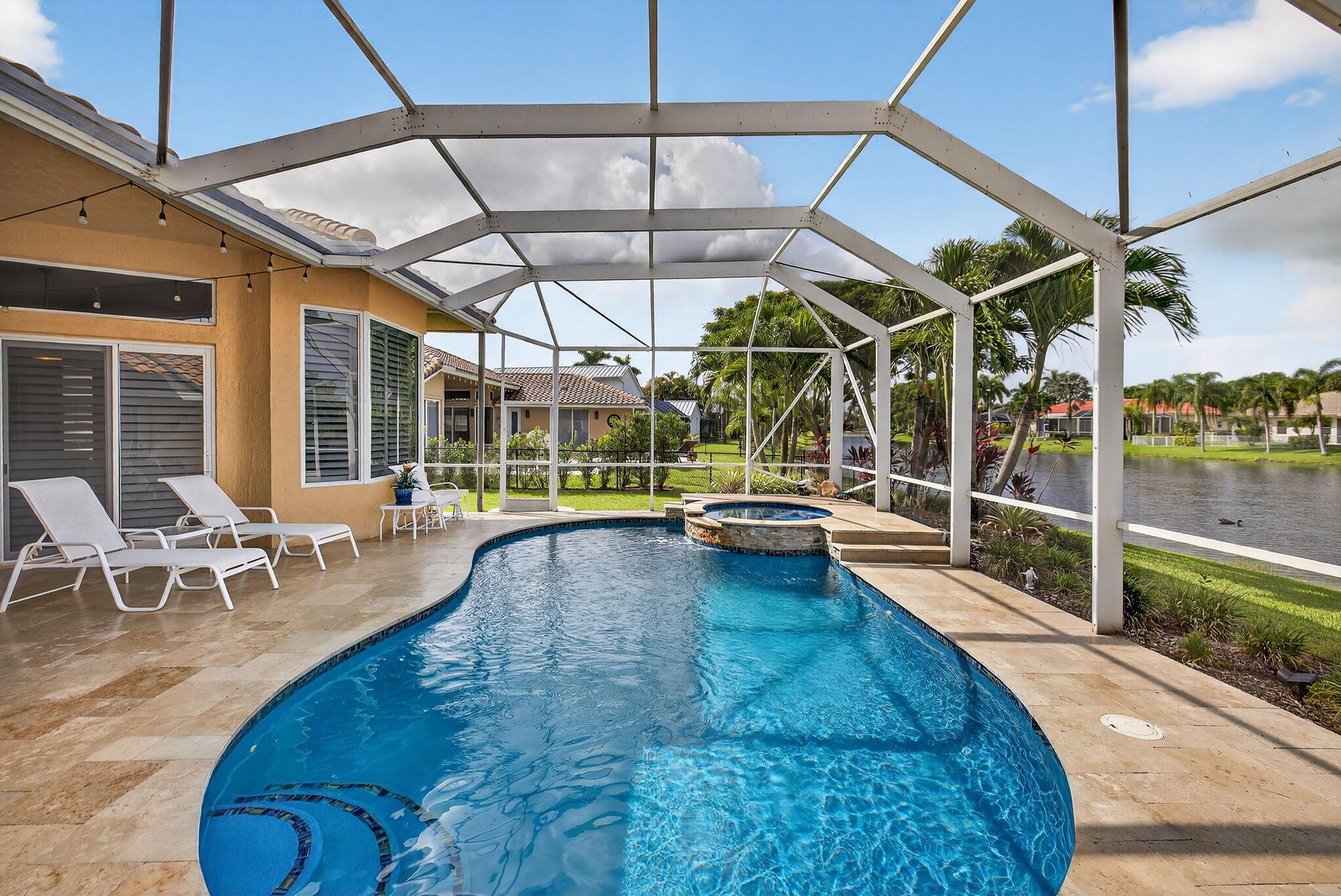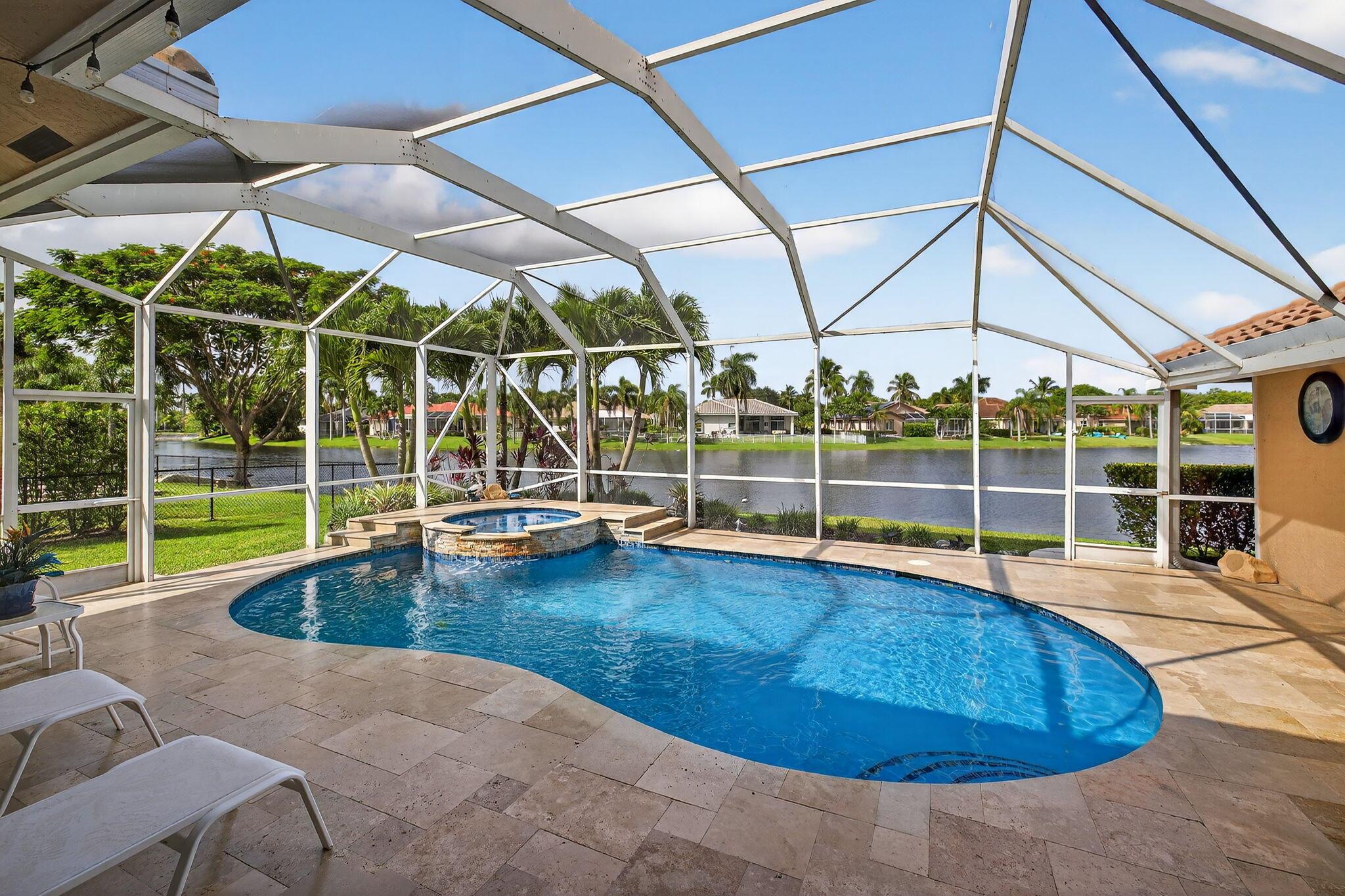 Great Opportunity if looking for a fantastic home with an amazing water view. This 5 bderoom 3.5 bath home with pool/spa and 3 car garage has it all! The primary bedroom has an amazing view of pool and water. There are double walk in closets. Huge bathroom with dual sinks and separate tub and shower. This split floor plan offers 1 bedroom/office by the primary and 3 bedrooms on the otherside of the home. 2 bedrooms share a bathroom and also acts as a cabana bath. The 3rd bedroom has its own full bathroom. There are custom plantation shutters through most of the home. The roof was replaced 2015, pool ans spa and patio refinished 2018, poolheater and salt water pump replaced 2023, gutters installed 2018. The front doors are custom and all impact windows were done 2017. see additonal ...