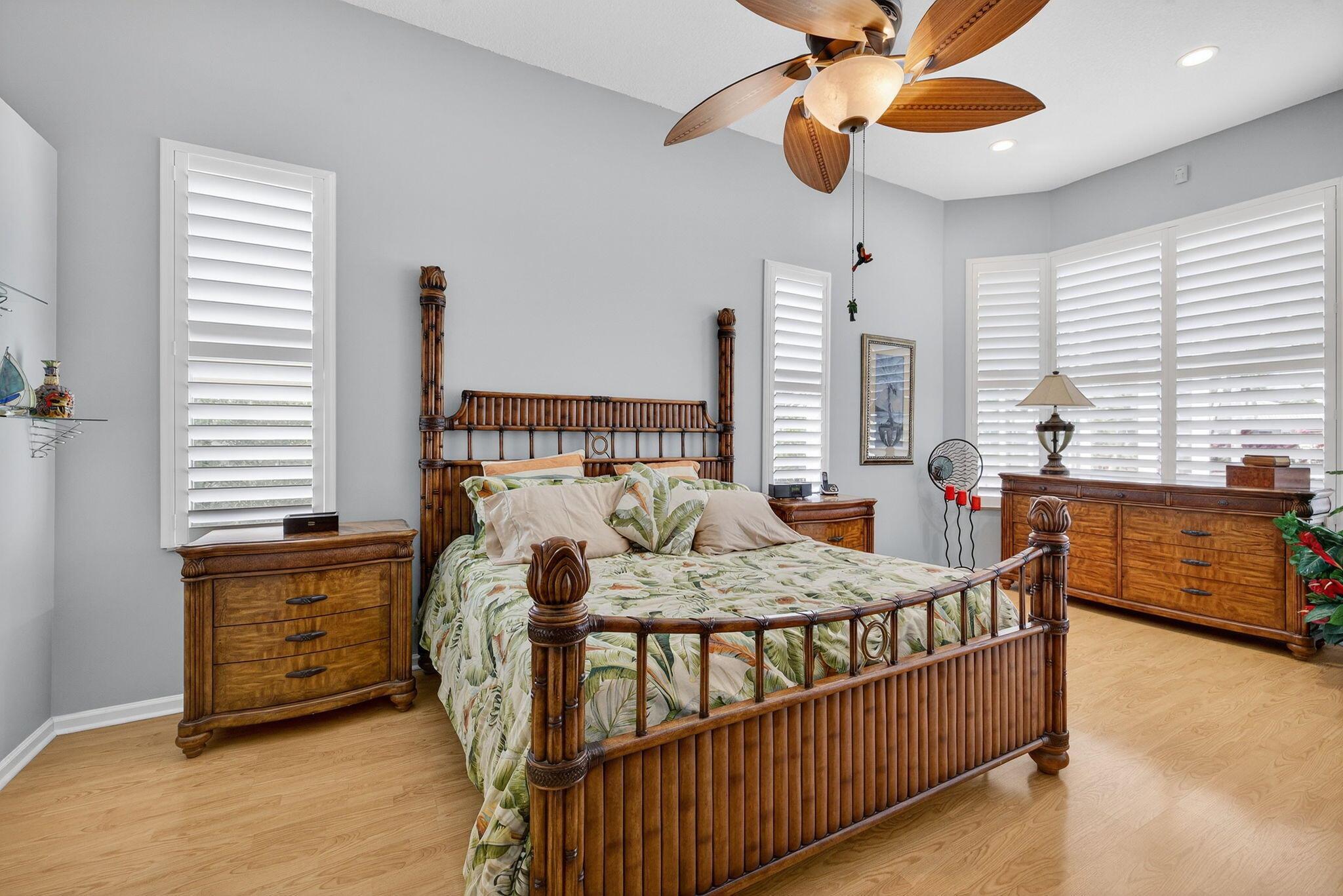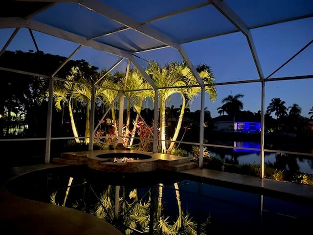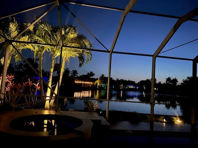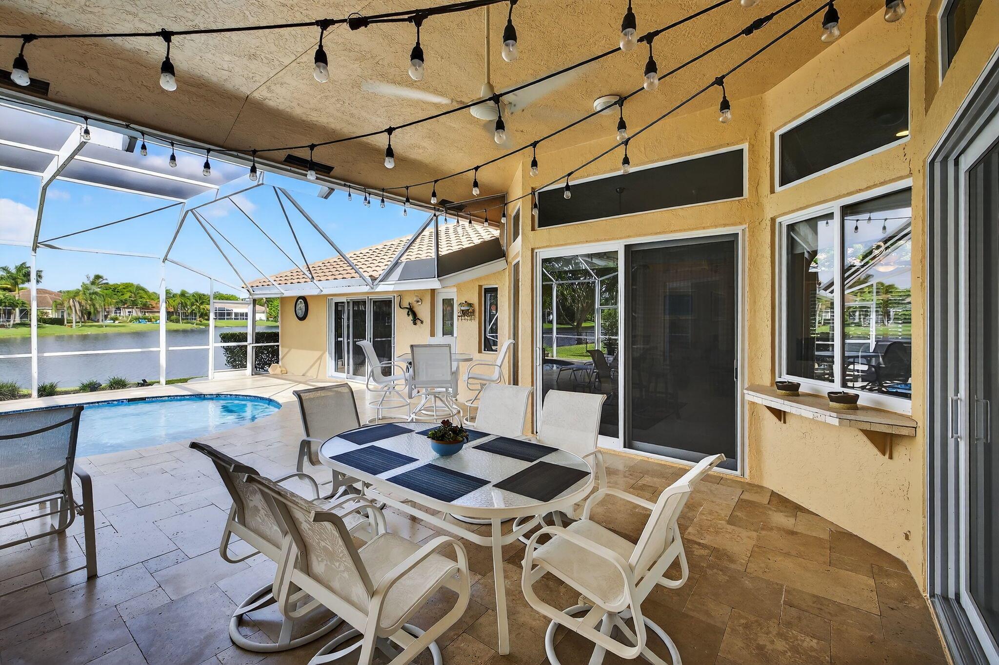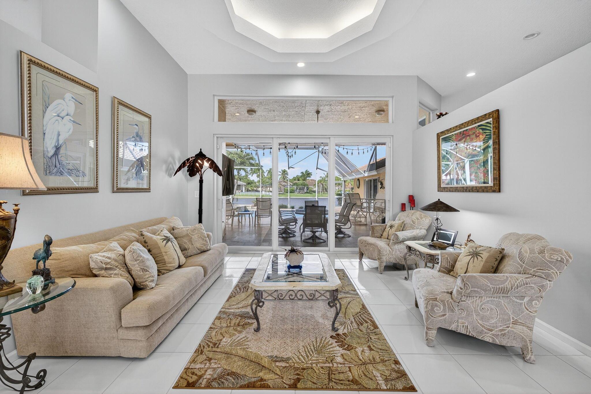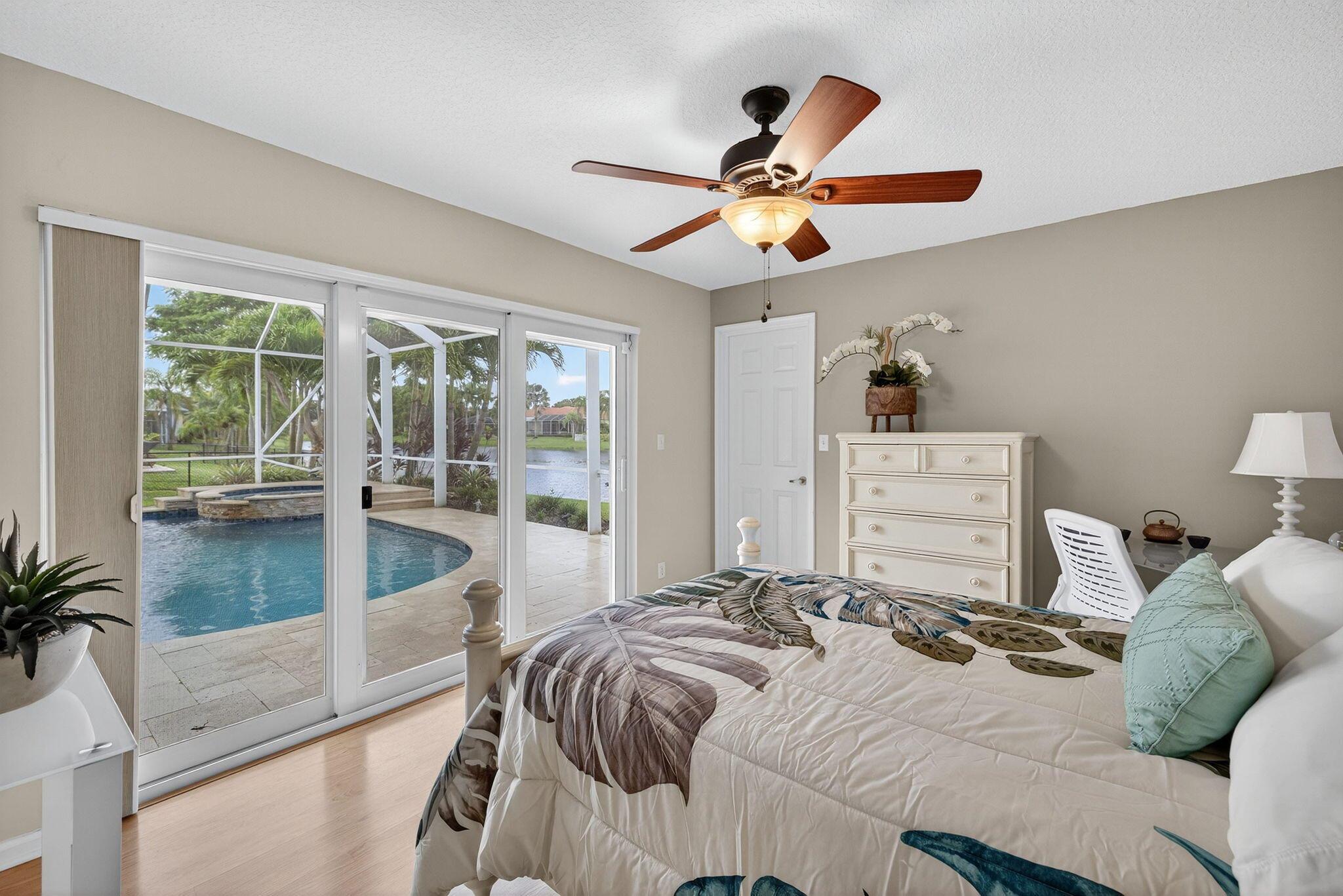 Great Opportunity if looking for a fantastic home with an amazing water view. This 5 bderoom 3.5 bath home with pool/spa and 3 car garage has it all! The primary bedroom has an amazing view of pool and water. There are double walk in closets. Huge bathroom with dual sinks and separate tub and shower. This split floor plan offers 1 bedroom/office by the primary and 3 bedrooms on the otherside of the home. 2 bedrooms share a bathroom and also acts as a cabana bath. The 3rd bedroom has its own full bathroom. There are custom plantation shutters through most of the home. The roof was replaced 2015, pool ans spa and patio refinished 2018, poolheater and salt water pump replaced 2023, gutters installed 2018. The front doors are custom and all impact windows were done 2017. see additonal ...