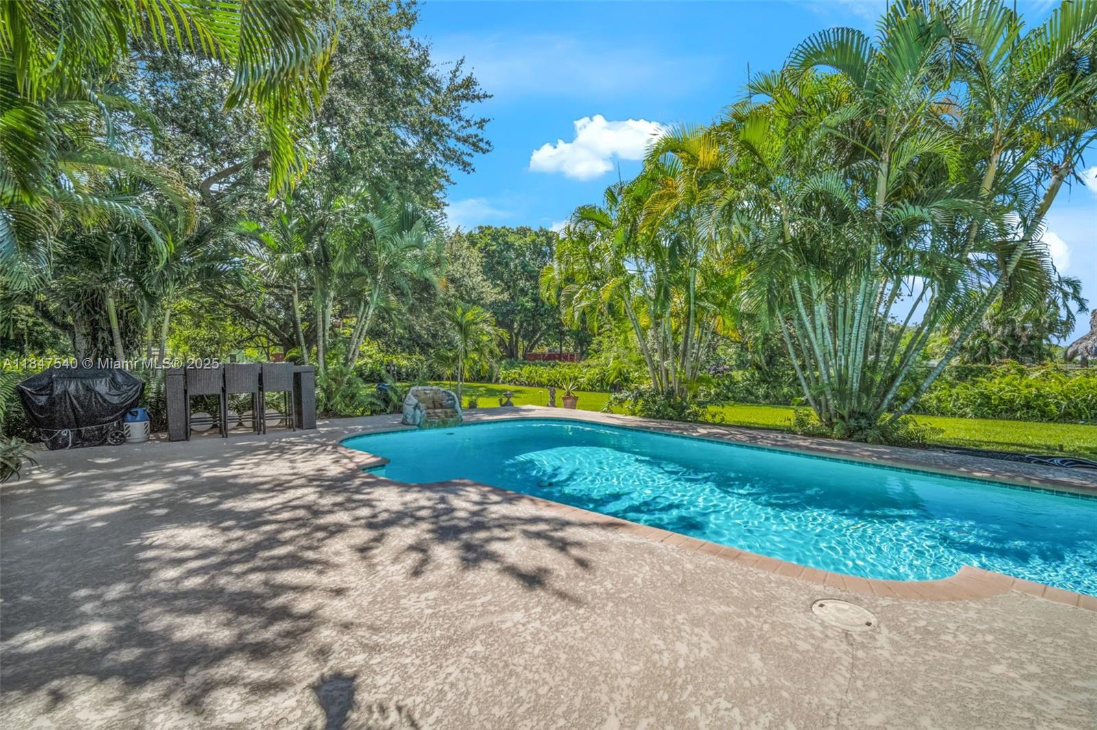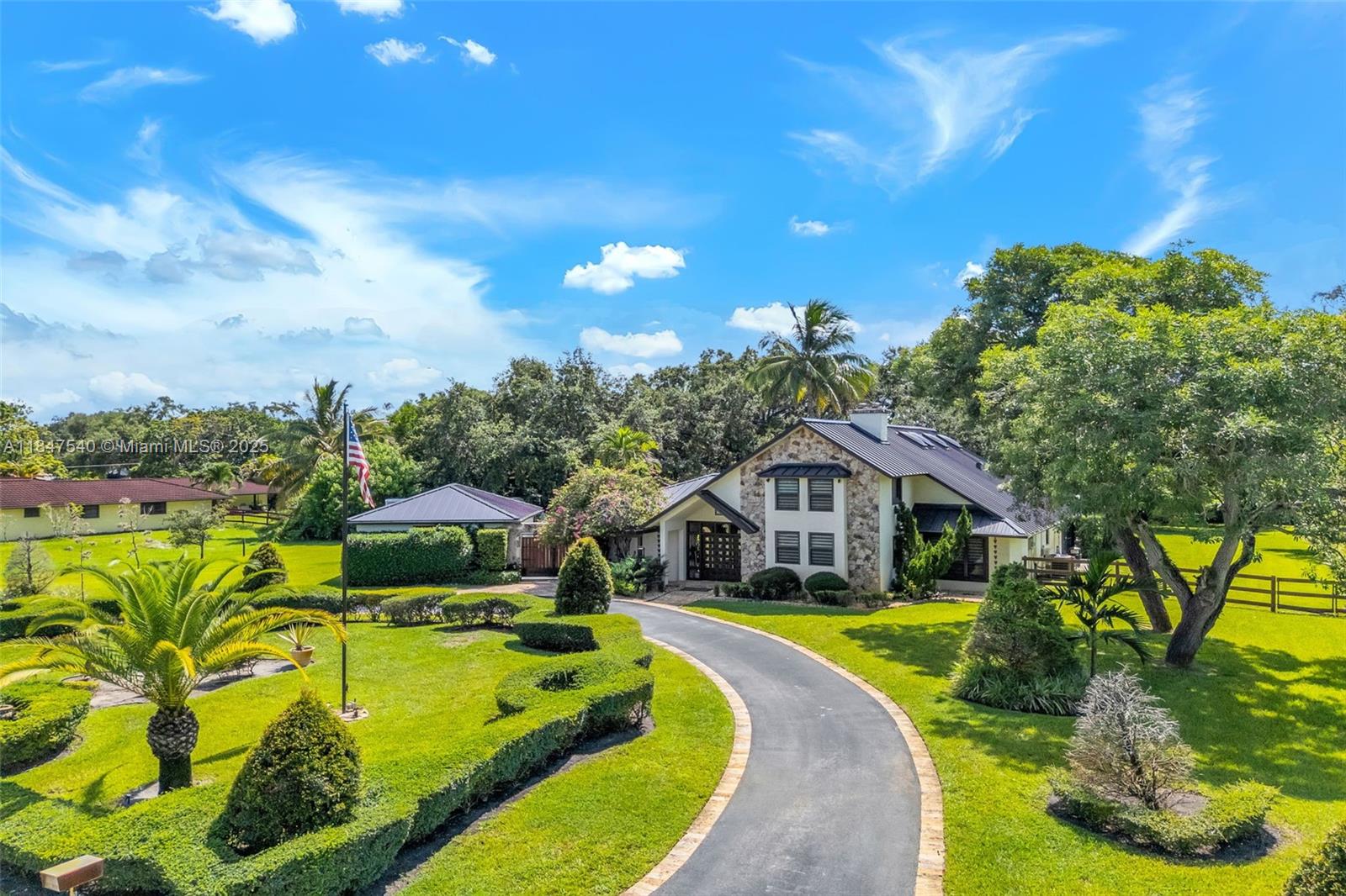 Stunning 4BR/3BA Davie Estate on 1.23 Acres – NO HOA, Horses Allowed Beautifully updated home on a lush, private lot with space for RVs, boats, horses, and more. Featuring a gourmet kitchen with quartz counters, custom cabinetry, and high-end stainless appliances, plus vaulted ceilings, two fireplaces, and a spacious primary suite with oversized walk-in closet (possible 5th bedroom). Enjoy peace of mind with a 2022 metal roof, 2021 A/C units with new ductwork, impact windows/doors, and whole-home water filtration. Outdoor highlights include a large screened patio, sparkling pool, 12x40 wired and A/C shed ready to convert to a guest suite or office, and a detached 2-car garage with workshop and golf cart storage. Excellent neighborhood and schools with a true community feel.