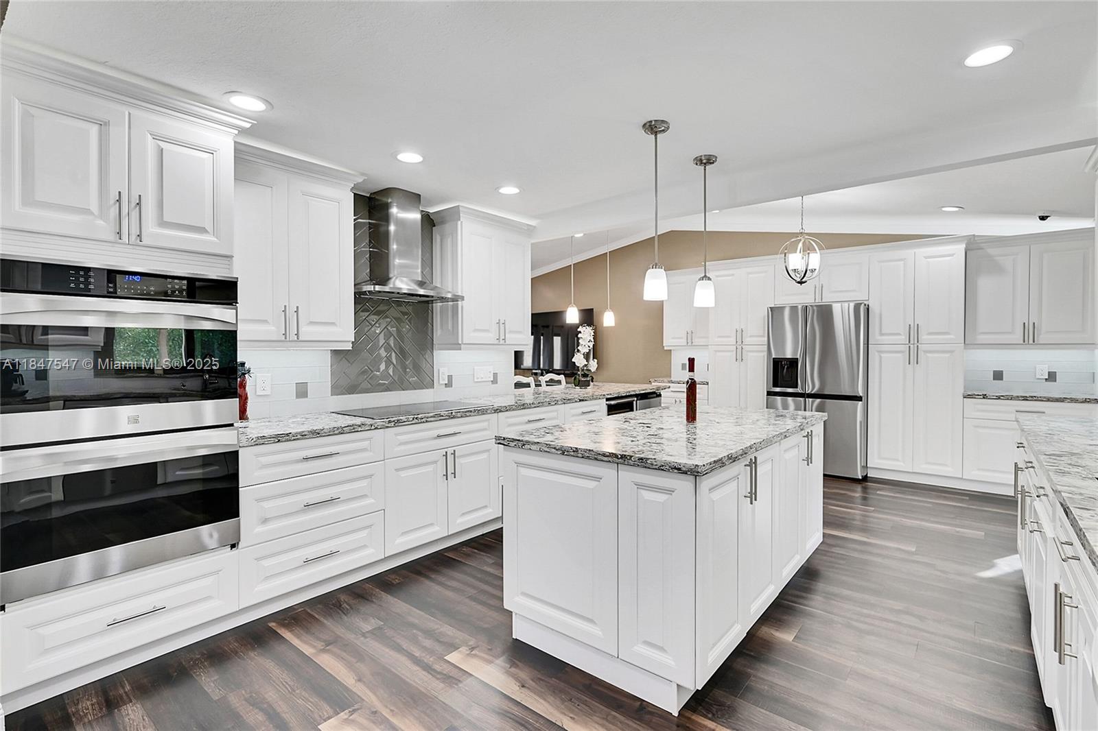 Welcome home! Over 3500 sq. ft. of living area. 5 bedroom & 4 bathroom two story home. Located in the heart of Coral Springs. In-law and guest apartment. Real fireplace. This home is substantially remodeled. Top of the line hurricane impact windows and doors. Newer water heater and new cabinetry in the garage with an incredible amount of storage. Many upgrades throughout such as a water filter system, hard wired alarm system, bathrooms, floors. Primary suite is on the second floor and has it's own balcony. Gorgeous newly paved driveway that parks up to 6 vehicles. This home is move in ready. NO HOA. Rare find & a must see!