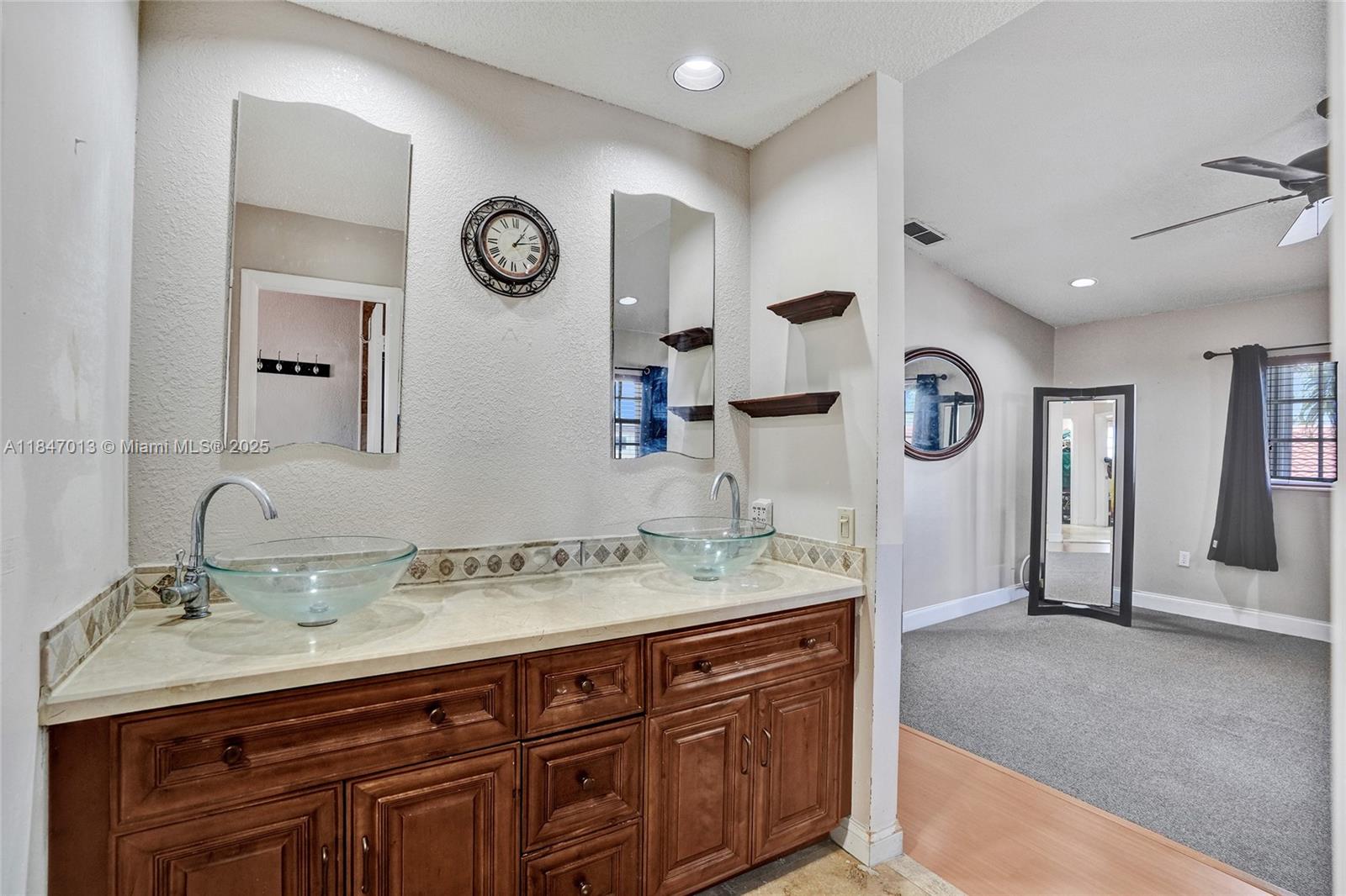 Check out this 4-bedroom / 3-bathroom, two-story home in desirable Adrian at Lago Mar, West Kendall. Featuring 1 bedroom and a full bath downstairs - ideal for guests or a home office. Upstairs, the spacious primary suite includes a walk-in closet and en-suite bath with dual sinks and a soaking tub. The updated kitchen (2023), with granite counters and stainless steel appliances, opens to a family room. The roof was replaced in 2020. Enjoy the fenced backyard and large covered patio. The 2-car garage and ample driveway provide plenty of parking. LOW HOA ($115) QUARTERLY. Located in a quiet neighborhood, the house is near shopping, dining, parks, and Baptist West Kendall Hospital. A perfect blend of comfort and convenience!