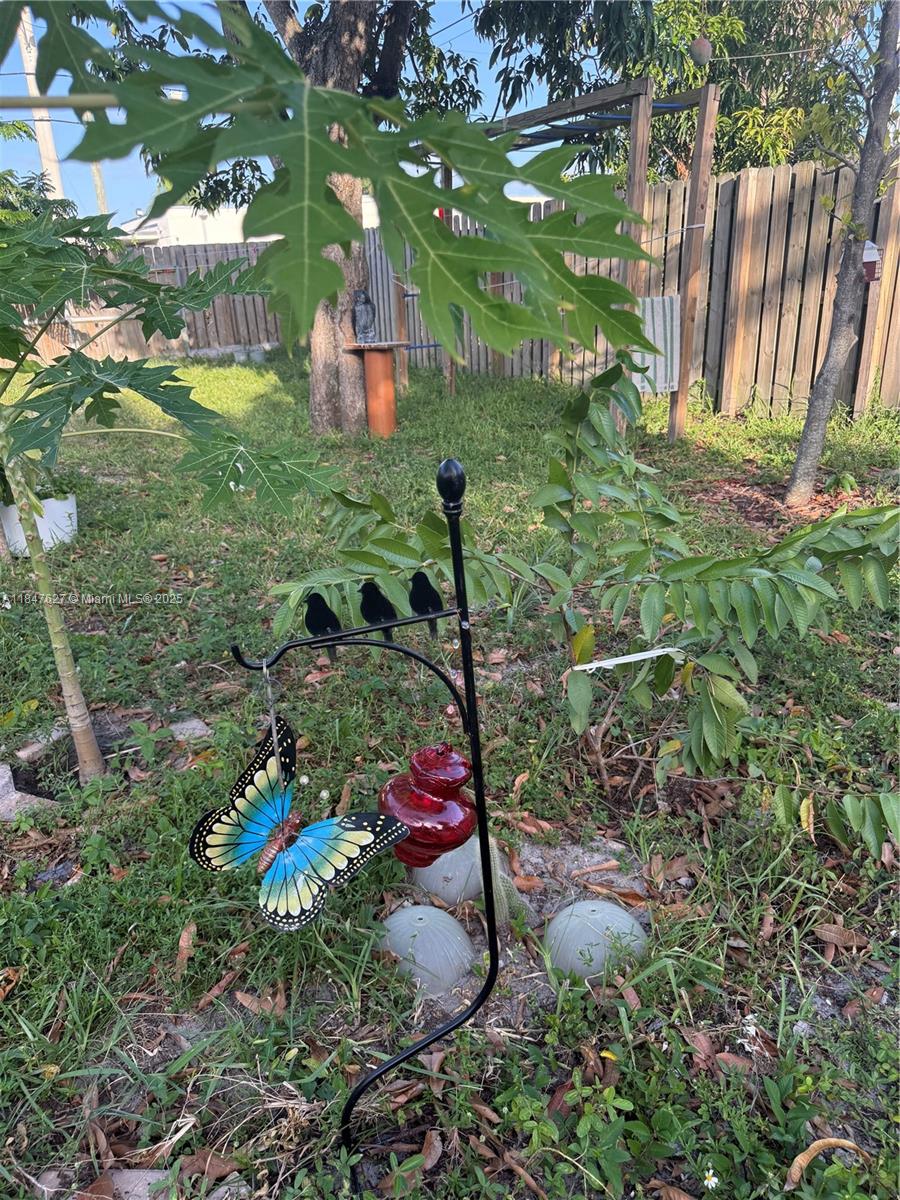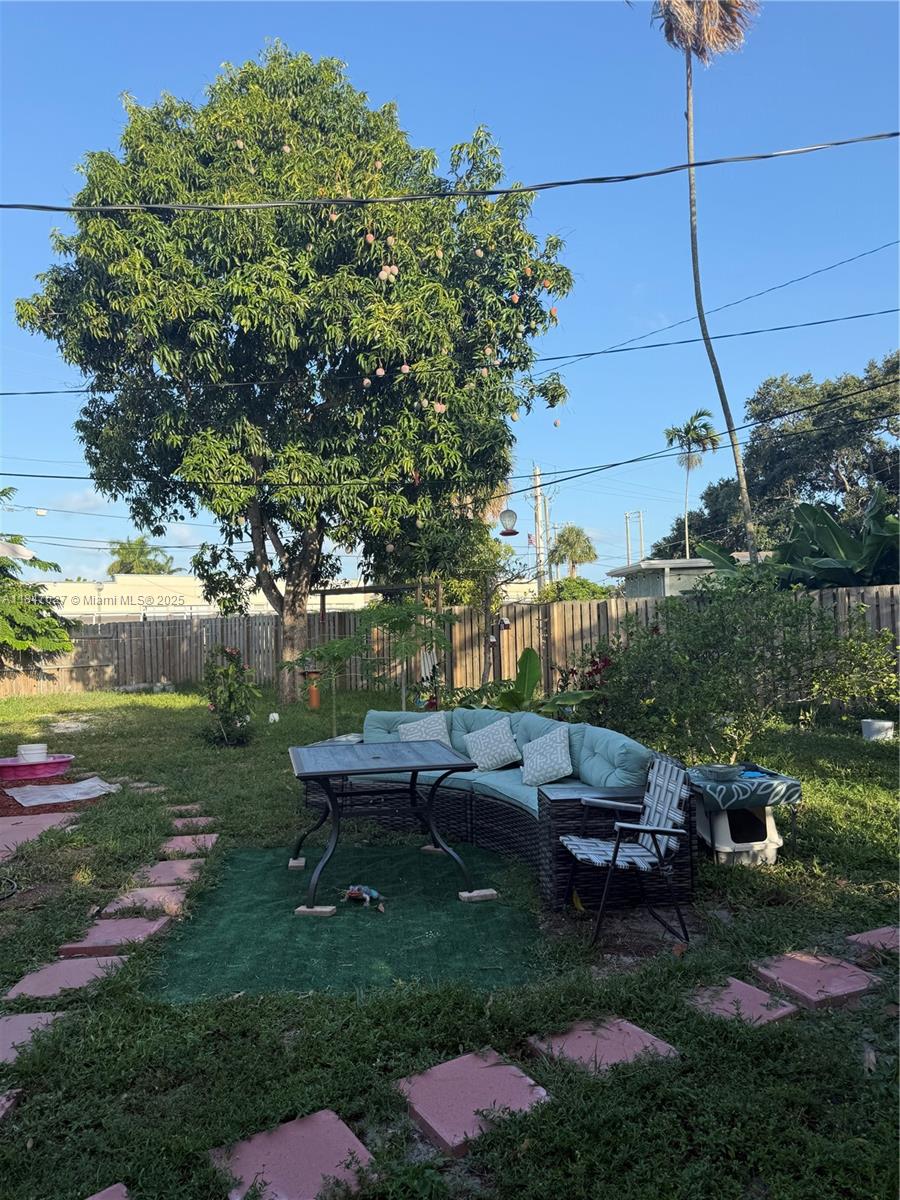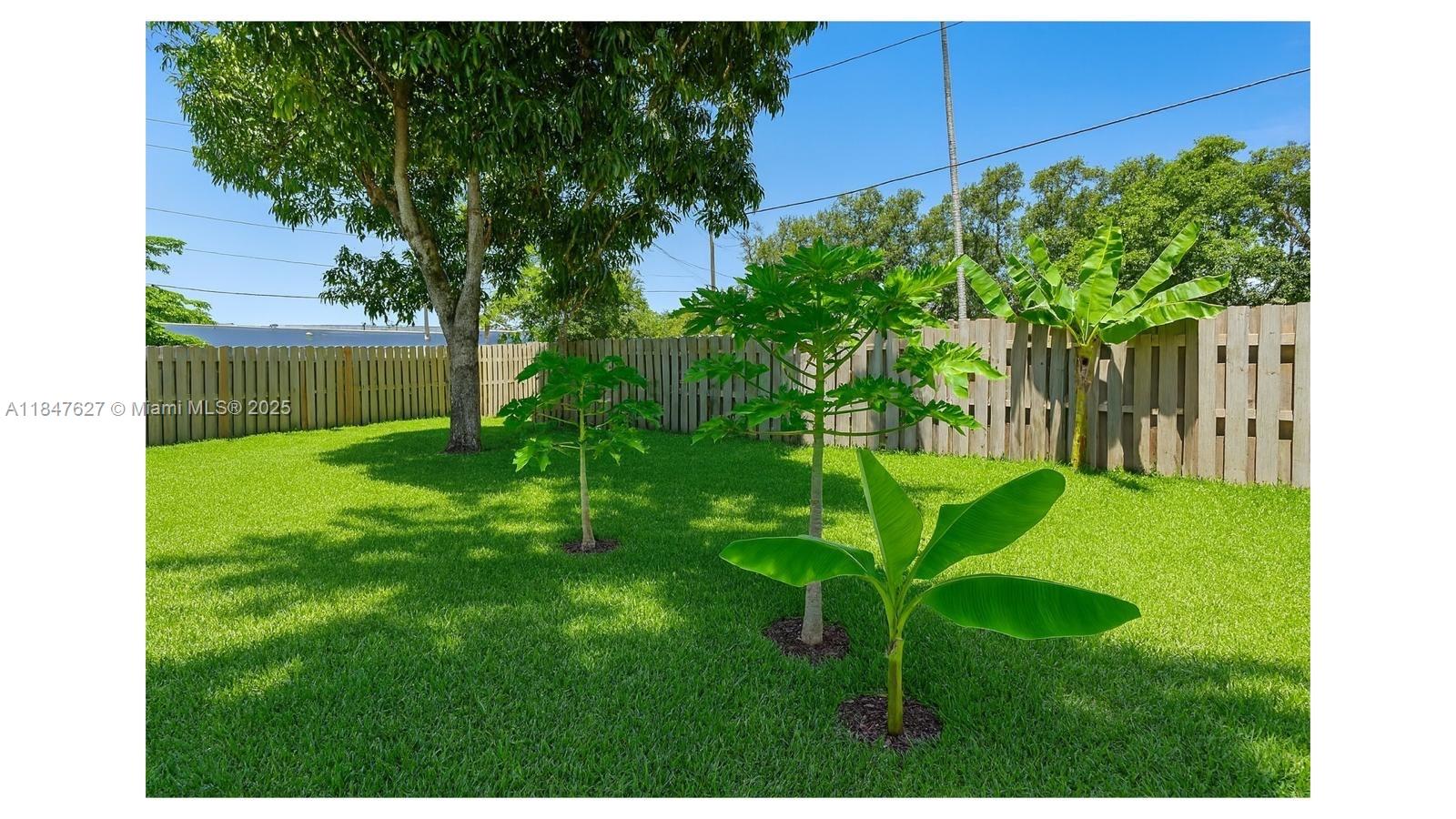 Beautifully maintained home on a spacious fenced corner lot with a young tropical orchard. Main house plus a private guest suite with separate entrance — ideal for visitors or rental opportunity. Large driveway with space for multiple cars or a boat. New powerful A/C (installed 2025) and updated plumbing throughout. Fully fenced property for privacy and security. Bright Florida room enclosed with screens — perfect for relaxing year-round. New exterior awnings and hurricane-resistant aluminum shutters on all front windows. Mango, avocado, papaya, guava, banana, fig, lime, and pineapple trees. All furniture and home items remain with the new owner — sellers are relocating to Europe.